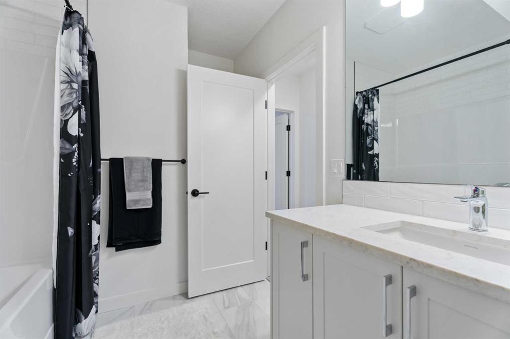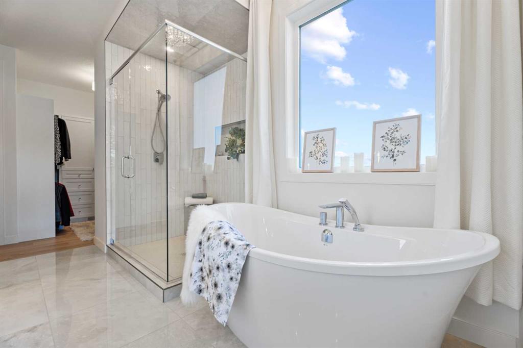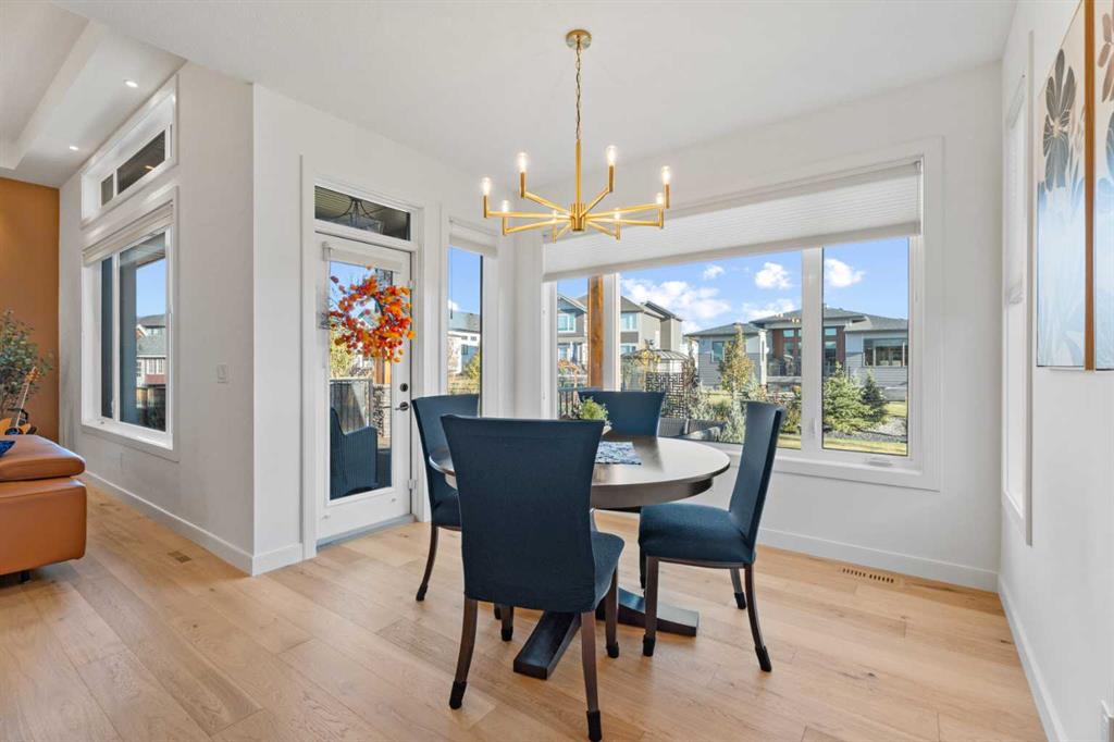 Welcome to this custom-crafted just over 1,800 sq ft bungalow showcasing exceptional design and luxurious upgrades throughout. From the moment you arrive, the home’s custom wood beams, black-trimmed windows, and Gemstone exterior lighting set an impressive tone. Step inside to soaring 11 ft ceilings, engineered wide-plank hardwood floors, and 8 ft doors with sleek black hardware. The open-concept great room features a Napoleon 55" linear gas fireplace, with a heat management system, framed by panoramic media walls and designer wood-and-glass lighting. The gourmet kitchen is a chef’s dream—complete with a Sub-Zero refrigerator, Wolf 6-burner gas range, Miele dishwasher, Falmec Pro hood, and a stunning 9×5 ft quartz island with custom cabinetry and champagne bronze accents. The butler’s pantry offers quartz counters, built-in drawer microwave, sink, and additional built-ins. The primary suite impresses with blackout channelled system Hunter Douglas blinds, and a spa-inspired ensuite featuring a fully tiled shower with dual heads (including rainfall), freestanding tub, heated floors covered with 24 X 24 Himalayan rock salt tiles, and a custom walk-in wardrobe. A fully finished basement extends the living space with a custom-built media centre, a wet bar that includes a beverage fridge and dressed in a quartz counter and back splash, a gym area with luxury vinyl flooring, 3 bedrooms, and an additional full bath. Outdoors, enjoy a covered deck with stone / cedar-clad post, gas line, aggregate patio, and professionally landscaped yard ($70K investment) with 28 trees, boulders, and a Wi-Fi–controlled irrigation system. The oversized driveway allows RV parking with full access into the almost 800sq ft triple garage, which includes a heater rough-in, floor drain, hot/cold taps, and dual Wi-Fi openers with cameras. Additional highlights include EcoBee Smart thermostat, air conditioning, tankless water heater, water softener, radon mitigation system, and B-Hyve smart irrigation controls. A rare blend of craftsmanship, technology, and luxury—this home redefines bungalow living in Cimarron.