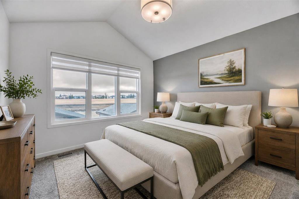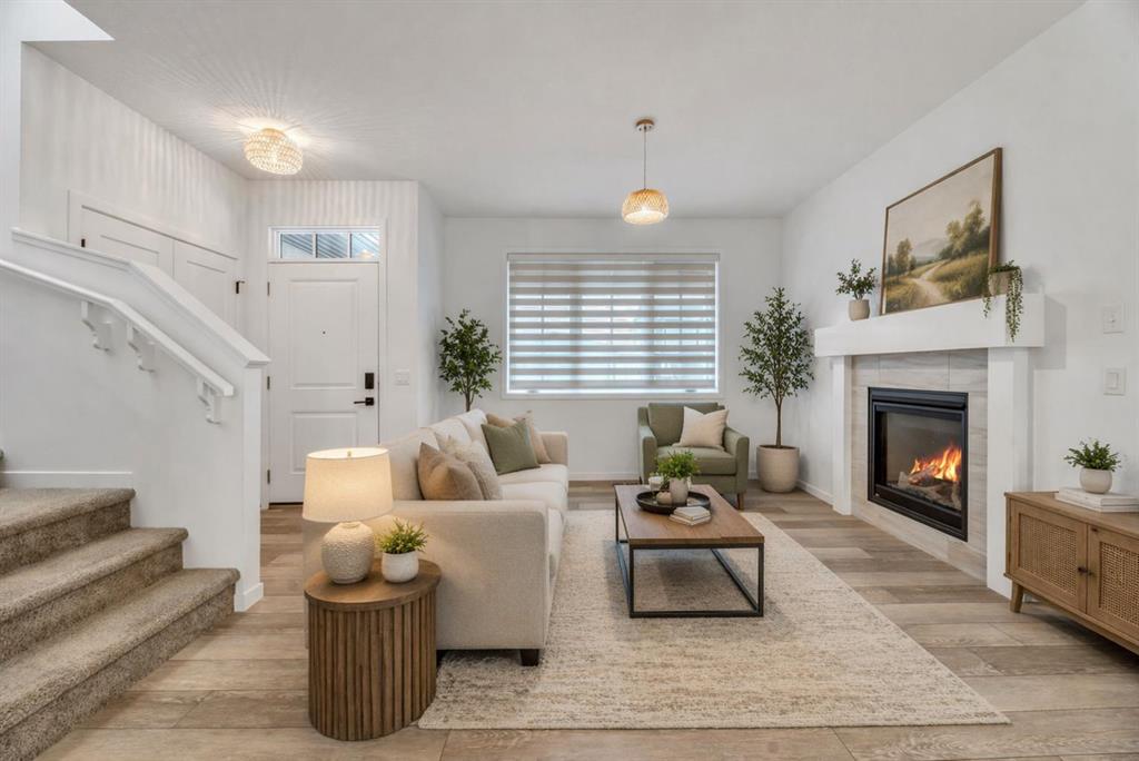 OPEN HOUSE SUNDAY APRIL 26TH FROM 12;00 - 2:00 Step inside and you'll immediately appreciate the warm and inviting open-concept layout, highlighting by beautiful laminate flooring throughout the main floor. The spacious living room features a cozy gas fireplace, creating the perfect place to relax or entertain. The kitchen is sure to impress with granite countertops, stainless steel appliances, and a gas stove, making it ideal for both everyday living and hosting guests. A convenient two-piece bathroom completes the main level. Upstairs, you'll find three generously sized bedroom along with the added bonus of upper laundry a feature today's buyers love for it's practicality and ease. Don't forget the beautiful ensuite off the master bed with double sinks a great soaker tub and stand alone shower. Outside enjoy a beautifully front porch - perfect for your morning coffee. In the evening relax out on your large private deck out in the developed back yard when you enjoy your gas hook up and BBQ on those summer nights. The detached garage is 19.5X 21.5 provides excellent parking and Storage options. Located in the welcoming town of Crossfield you will find this property is in move-in ready and priced better then the new builds as this home is fully developed outside from front to back . Call for you private viewing today