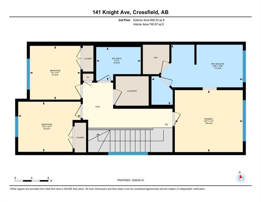| 5pc Ensuite bath | 10`9" x 16`4" | Upper |