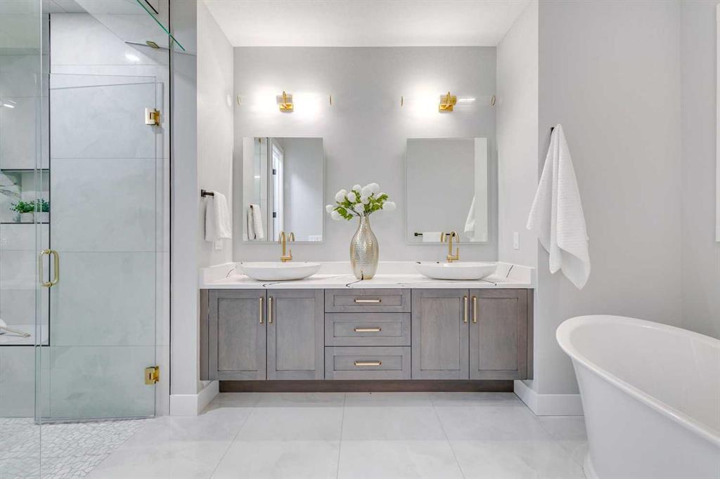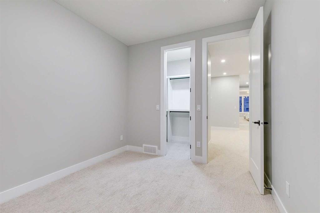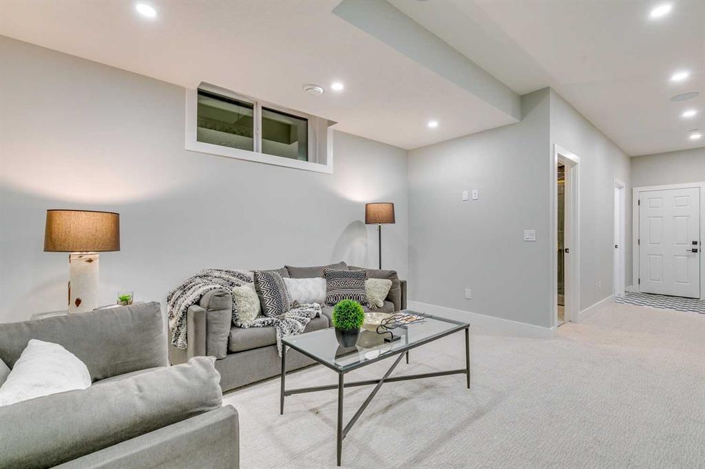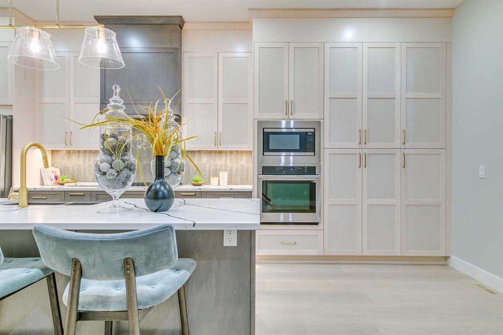 ***PUBLIC OPEN HOUSE SAT & SUN 2:00PM - 4:00PM*** Experience refined inner-city living at 1413 27 Street SW. This meticulously crafted, never-lived-in modern residence offers over 3,000 sq ft of thoughtfully designed living space, blending high-end finishes, rare upgrades, and everyday functionality — all just minutes to Downtown, 17th Avenue, and Shaganappi Golf Course. Immediate possession available. The main floor impresses with soaring 10-foot ceilings, rich hardwood flooring, and expansive floor-to-ceiling windows that flood the space with natural light. A bright front den with oversized picture windows provides the perfect home office, study, or reading retreat. At the heart of the home, the gourmet kitchen is both striking and functional, featuring: Quartz countertops Shaker-style cabinetry with under-cabinet lighting Fireclay farmhouse sink Built-in spice racks Oversized island with concealed electrical outlets Premium built-in gas range and appliance package A rare and highly practical dumbwaiter elevator connects the garage and lower level directly to the kitchen — an exceptional feature seldom found in Calgary infills. The powder room is a true design statement, showcasing custom wallpaper accents, a gold-leaf ceiling, floating vanity, and backlit mirror — an unforgettable touch of luxury. Upstairs, the primary retreat offers a spa-inspired escape with floating dual vanities, ambient shelf lighting, oval mirrors, designer fixtures, a custom-tiled oversized shower, and a freestanding soaker tub. Two additional bedrooms, a versatile bonus lounge, and a full laundry room complete the upper level. The professionally finished basement is designed for entertaining, featuring a striking custom bar with black-and-gold detailing, a wine display wall, spacious recreation room, full bathroom, and additional storage. Outside, enjoy a private, low-maintenance yard and large patio — perfect for relaxing evenings or hosting guests. This is modern luxury without compromise — crafted for those who appreciate elevated design, thoughtful details, and unbeatable inner-city convenience.
