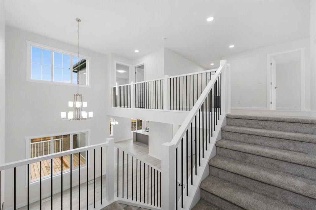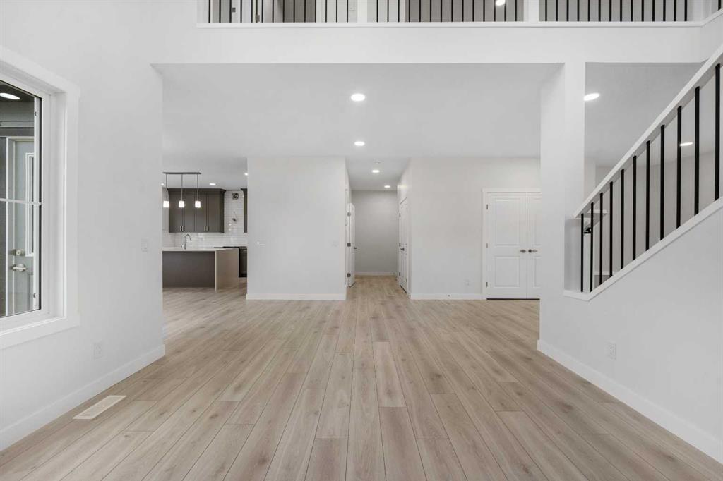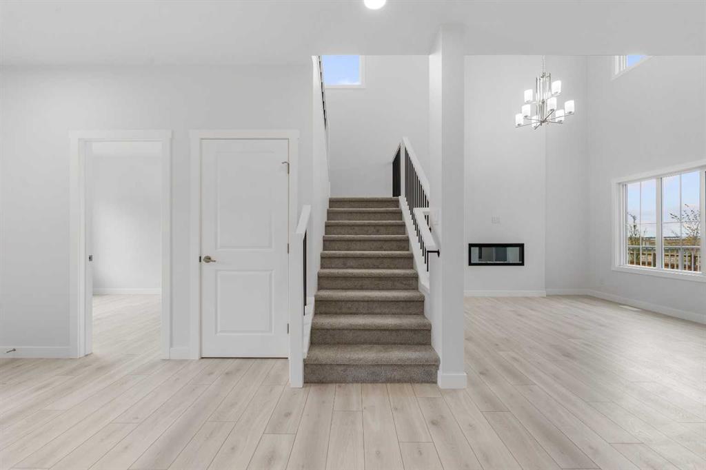 MODERN DESIGN!! FAMILY-FRIENDLY LAYOUT!! PRIME BALZAC LOCATION!! Step into a bright, open main floor featuring a welcoming living area with electric fireplace, spacious dining area with direct backyard access, and a beautifully designed kitchen with large island, built-in features, pantry, and extensive cabinetry. A main floor office adds everyday flexibility for work, study, or guests. Upstairs offers 3 bedrooms, 2 full baths, a family bonus area, and convenient upper-level laundry. The primary retreat includes a walk-in closet and luxurious 5-piece ensuite, while the other two bedrooms share a full 4-piece bath. The basement includes a separate entrance for future development potential. Rare oversized double attached garage with parking for three vehicles plus direct backyard access through a man door. Located in the growing community of Goldwyn, Balzac — minutes to CrossIron Mills, close to schools, and quick access to major routes. THIS IS THE KIND OF HOME YOU DON’T WAIT ON — BOOK YOUR SHOWING TODAY!!