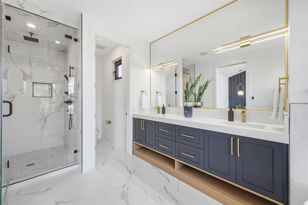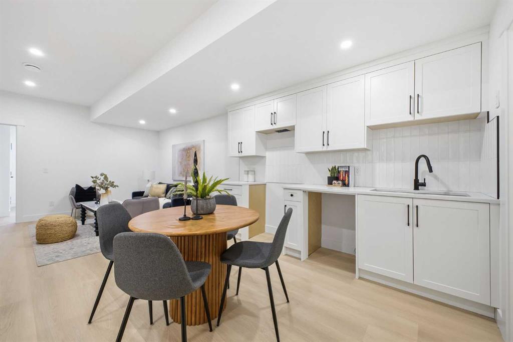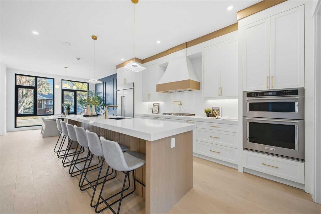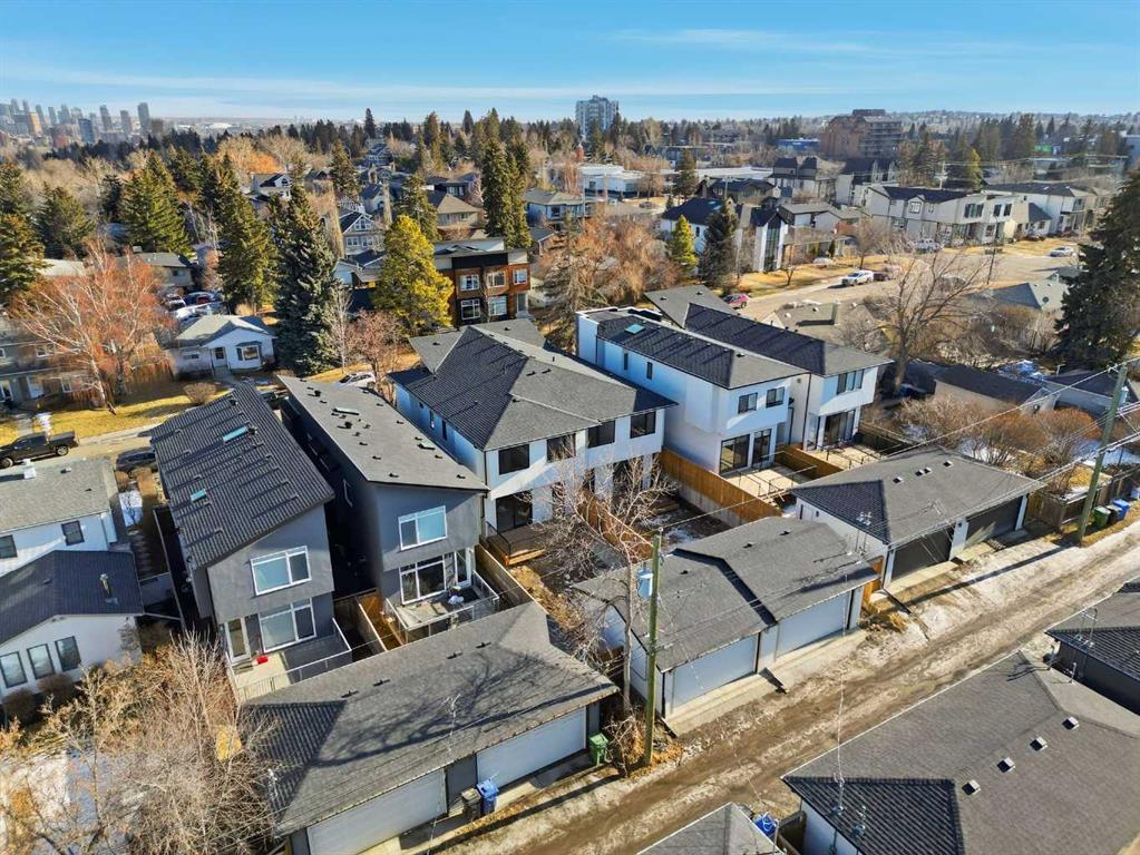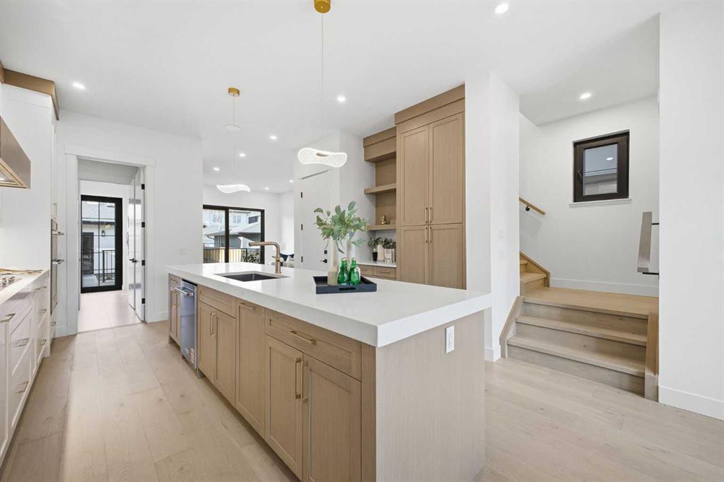 BRICK EXTERIOR | BUTLER'S PANTRY | MUDROOM | BONUS ROOM/OFFICE | STEPS TO TRANSIT | LEGAL BASEMENT SUITE | Welcome to 1427 26A Street SW, a beautifully crafted semi-detached infill located in the heart of Shaganappi. This brand new 2-storey home offers over 3,000 square feet of developed living space and blends luxury, functionality, and inner-city convenience. With three bedrooms plus a dedicated office, this home is perfect for families, professionals, or anyone seeking contemporary design with premium finishes. On top of that it offers a two bedroom legal basement suite. The main floor impresses with soaring 10-foot ceilings, wide-plank engineered hardwood flooring, and 8-foot doors. The gourmet kitchen features quartz countertops, a gas stove, built-in microwave, hood fan, custom cabinetry, a walk-in pantry, and a large island with breakfast bar seating. A formal dining area and a cozy living room with gas fireplace and built-in millwork complete this elegant open-concept space. A stylish powder room with designer lighting and custom vanity adds to the home's appeal. Upstairs, you'll find 9-foot ceilings throughout, an expansive primary bedroom with large windows and 13.5 foot vaulted ceilings, a walk-in closet with custom built-ins, and a luxurious 5-piece ensuite with in-floor heating, dual sinks, quartz counters, freestanding soaker tub, and a tiled glass shower. Two additional bedrooms offer generous space and light, while the main bathroom includes double sinks and full-height tile tub surround. The upper floor also features a spacious laundry room with built-in cabinetry and a linen closet. The basement is a two bedroom legal basement suite with a separate entrance, offering a nicely sized living and kitchen area, engineered hardwood flooring, and a 4-piece bathroom. Additional highlights include central air rough-in, smart thermostat, HRV, high-efficiency furnace, 100 AMP panel in the home, and a sump pump. The exterior is finished with a combination of Hardie board, brick, and stucco, paired with dual-pane black vinyl windows. Enjoy outdoor living with exposed aggregate walkways, a rear deck, full landscaping, and a BBQ gas line. Backed by a comprehensive builder warranty and the Alberta New Home Warranty Program, this home provides peace of mind along with exceptional value. Located minutes from downtown, transit, schools, parks, and shopping, this is a rare opportunity to own a brand-new home in one of Calgary’s most desirable inner-city communities.