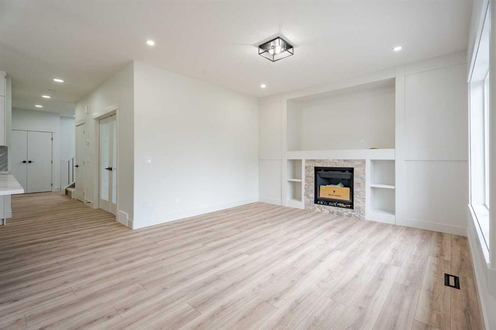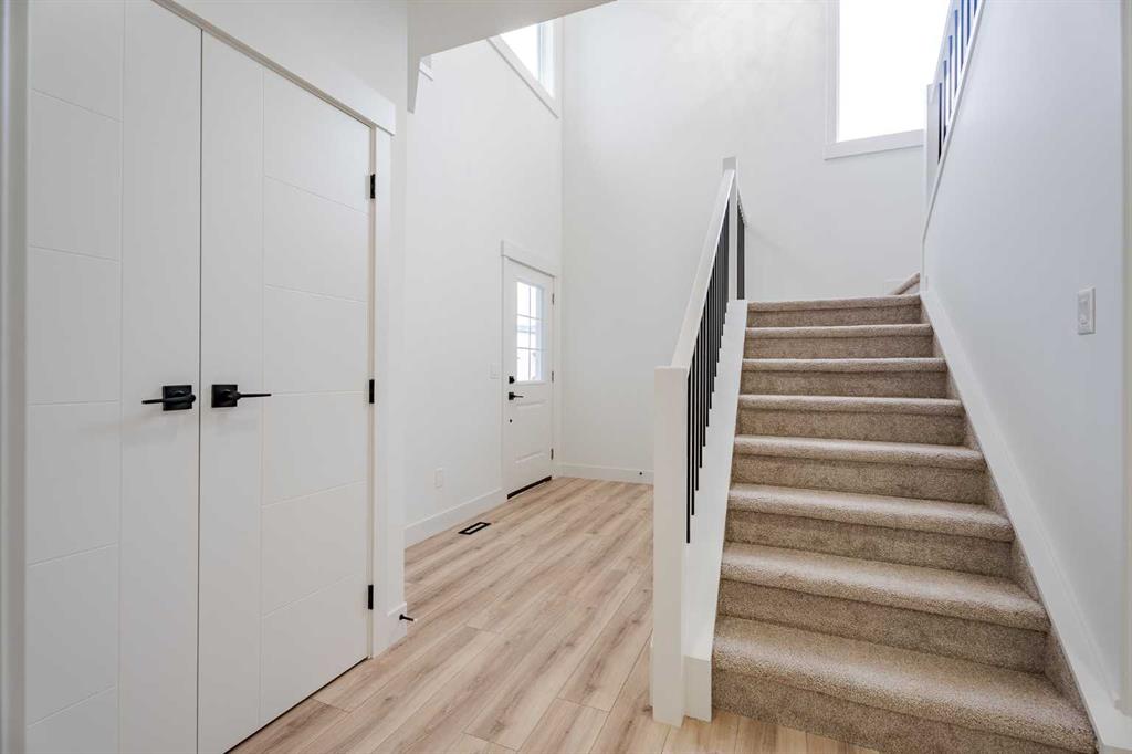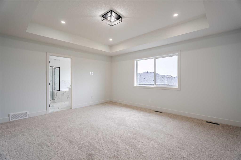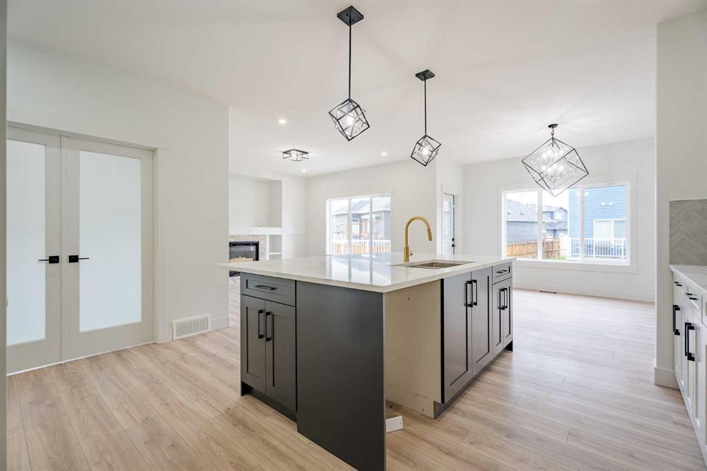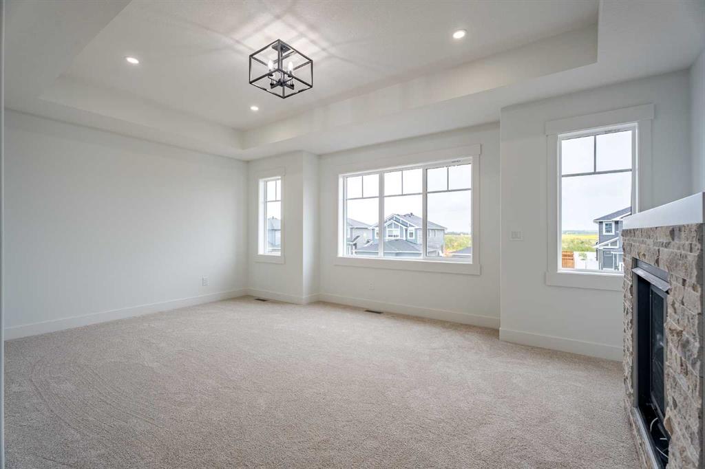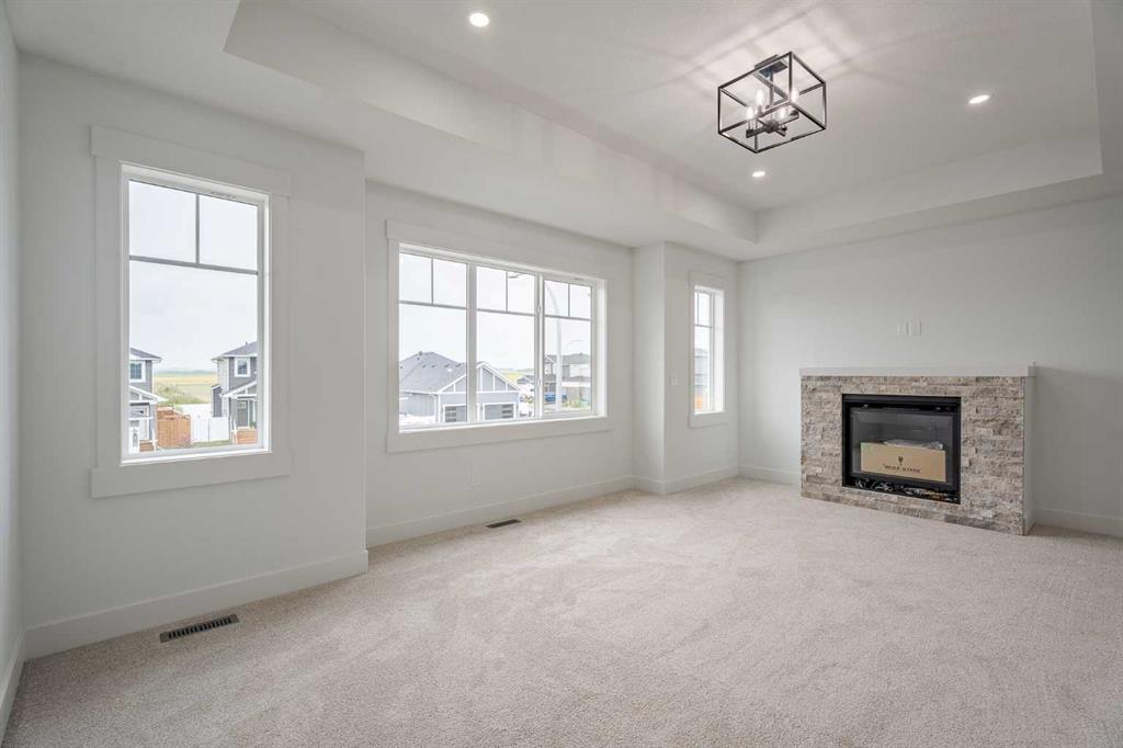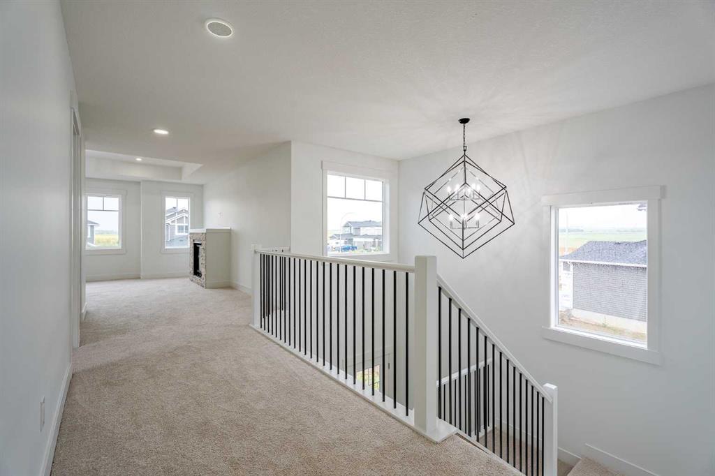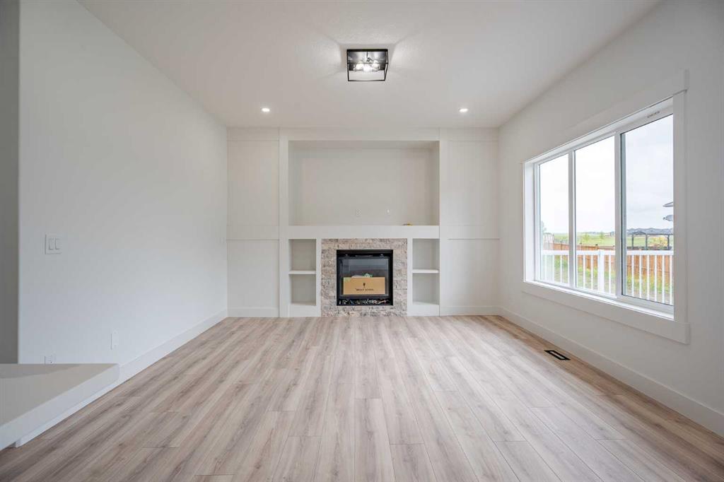 Quick Possession and Brand New with Triple Garage on a spacious lot with 51' frontage and 120' deep. Quick possession is available, and a Fall Special allows buyers to inquire about discount pricing to add a complete basement development. 2,372 sq.ft. two story with attached triple garage (28' x 23') and side access walk-up basement. Bright, open plan with spacious main level dining nook, kitchen with island and walk-through pantry (wood shelving) to spacious mud room (wood bench + shelves), family room with built-in shelves and fireplace, private Work From Home Office, two piece bath and spacious open cathedral front entry. Three bedrooms on the upper level including 15'9" x 14' Primary suite with raised tray ceiling and large walk-in closet (wood shelving), 5 piece Ensuite, bonus room with raised tray ceiling and fireplace, laundry room and 4 piece main bath. Bright undeveloped side access basement has high efficiency mechanical, roughed-in bath plumbing, and large windows for lots of natural light. Will be nicely appointed with ceiling height cabinets, quartz counter tops, upgraded lighting, vinyl plank, tile + carpet flooring, wood shelving in all closets, upgraded exterior and stonework. Includes GST (rebate to builder), new home warranty, rear deck with vinyl cover, front sod + tree, and $5,000 appliance allowance. Great family community with school, park and pond nearby, recreation facilities, and a quick commute to Airdrie, Balzac Mall, Calgary, or hospital nearby at Didsbury. A little drive, a lot of savings!
