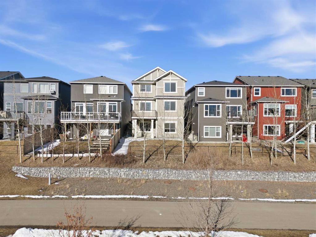 Located within the popular community of Livingston, this fabulous fully developed two story walkout home that borders and backs onto a gorgeous pond. The modern open concept main floor offers a U-Shaped kitchen with a large center island, a spacious living room and a bright dining area overlooking the pond. The kitchen has been equipped with stainless steel appliances, laminate countertops, and timeless white colour cabinetries. The large windows in the living room and dining area bring plenty of sunlight with a full view of the beautiful pond and green space. The patio door opens onto a deck that can comfortably seat a crowd. Upstairs features a spacious bonus room, two additional bedrooms, a full bathroom, and a master suite with open unobstructed views. The walk out basement has been beautifully developed by the builder with a 4-piece bathroom, a large 4th bedroom, and a bright recreation room with direct access to the concrete patio and the backyard. The east facing backyard is professionally landscaped and is just steps away from a walking/biking path. Brand new exteriors including Roof, Full Wrap of Sidings, Garage Door, and Drainage & Gutters were completed in 2025. The house is centrally located within walking distance to the Livingston Hub, future schools, public transit and a few community commercial centers. It is also close to parks and playgrounds and with easy access to the International Airport, Stoney Trail, Deerfoot Trail, Airdrie and Crossiron Mills. This home is the first time listed on the market, a rare find, don't miss this opportunity to make it yours. Call and book your showings today!