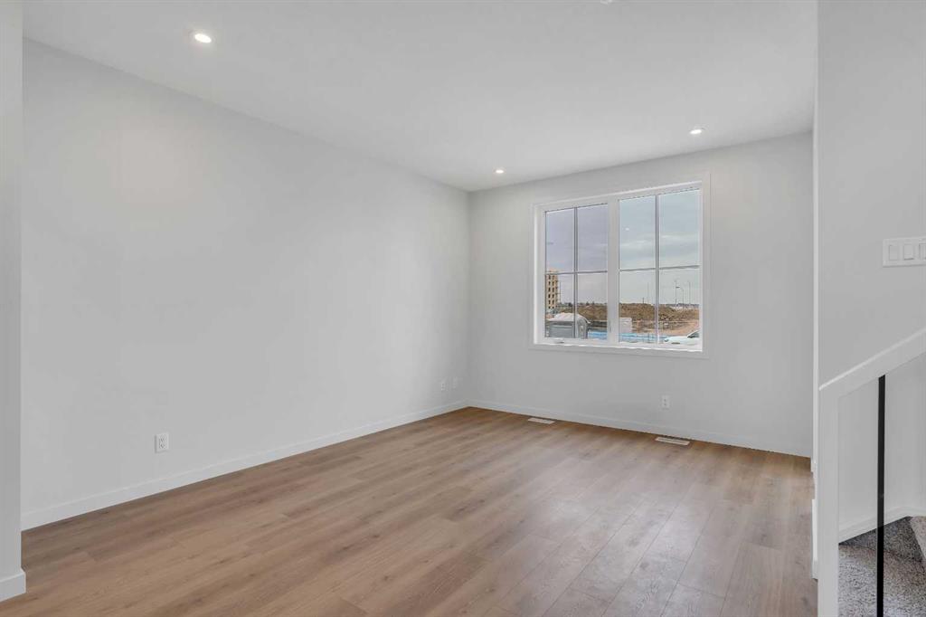 Welcome to 1497 Rangeview Drive SE – Viola 18 Model by Baywest Homes. This stunning home perfectly blends modern design with practical upgrades, offering style, comfort, and functionality for today’s lifestyle. At the heart of the home, the center kitchen boasts a long quartz island, upgraded gold plumbing fixtures, a Siligranite sink, stylish backsplash, and designer-curated finishes throughout. An oversized stairwell window and large dining room window flood the space with natural light, while the open railing upgrade creates a spacious, airy feel on the main floor. The generously-sized primary bedroom includes its own 3-piece ensuite with a large shower. The remaining two bedrooms are located at the back of the home and share a full bathroom. The thoughtfully developed basement adds incredible living space, featuring a 4th bedroom, full bathroom, spacious living room, and storage. With two large windows, the lower level is bright and inviting—ideal for guests, teens, or extended family. Stay cool all summer with air conditioning and enjoy the convenience of a rear deck complete with BBQ gasline—the perfect spot for summer gatherings. The home is also sprinkler system rough-in ready and includes front landscaping for a polished curb appeal. This home also includes a rear detached garage (18' x 21'), a side door entrance with upgraded laminate landing, and a south-facing backyard that ensures plenty of natural sunlight year-round. Perfectly situated in the growing community of Rangeview, this home is just steps from the future Commercial Village, Harvest Hall, and Community Greenhouse—connecting you to convenience, culture, and community living.