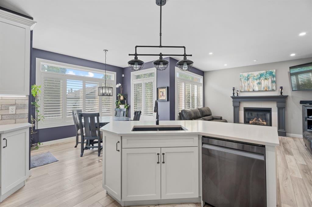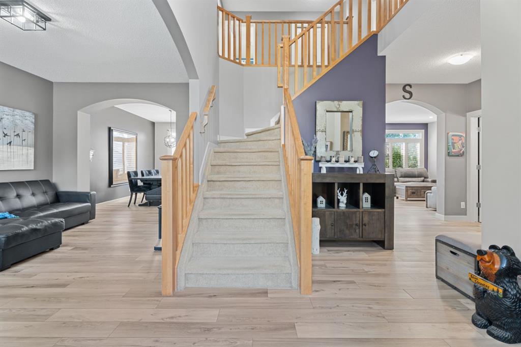 It’s rare to find a home that offers five true bedrooms upstairs, including a tucked away room currently used as a private office that can easily function as a bedroom-a layout that’s perfect for growing families, guests, or multi-generational living. Welcome to this warm and inviting family home in Drake Landing, thoughtfully designed for both everyday living and entertaining. Step into the bright foyer with open to below ceilings that create an airy, welcoming first impression. The renovated kitchen is a true showstopper, featuring white cabinetry, quartz countertops, a stylish tile backsplash, and a corner pantry for added storage. The sunny breakfast nook is ideal for casual meals, while the adjoining living room with a cozy gas fireplace sets the stage for family gatherings. A large formal dining room and a second main floor living space provide flexibility for entertaining, working from home, or relaxing. California shutters throughout the main floor add a touch of elegance, while the mudroom with access to the double attached garage keeps busy family life organized. Upstairs the four bedroom layout truly shines. The spacious primary suite offers a walk in closet and ensuite with soaker tub and shower. Three additional generous bedrooms, plus convenient upper level laundry, make this level as practical as it is comfortable. The unfinished basement is ready for your vision, whether you’re dreaming of more bedrooms, a recreation space, or a multi generational space. Dual furnaces and air conditioning ensure year round comfort. Outside, enjoy summer evenings in the sun soaked, south facing backyard with a large deck, perfect for barbecues and entertaining. Located in the family friendly community of Drake Landing, you’re close to schools, parks, shopping, and have quick access to the city. With its rare bedroom layout and flexible living spaces, this home is designed to grow with your family for years to come. Be sure to check out the virtual tour.