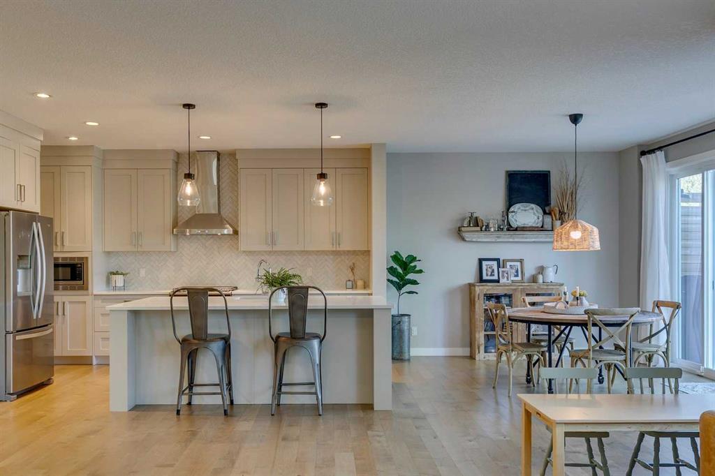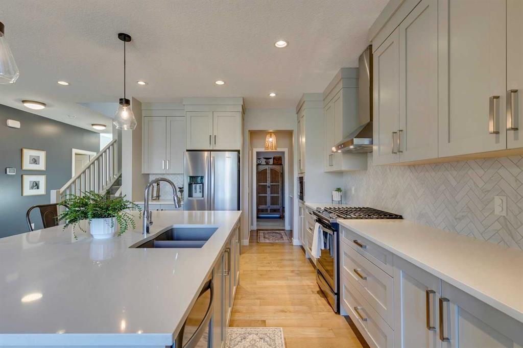 Welcome to 150 Cranbrook Circle – Nestled within an EXCLUSIVE POCKET OF CRANSTON RIVERSTONE, this property sits just steps from a children’s tot park and the BOW RIVER PATHWAYS. Situated on a beautifully landscaped corner lot, this warm and welcoming home offers over 2,600 sq.ft. of thoughtfully designed living space—ready for your family to create new memories in a setting surrounded by nature. A BRIGHT TWO-STOREY FOYER greets you, open to the level above. Morning light floods the great room through a wall of OVERSIZED WINDOWS overlooking the spacious backyard and mature trees. Step outside to a large back deck with plenty of room for dining and lounging, and unwind in the inviting hot tub after a long day. The kitchen, styled with full-height cabinetry, QUARTZ COUNTERTOPS, and ELEGANT HERRINGBONE TILE, connects seamlessly to the mudroom and includes a LARGE PANTRY plus a convenient coffee bar/nook tucked neatly out of sight. A MAIN-FLOOR OFFICE enjoys excellent natural light—perfect for working from home. Upstairs, the bonus room captures tranquil RIVER VIEWS, while three generous bedrooms and a large laundry room provide ideal family function. The bright primary ensuite features expansive windows, a DOUBLE VANITY, OVERSIZED SHOWER, and a HUGE WALK-IN CLOSET. The spacious basement awaits your creative touch, and the TRIPLE GARAGE plus corner lot offer AMPLE PARKING and STORAGE options. Discover this beautiful home in CRANSTON RIVERSTONE—Calgary’s best-kept secret—where Fish Creek Park and the Bow River are just outside your door. Enjoy easy access to schools, shopping, restaurants, and the South Health Campus and Seton YMCA, all only minutes away.