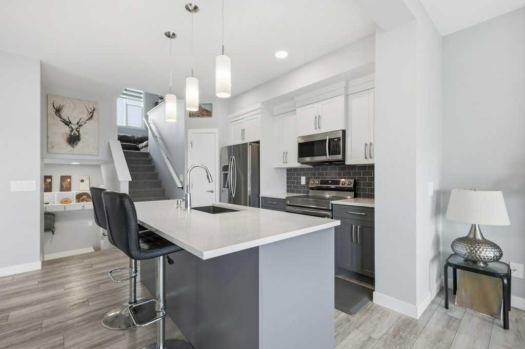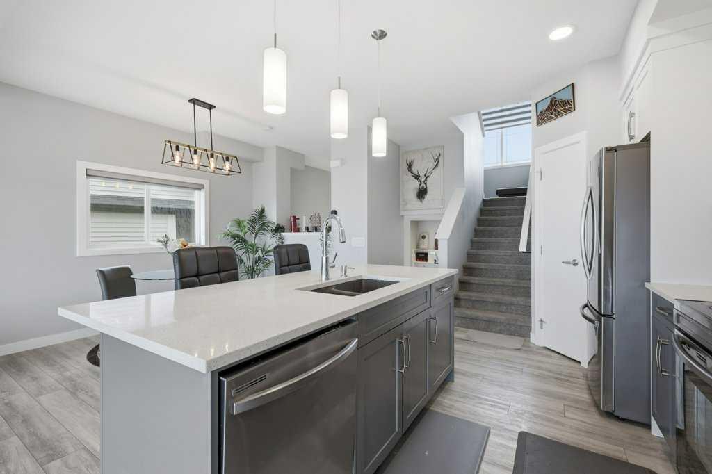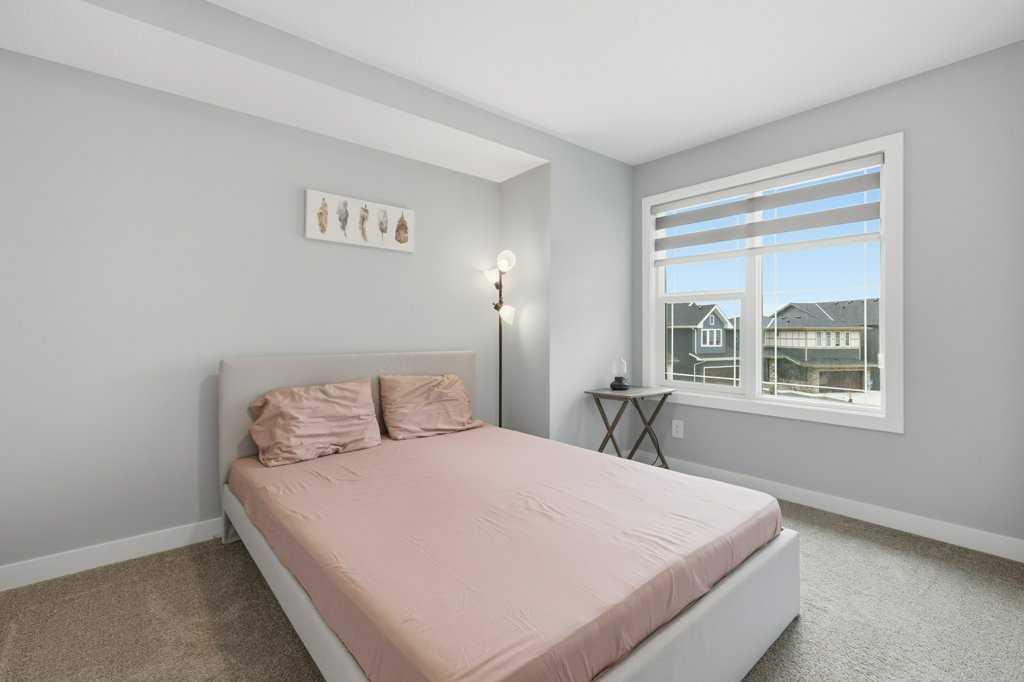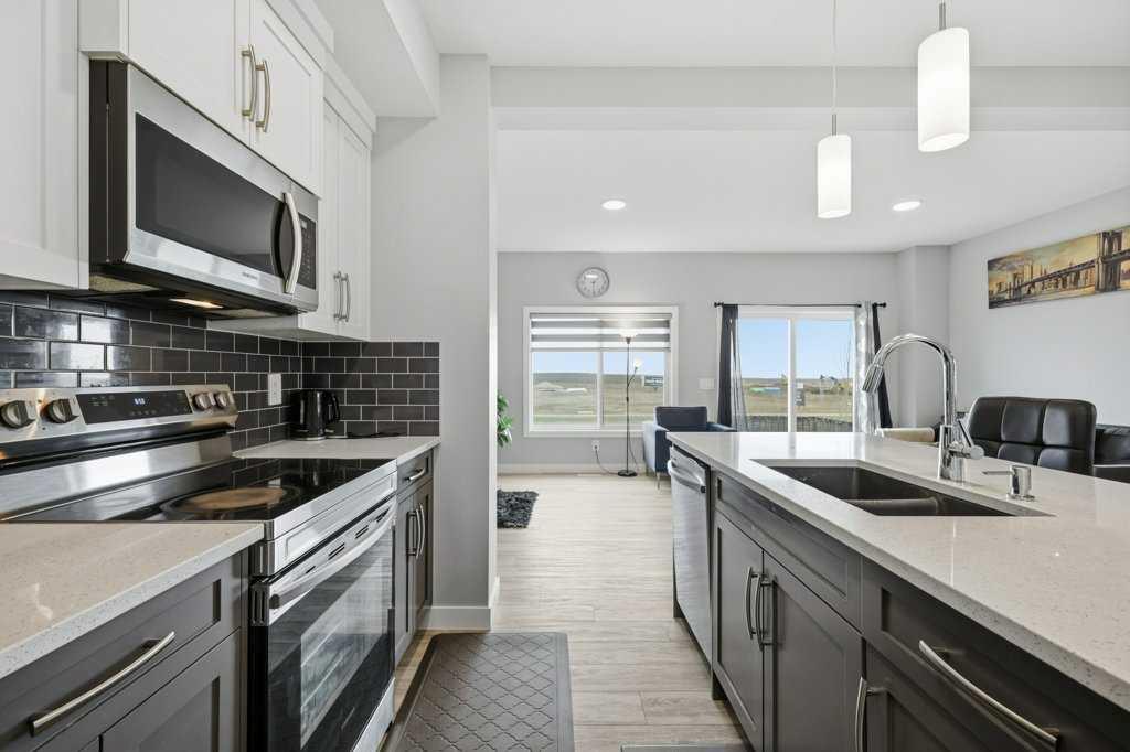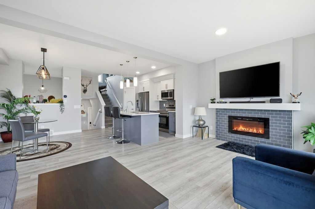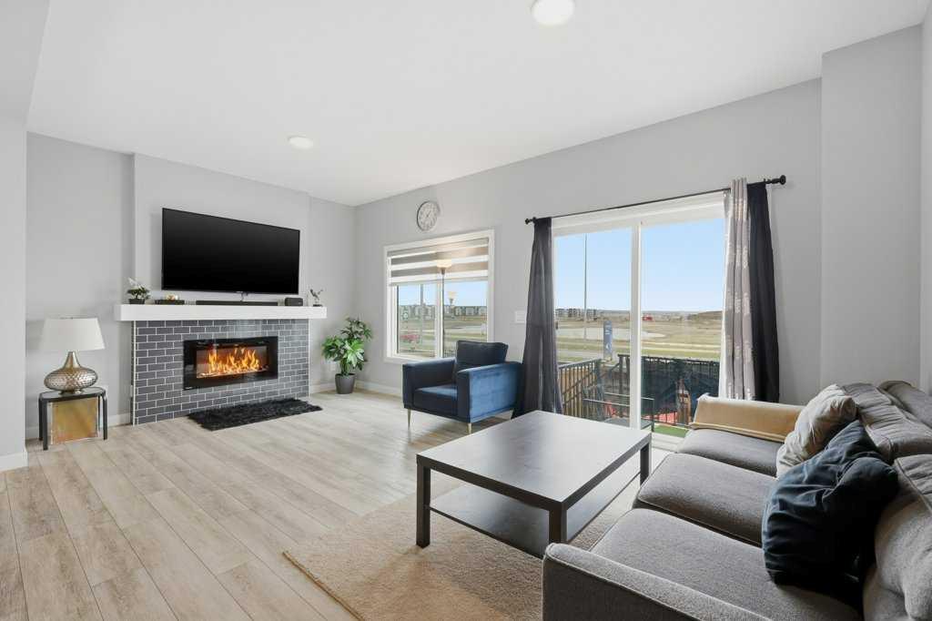 The main floor opens up around a kitchen built for actual cooking. Quartz counters, walk-in pantry, stainless appliances. White shaker uppers, grey lowers, dark subway tile backsplash. The island fits a family. Living room sits right off the kitchen with a tiled fireplace and big windows facing the back. Side entry has a built-in mudroom with bench, hooks, and cubbies, which you'll appreciate the first time someone walks in with wet boots. Upstairs is where it gets interesting. The bonus room has vaulted ceilings and its own fireplace, basically a second living room. Three bedrooms up here, including a primary with a walk-in closet and an ensuite with a glass shower. Laundry on the bedroom level where it should be. Two and a half baths total. Attached garage out front. Fenced yard with a patio and a back deck for summer dinners. The basement is unfinished and ready for whatever you have in mind, whether that's a fourth bedroom, a rec room, or both. Pine Creek itself has grown into one of Calgary's better newer SW communities. Playgrounds and soccer fields within a 20-minute walk. Pathways winding past ponds, wetlands, and into the foothills. Township Centre and Silverado Shopping are minutes away for groceries, coffee, and errands. Stoney Trail puts the mountains within easy reach on weekends. Macleod Trail takes you downtown when you need it. Spruce Meadows is up the road. Fish Creek Park and the South Health Campus are close. Wake up to foothills views and you'll get why people are moving out here.