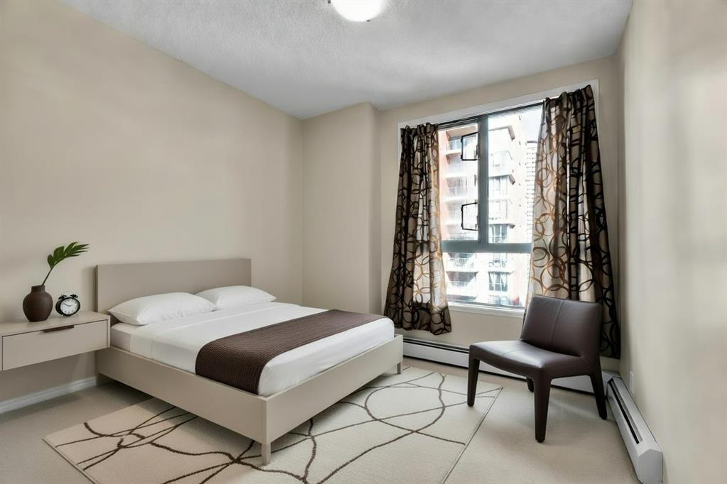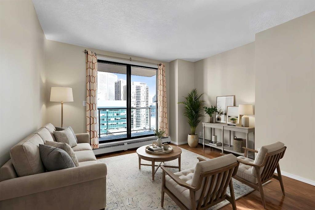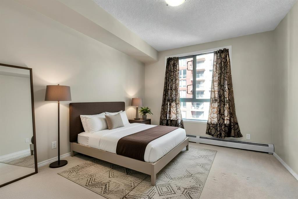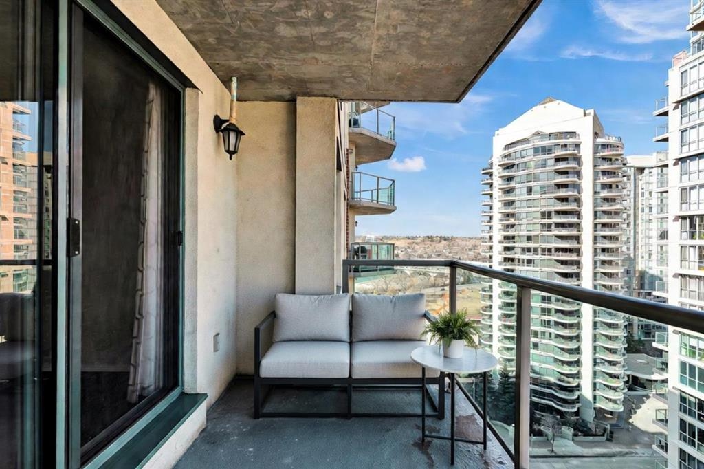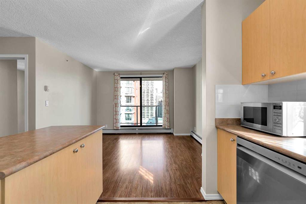 West End Downtown Living | City skyline views | 2 BEDROOM | TITLED PARKING | IN-UNIT LAUNDRY | Perched on the 15th floor, this desirable corner unit showcases a bright and affordable 2-bedroom layout with stunning views of the downtown skyline and glimpses of the Bow River from your private balcony. With its elevated position and extra windows, you’ll enjoy abundant natural light throughout the day. Inside, the functional layout features laminate flooring in the living and dining areas, creating a modern and low-maintenance living space. The well-appointed kitchen includes a brand new dishwasher, and in-suite laundry adds everyday ease. This well-managed building offers exceptional value with all-inclusive condo fees covering your utilities—making budgeting simple and stress-free. Residents also enjoy access to a fitness centre, secure bike storage, and ample visitor parking. Located in the heart of Calgary’s west downtown, you’re just steps to the Bow River pathways, perfect for walking, running or cycling. Commuting is effortless with the C-Train station right next door within the free fare zone. Plus, everyday essentials are at your doorstep with a main level medical clinic, pharmacy and restaurants all within the building. An ideal opportunity for first-time buyers, investors or anyone seeking convenient downtown living at an unbeatable price. Call to book your private viewing today!
