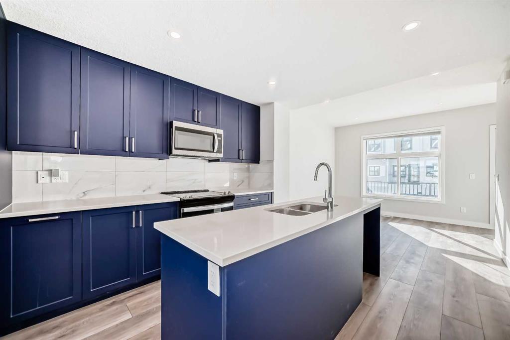 LIKE NEW but NO GST! Front GARAGE with developed OFFICE at the back and ground level WALKOUT to fenced 'no maintenance' patio/ back yard. IDEAL FOR INDEPENDENT SINGLES (2 Ensuites). Lovely contrasting plank flooring, quartz counter tops, triple glazed windows, 'ON DEMAND' hot water, natural gas BBQ hookup and many more extras. Includes all appliances (upgraded fridge and stove) as viewed, including wall SAFE, and convenient CODED front door locking system. Solar panels, R/I for EV, AC, BBQ. North edge location backing onto complex perimeter fencing and 2 doors down from GUEST parking. Includes access to fitness center in the apartment block. A Jayman project at its finest. NOTE: Townhome has front and back walk-in doors with ground floor OFFICE.. Handy to Quarry Park and is part of the established Douglas Dale community. NEW condition yet no GST on purchase. To view is to buy!!! NOT MUCH MORE THAN THE PRICE OF AN APARTMENT.