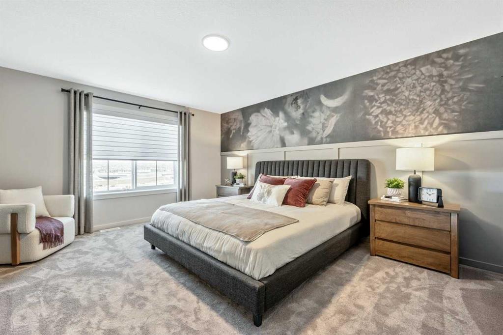 Welcome to your new home! The "Maeve", expertly crafted by Bedrock Homes, is situated in the community of Osprey Hill; one of Calgary's newest and most desirable communities. Thoughtfully designed, this home offers spaces for friends & family to gather & share special occasions; as well as providing private areas to retreat to, and relax in. Tentatively scheduled to be completed in April of 2026. Gateway to mountain living with quick, convenient access to Canmore and Banff via Highway 1. Desirable walkout lot offering abundant natural light and seamless indoor-outdoor living. Walkout basement with extended concrete patio—ideal for entertaining or potential future development. Included 12’ x 10’ rear deck, providing additional outdoor living space. Upgraded kitchen features a chimney-style hood fan and full-height cabinetry to the ceiling. Luxurious 5-piece ensuite with dual vanity, soaker tub, and tiled walk-in shower. Spacious bonus room ideal for a family lounge, playroom, or media room. Versatile Main-Floor Flex room perfect for a home office, study, or additional living space. Expansive laundry room offering a refined design, custom sink, and side-by-side washer and dryer. 9’ knockdown ceilings on the main floor enhance the open, airy feel. Elegant railing with modern metal spindles throughout. Convenient walkthrough mudroom connected to a walkthrough pantry. 9’ basement foundation. All photos are representative.