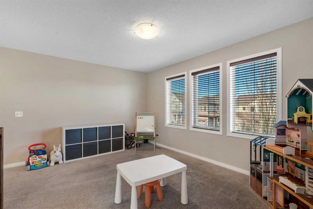 Pride of ownership is evident throughout this well-maintained, move-in ready home featuring a fully finished layout tailored for growing families and everyday comfort. The welcoming main level unfolds with an abundance of natural light, where a thoughtfully designed kitchen anchors daily routines with granite countertops, stainless steel appliances and efficient workspace that keeps everything within reach. Seamless flow continues into the dining area where sliding doors extend living outdoors, supporting easy barbeques and quiet evenings on the deck. Relaxation is invited in the adjacent living room around the ambient gas fireplace while extra windows draw sunlight deep into the space. Daily organization is simplified by a tucked-away powder room and a large walk-in entry closet that keeps jackets, shoes and bags neatly stored. The upper level is equally well planned with a lofted bonus room that introduces flexibility for a play area, home office or comfortable place to unwind. Retreat at the end of the day to the private primary oasis boasting a 4-piece ensuite and walk-in closet, creating a quiet space to recharge. Two additional spacious and bright bedrooms, including one with its own walk-in closet, are complemented by a full 4-piece bathroom. Convenient upper level laundry streamlines daily routines. A fully finished basement expands the living space with durable LVP flooring and a large rec room centred around a wet bar that makes snacks and drink refills during movie nights or gatherings effortless. A fourth bedroom and a 4-piece bathroom accommodate guests or older children with ease, while ample storage supports long-term organization. Outdoor living is just as inviting with a sunny south-facing backyard that maximizes natural light throughout the day. An expansive deck sets the stage for summer hosting while a large fenced yard allows kids and pets to play safely. Evenings are best spent gathered around the firepit, creating a comfortable setting to unwind under the open sky. This outstanding location connects easily to everyday convenience in the sought-after community of South Windsong within walking distance to Coopers Town Promenade shops, dining, childcare and local businesses. Nearby parks, green spaces and pathways support an active lifestyle while easy access to Calgary, the airport, CrossIron Mills and Costco keeps commuting and errands simple and efficient. Truly an exceptional location for this gleaming, move-in ready home.