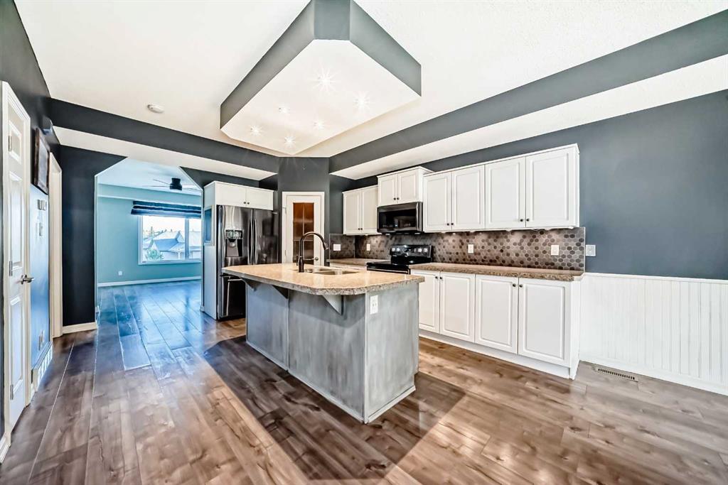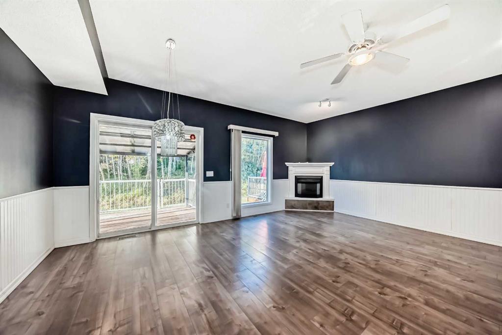 Stunning End Unit Townhouse in Sought-After Crawford Ranch! Welcome to this beautifully finished 3-bedroom, 3.5-bathroom townhouse tucked away in the peaceful, no-through community of Crawford Ranch. Surrounded by mature trees and backing onto a private environmental reserve, this home offers the perfect blend of nature and convenience—just steps from walking trails, Jumping Pound Creek, and the Bow River, yet minutes from all that Cochrane has to offer. Inside, you'll find a spacious and functional layout with thoughtful upgrades throughout. The entry-level features a large family room with a cozy gas fireplace and a full 4-piece bathroom—ideal as a private space for teenagers, guests, or multi-generational living. Upstairs, the main living area showcases a stylish kitchen with granite countertops, stainless steel appliances, and a central island perfect for entertaining. The open-concept dining room features a second gas fireplace and opens onto a private deck with serene views of the natural surroundings. Additionally, there is a beautiful main floor living area and conveniently located half bathroom. The upper level offers a luxurious primary suite complete with an upgraded ensuite, two additional bedrooms, a full bathroom, and convenient upstairs laundry. Tastefully designed and surrounded by nature, this home truly has it all—space, style, comfort, and an unbeatable location. Don’t miss your chance to call Crawford Ranch home!