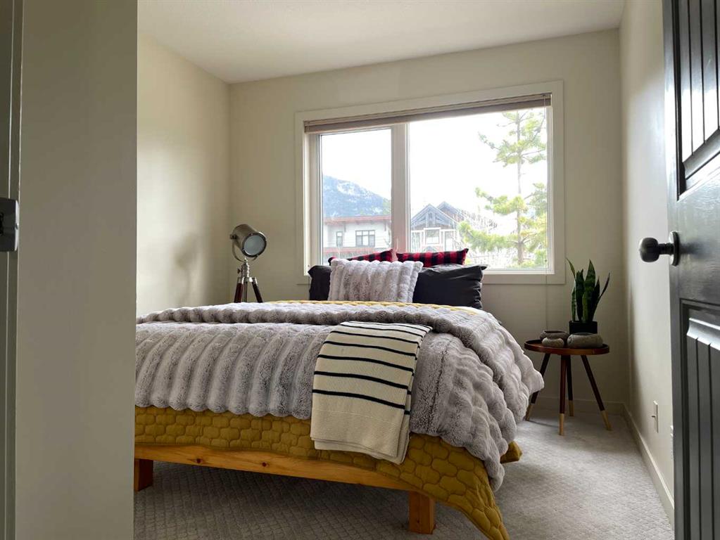 Thoughtfully designed 3-bedroom, 2.5-bath townhome with mountain views just minutes from downtown. The open-concept main floor features hardwood flooring throughout, granite countertops, and a carefully designed kitchen with stainless steel appliances, rich wood cabinetry, and a built-in wine holder, flowing seamlessly into a cozy, inviting living room that offers a warm and comfortable space to relax after a day in the mountains. A convenient half bath and stacked laundry complete this level. Upstairs, the spacious primary bedroom includes a beautifully finished ensuite, along with 2 additional bedrooms and a full bathroom, with stunning east and west facing mountain views from the upper level. The home also offers in-unit storage plus additional secure storage in a separate building, ideal for bikes, skis, and all your mountain gear. The Bow River trail system is just one block away, with a playground steps from the front door, and schools, downtown shopping, and Main Street all within a short walk, making this an exceptional opportunity to enjoy mountain living with everyday convenience.