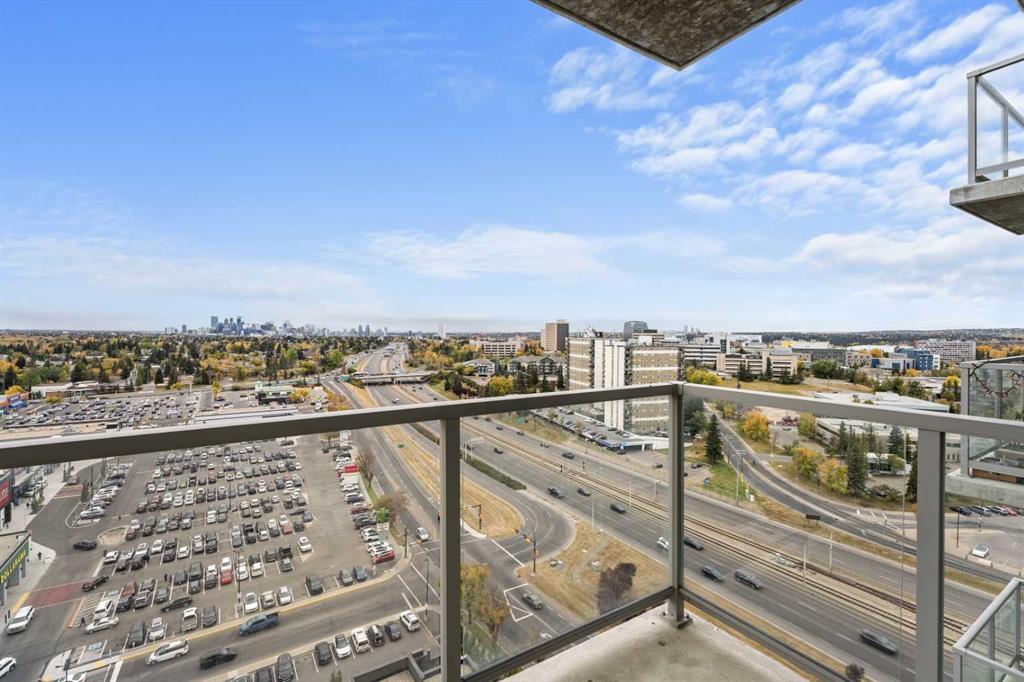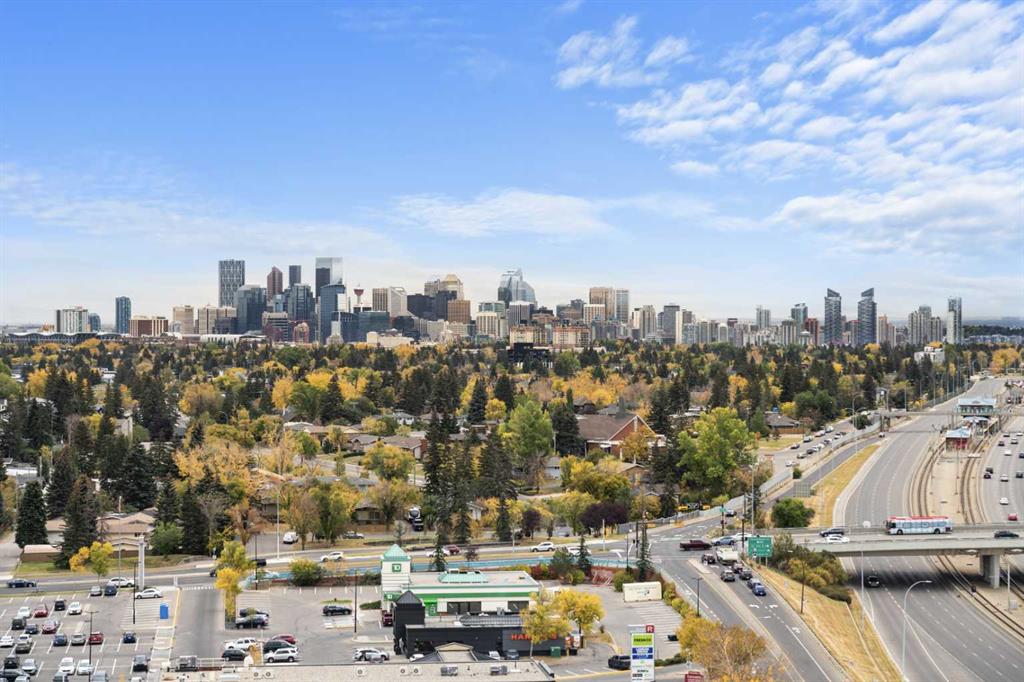 Welcome to University City, where contemporary sophistication meets effortless urban living. This exceptional east-facing residence captures sweeping panoramic views of downtown Calgary through its impressive floor-to-ceiling windows, creating a bright and inspiring space bathed in natural light. Thoughtfully designed, the open-concept layout showcases a modern eat-in kitchen adorned with granite countertops, stainless steel appliances—including a newly replaced microwave hood fan—and abundant cabinetry that transitions seamlessly into living area, perfect for entertaining or unwinding against a backdrop of city lights. The spacious primary bedroom offers a serene retreat, complemented by a conveniently appointed 4-piece bathroom, central air conditioning, and in-suite laundry featuring a newer washer and dryer (replaced just last year). Enjoy the convenience of titled underground parking, an assigned storage locker, and exclusive access to a fully equipped fitness centre and secure bike storage. Perfectly positioned steps from Brentwood C-Train Station, the University of Calgary, Foothills and Children’s Hospitals, and an array of shops, restaurants, and major commuter routes, this residence embodies the best of contemporary city living. Short-term rental friendly and move-in ready, this immaculate condo presents a rare opportunity for both discerning homeowners and savvy investors alike. Quick possession available—your urban lifestyle awaits!