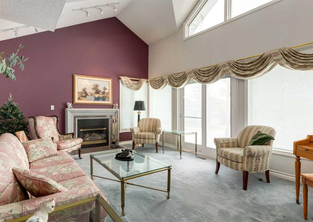 An incredible opportunity awaits for RENOVATORS, FLIPPERS, INVESTORS and all SAVVY buyers in the highly desirable community of Hawkwood. This executive-style home backs directly onto GREEN SPACE and offers breathtaking VIEWS of the ROCKY MOUNTAINS and foothills. With over 3000 SQUARE FEET above grade, this spacious home is perfect for buyers looking to renovate and add their personal touch while appreciating a well-designed layout and unbeatable location. The main floor features VAULTED CEILINGS, elegant spindle railings, and TIMELESS architectural details. Enjoy a formal living room with a gas fireplace and custom precast concrete mantle, a generous dining room, and a functional kitchen with granite countertops. One of the home’s standout features is the bright glass-enclosed sunroom—perfect for family breakfasts, dinners, or simply soaking in the views and nature year-round. A cozy family room with a second fireplace, a private office, and a powder room complete the main level. Upstairs, the large primary bedroom includes a private sundeck with PANORAMIC MOUNTAIN VIEWS, a luxurious ensuite with jetted tub and walk-in shower, and ample closet space with built-ins. Two additional bedrooms, a full bathroom, and an upper-floor laundry room offer added convenience for family living. The fully finished basement features a media room with a wood stove, a games area, flex space that could be used as a 4th bedroom, and another full bathroom—ideal for entertaining or guest accommodation. Outside, the private tiered backyard offers a peaceful retreat surrounded by mature trees, flowering shrubs, and a tranquil pond/fountain. A multi-level deck with gas line for BBQ makes outdoor dining and entertaining easy. Notable upgrades include some vinyl windows, two hot water tanks, and a durable metal roof. Located just minutes from Crowfoot Shopping, Melcor YMCA, the LRT, the University of Calgary, and with easy access to Stoney Trail and the mountains, this home combines space, views, and incredible potential in one of NW Calgary’s most sought-after communities. Don’t miss this rare chance to create your dream home in an exceptional location. Click the media icon for the video tour and book your private showing today!