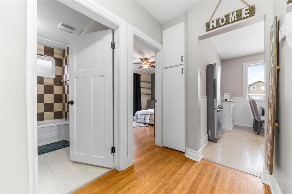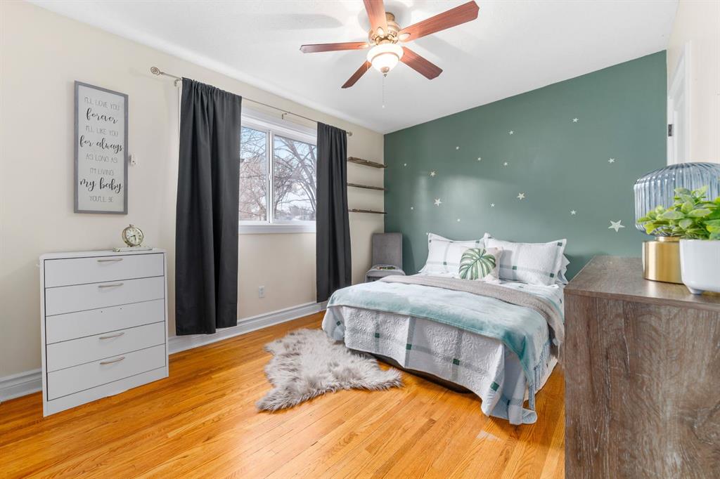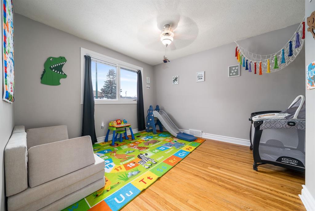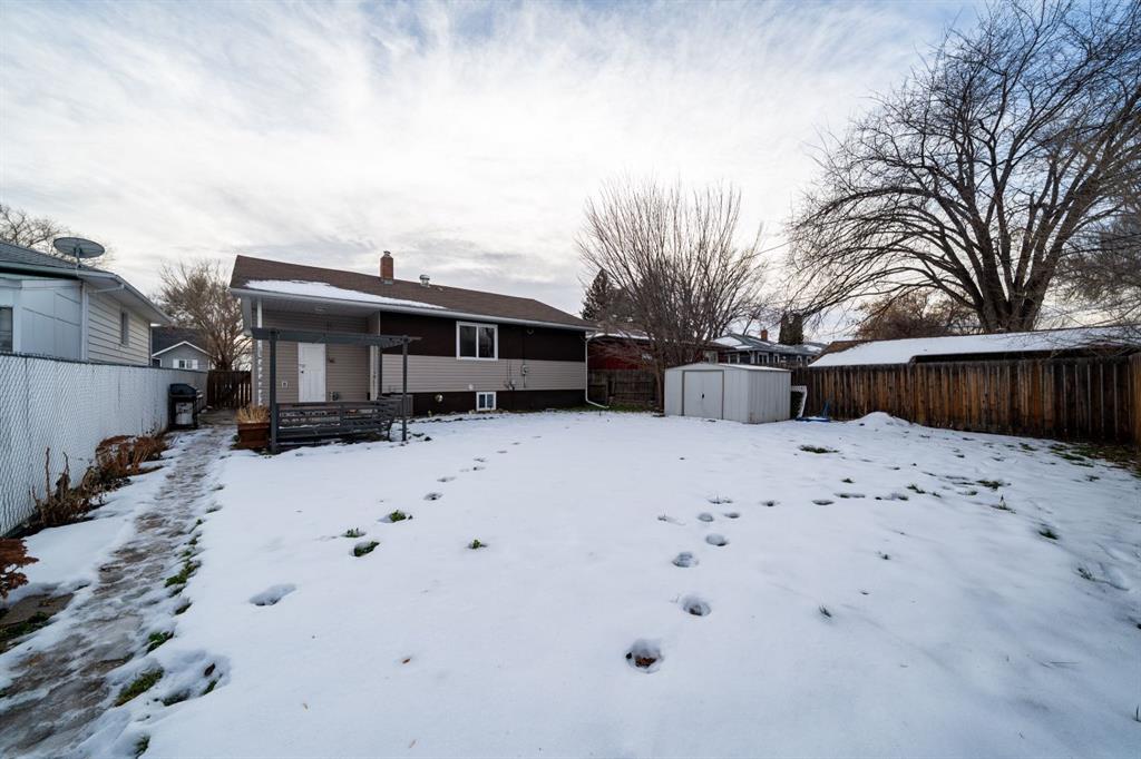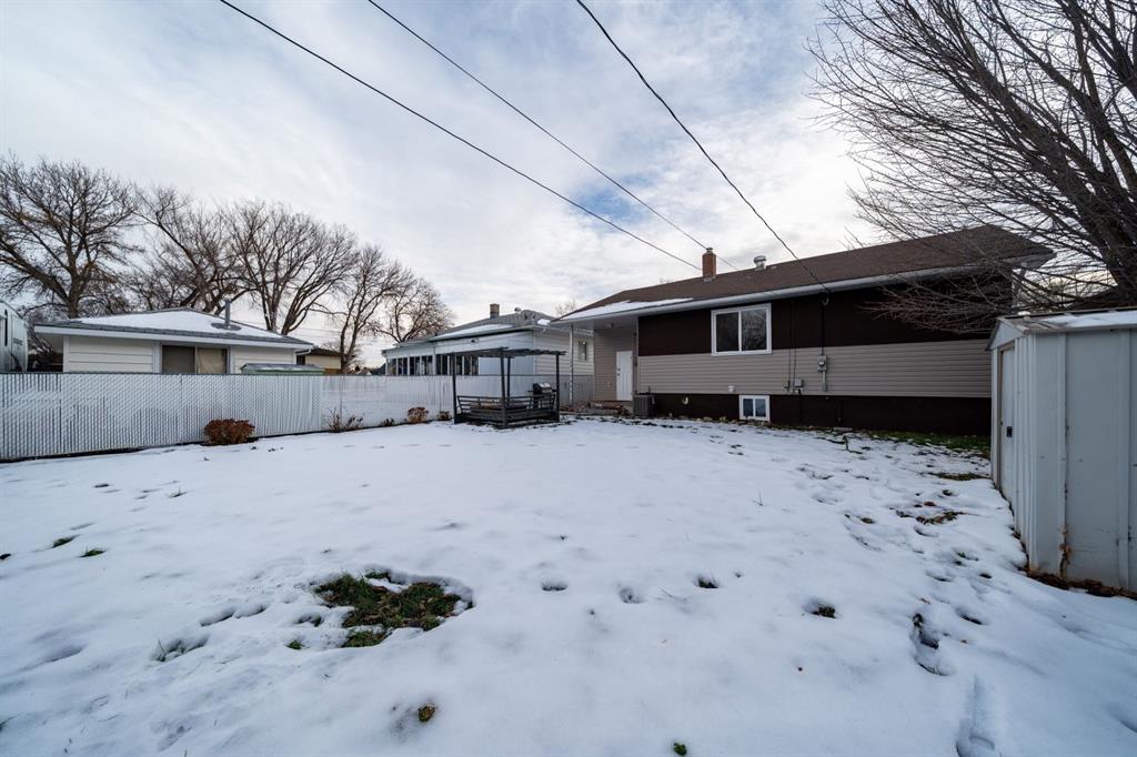 Location, location! Welcome to this spacious 5 bedroom bungalow situated on a quiet street just steps from Central Park. Enjoy a half block walk to the waterpark and playground, with schools and shopping conveniently nearby, an ideal setting for families. This well kept 1950s home offers a functional and flexible layout with three bedrooms up and two down, perfect for growing families. A standout feature is the huge primary bedroom located over the converted single garage, providing a private retreat with plenty of space. Inside, you’ll appreciate the refinished hardwood flooring, and updated windows throughout. The home has seen important updates including shingles replaced in 2010 and an upgraded 100-amp electrical panel. The efficient eat-in kitchen features some updated cabinetry, a gas stove, and is also wired for an electric stove. The fully finished downstairs offers additional living space and bedrooms, giving everyone room to spread out. Outside, the fully fenced and landscaped yard includes underground sprinklers, plenty of off street parking, and space to build a future double garage. The original attached garage has had the overhead door closed in, but could easily be opened back up and turned back into a garage. There is a gas outlet in the former garage so It would also be straight forward to heat it. A solid home in a highly sought after location...close to parks, schools, and amenities...this property checks all the boxes for comfortable family living.