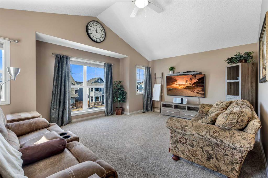 Location, Location, welcome to this beautifully maintained, original-owner home nestled on a quiet street in the desirable community of Bayside. Backing directly onto the scenic canal and pathway system, this property offers over 3,300 sq. ft. of developed living space, combining comfort, functionality, and exceptional outdoor living. This impressive home features 5 bedrooms and 3.5 bathrooms, along with numerous upgrades throughout, including 9’ ceilings, a vaulted bonus room, hardwood flooring, granite countertops, wrought iron railings, and upgraded stainless steel appliances. Additional highlights include two furnaces (with air conditioning on the upper level), rough-in for speakers on the main floor and in the ensuite, and an 11’ ceiling in the garage with extensive shelving for added storage. The main floor offers a thoughtful layout with a spacious great room featuring a cozy gas fireplace, a versatile flex room, convenient laundry area, and a stylish kitchen complete with a pantry, large island with eating bar, and a bright nook that opens onto the newer composite deck—perfect for enjoying picturesque canal views. A gas line is already in place for your BBQ. Upstairs, you’ll find a vaulted bonus room, four generously sized bedrooms, and a full 4-piece bathroom. The primary retreat includes a walk-in closet and a private ensuite, providing a perfect space to unwind. The fully developed walkout lower level expands your living space with a family room, additional bedroom, den, and a 4-piece bathroom, with direct access to the lower patio and backyard. The exterior is equally impressive, featuring manual underground sprinklers in the front yard and multiple outdoor living spaces designed to take full advantage of the tranquil waterfront setting. Ideally located close to schools, shopping, parks, and all amenities, this home truly reflects pride of ownership and offers an exceptional lifestyle in one of Bayside’s most desirable locations. Click on link to view 3D walk through.