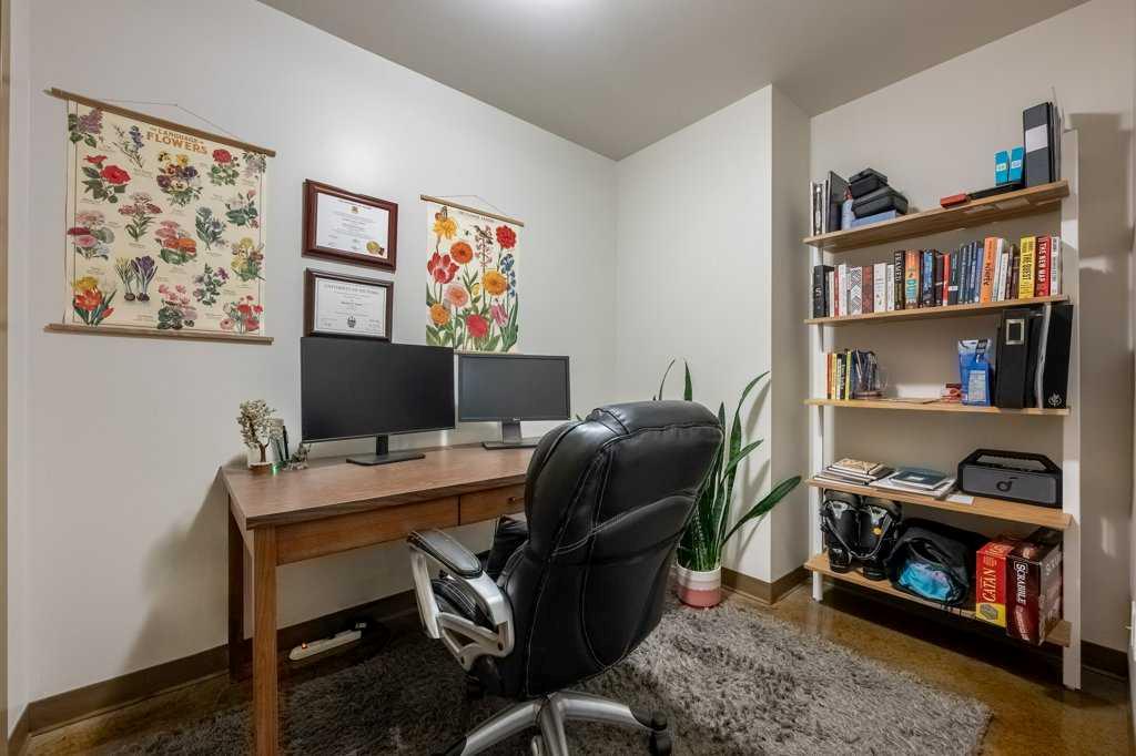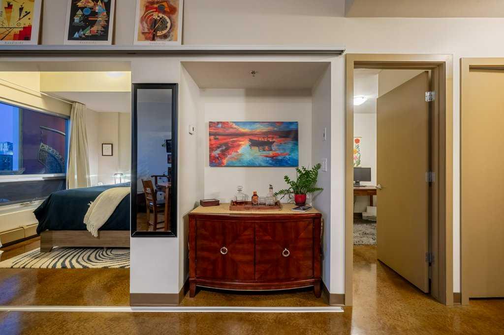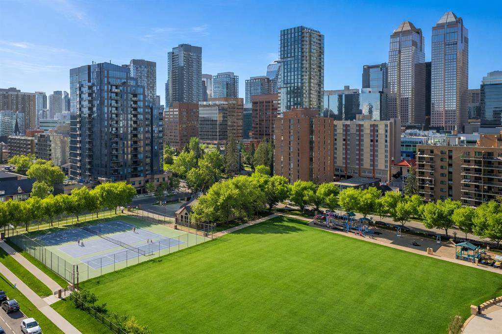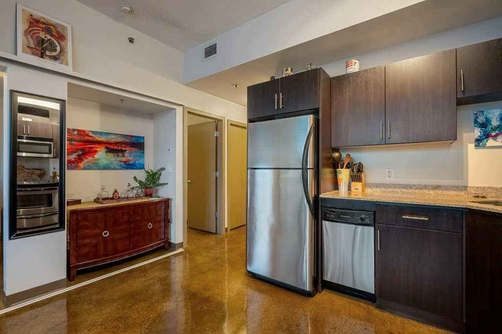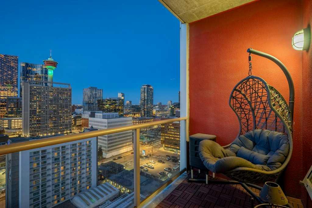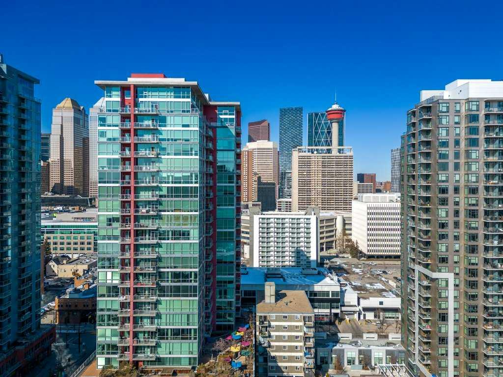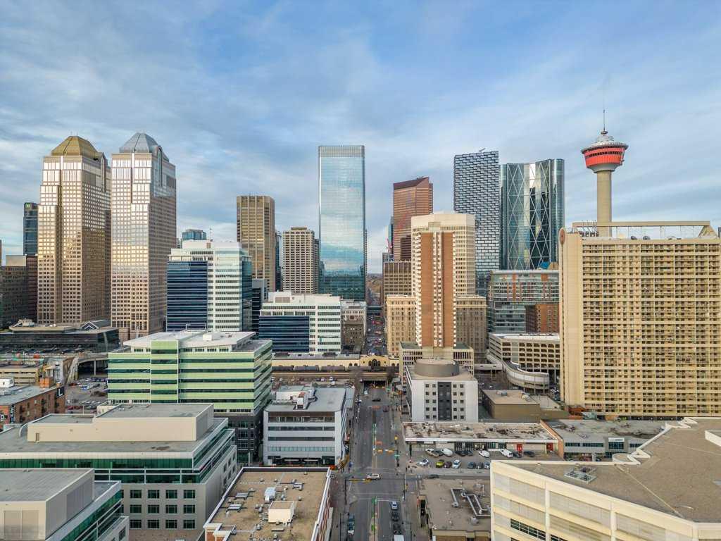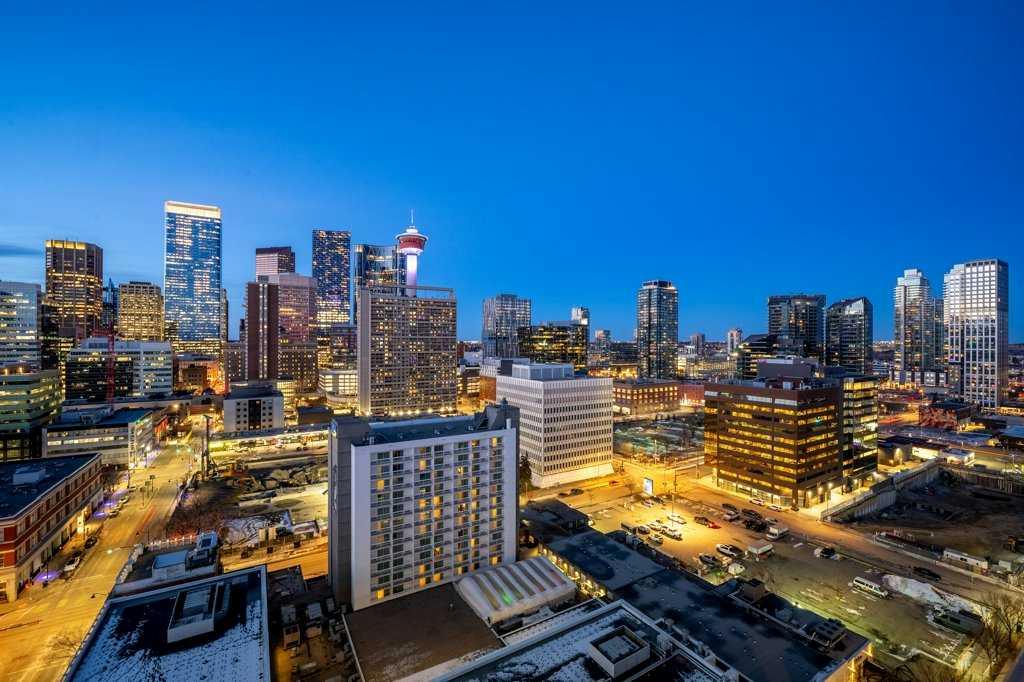 --> OPEN HOUSE: Saturday, March 14 from 1:30 to 3:30pm <-- Seventeen floors above the city, the perspective changes. The noise fades, the skyline sharpens and Calgary stretches out before you like a living postcard. This is Colours, a short-term rental approved complex, where a coveted two bedroom residence delivers a truly panoramic view of the downtown skyline. You know, the kind of million dollar outlook typically reserved for penthouses - yet here you experience it for roughly a third of the price. Stunning floor-to-ceiling north facing windows frame the city like artwork, flooding the space with natural light while showcasing Calgary’s towers, lights and endless urban energy. The freshly polished concrete floors add warmth and modern edge, perfectly complementing the open-concept layout that flows effortlessly between the kitchen, dining and living spaces. The primary bedroom becomes a front-row seat to the skyline, offering a calm retreat with those same sweeping visuals, while the versatile second bedroom easily transforms into a guest room or home office. Step onto your private balcony with natural gas hookup and watch the city shift from golden sunset to sparkling evening lights - a daily reminder that some views never get old. Boasting central A/C, underground parking stall, bike storage and a shared outdoor community garden that brings colour and greenery to the area. And the lifestyle below? It's just as compelling: order top shelf cocktails at Proof, grab a quick bite at First Street Market, Ten Foot Henry, Pat & Betty, St James Corner or Calcutta Cricket Club. Calgary's emerging entertainment district is just moments away which include the new arena, shopping destinations and convention centre. You are also completely walkable to the c-train line, Central Memorial Park, 17th Avenue, downtown office core and the Stampede grounds. Whether you’re a young professional, first-time buyer, investor or someone simply looking to live above it all, Colours ticks all the boxes. The skyline everyone wants - the price few expect.