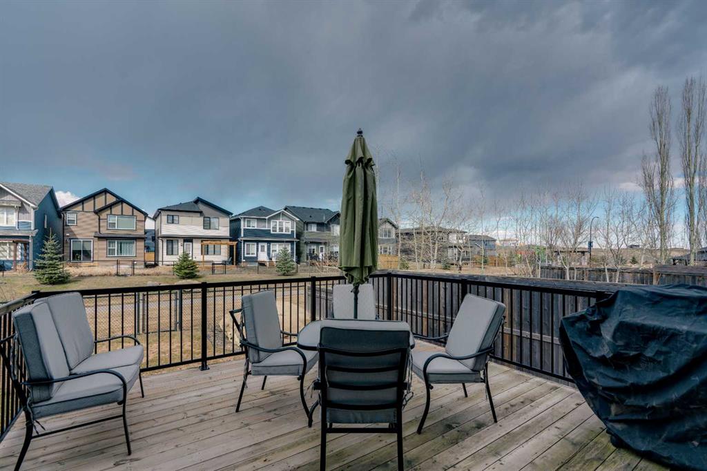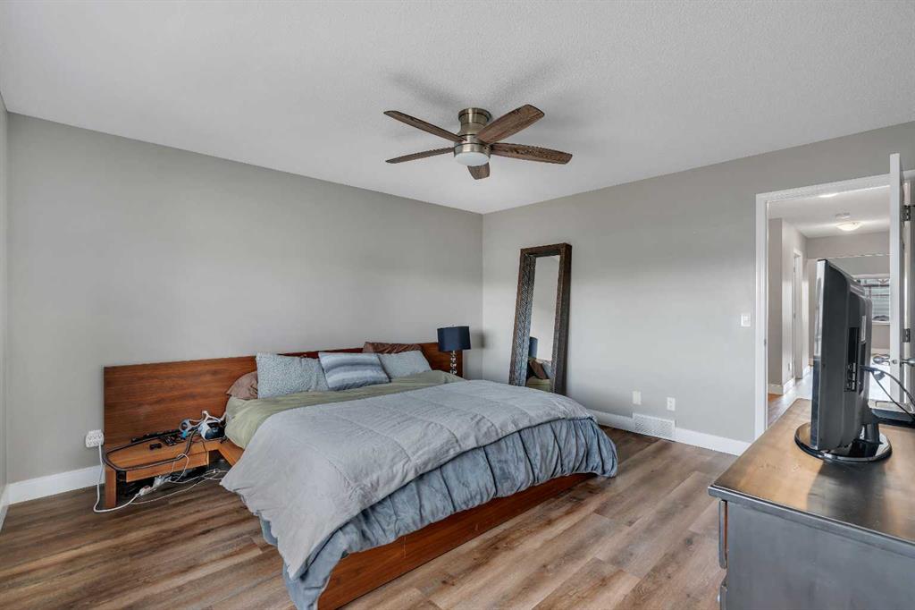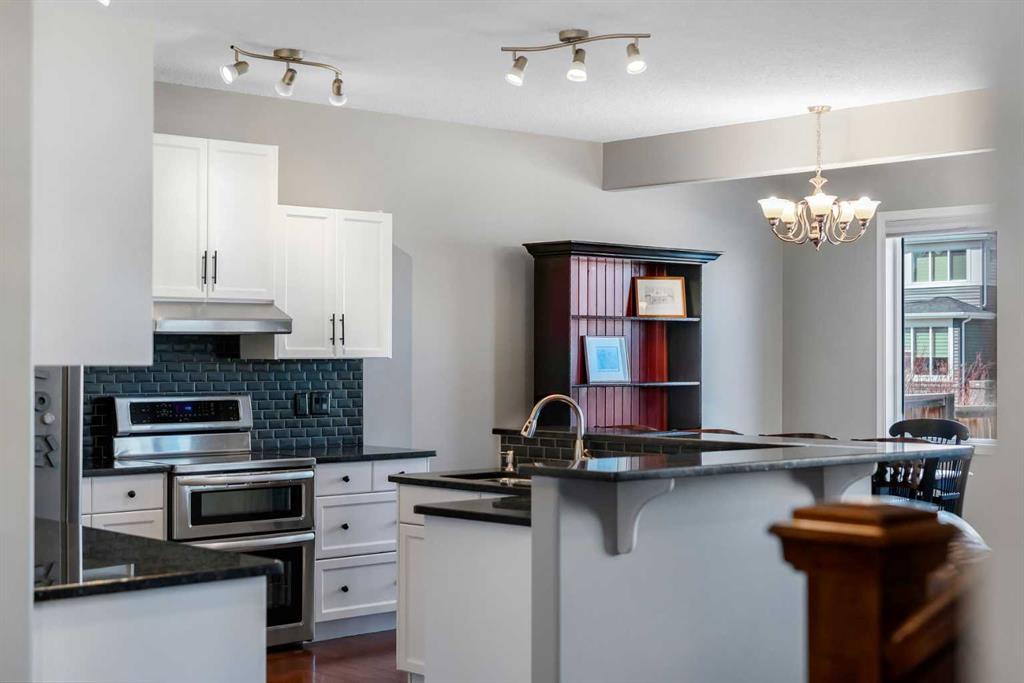 Welcome to 18 Silverado Skies Drive SW. Backing directly onto a green space and a walking path with, this fully updated Silverado home offers over 2,300 sq ft of developed living space with 4 bedrooms, a main floor office, and 3.5 bathrooms. The main floor is built for both everyday living and entertaining, featuring an open-concept layout with durable hardwood flooring throughout and a cozy gas fireplace anchoring the living room. The kitchen has been tastefully refreshed with crisp white cabinetry, modern black hardware, granite countertops, a central island with eating bar, corner pantry, and stainless steel appliances including a dual oven. A dedicated main floor office and laundry add function without sacrificing space. Upstairs, the vaulted bonus room creates an impressive second living area filled with natural light. The primary suite is spacious and well-designed, featuring a walk-in closet with added custom shelving and a 5-piece ensuite complete with dual sinks, a corner soaker tub, separate shower, and a private water closet. Two additional bedrooms, a full 4-piece bath, and a laundry room with a newer washer and dryer complete the upper level, which has recently been upgraded with luxury vinyl plank flooring throughout. The fully developed basement (2020) expands your living space with a dry bar, electric fireplace, custom built-ins, a large bedroom with legal egress window, and a smart pass-through bathroom with heated floors. This home has seen major exterior and mechanical upgrades, including Hardie siding (2021), all new windows (December 2025), and a hot water tank (2020). Out back, enjoy an expanded deck overlooking uninterrupted green space and direct access to walking paths. Finished with a double attached garage and located close to schools, parks, and shopping.