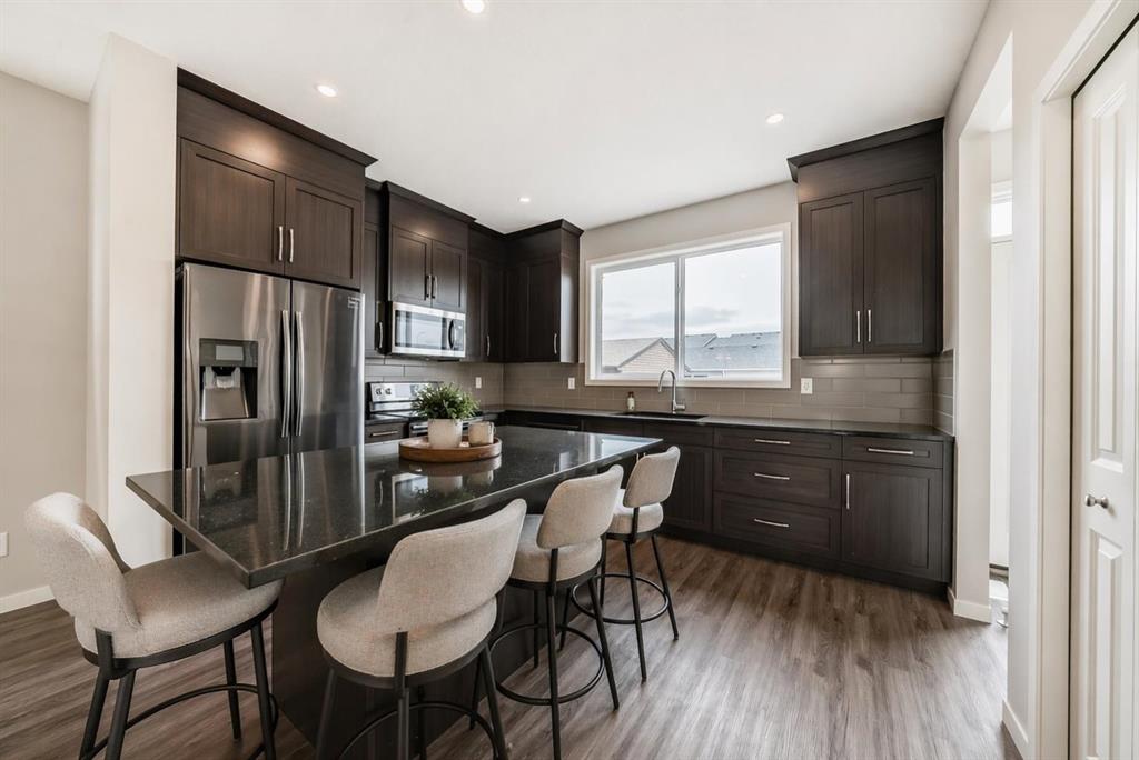 Welcome to this well-designed two-storey home offering over 1,600 sq ft above grade and an unspoiled basement for future expansion. Step into the welcoming living room with a large window to take advantage of the sunny south exposure. Just off the main entry a home office/den/flex room offers a quiet space for work or study or perhaps a play room. Moving through the main level, the layout flows into the central dining area, positioned perfectly between the flex room and kitchen, great for everyday use and entertaining. The kitchen offers a practical layout with a large island with room for 4 stools, ample cabinetry, and workspace. The stainless steel appliance package includes fridge with water dispenser, OTR microwave, double door oven and dishwasher. The mudroom with closet and bench provides a functional transition space with direct access outside to the deck. Plenty of room in the backyard for your future double garage. Air conditioning unit is tucked away along the side of the house. Upstairs, the spacious primary bedroom offers a peaceful retreat, complete with a walk-in closet and a 3 piece ensuite bathroom. The open loft area/bonus room offers flexible space for a playroom, media room, or second living area and provides separation between the primary and other bedrooms. The main 4 piece bathroom features a complete tub surround for easy cleaning and granite countertop with undermount sinks. The basement contains the freezer, washer and dryer and has RI plumbing for a future bathroom- all ready for your creativity!