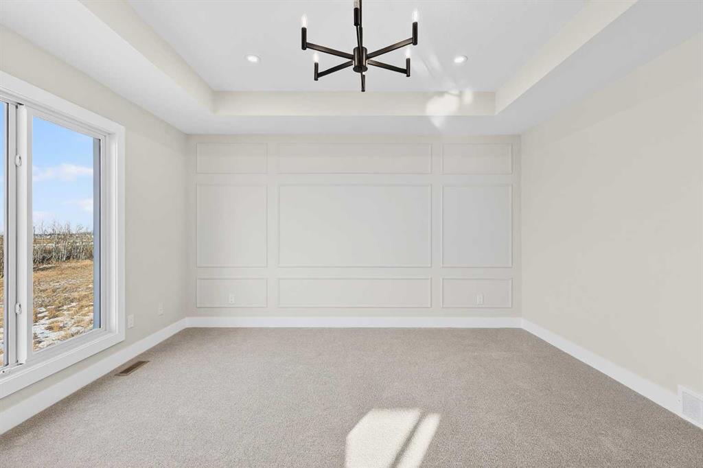 Welcome to 180 Wildrose Drive, nestled in the vibrant and family-friendly community of Wildflower, where scenic pathways, beautiful parks, and peaceful living come together. This stunning, move-in ready home welcomes you with a spacious entryway and soaring ceilings that flood the space with natural light. The main floor features durable LVP flooring complemented by ceramic tile in key areas, blending style with everyday practicality. The open-concept layout is ideal for gathering with loved ones and creating lasting memories. The kitchen is beautifully appointed with ceiling-height cabinetry, quartz countertops, a gas cooktop, built-in oven and microwave, and a gorgeous west-facing view. With 9 ft ceilings on both the main floor and basement, along with 8 ft doors throughout, the home feels bright, airy, and elevated. The living room is a true showstopper, highlighted by a striking feature wall with an electric fireplace and sleek tile surround, creating the perfect space to relax and unwind. Upstairs, the bonus room boasts vaulted ceilings and offers a versatile space ideal for board game nights, a toy room, or family movie nights. The primary suite serves as a private retreat, complete with a tray ceiling, designer feature wall, and a luxurious 4-piece ensuite showcasing a soaker tub, a spacious walk-in shower, and heated floors for year-round comfort. The walk-in closet features custom MDF shelving, thoughtfully designed for both organization and style. Step outside to a private backyard with no rear neighbours, offering exceptional peace and privacy. The yard is not landscaped, providing a blank canvas to design the outdoor oasis of your dreams, whether that is a garden, patio, or play space. The front yard includes sod and a tree provided by the builder, giving the home instant curb appeal. The garage is equipped with a gas line, making it easy to add a heater in the future for added comfort during colder months. A separate side entrance to the basement offers excellent potential for future development and customization to suit your lifestyle. Contact your agent today!