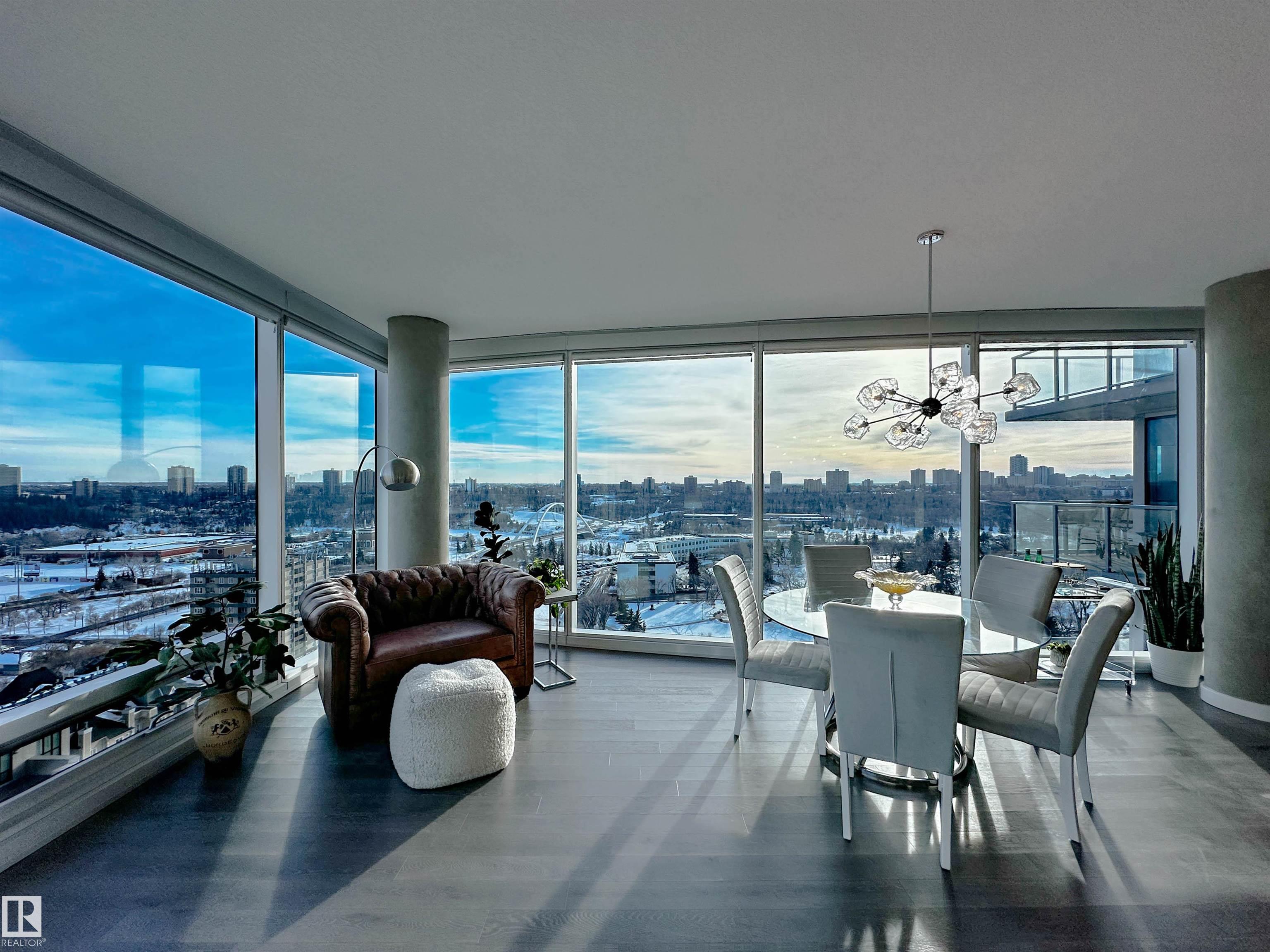 BREATHTAKING Panoramic Views From 1804 in The Symphony Tower! This Stunning 2 Bedroom Condo Features Floor To Ceiling Windows With Incredible East,South, & West Views Of The River Valley And Downtown. Open Concept Layout With A Spacious Living Area w/ Fireplace, Perfect For Entertaining. The Kitchen Offers A Large Island, Ample Cabinetry, 6 Burner Gas JennAir Stove And KitchenAid Appliances. The Primary Bedroom Includes A Walk In Closet, 6 Piece Ensuite And Wrap Around Balcony. Second Bedroom Or Den Features A Walk In Closet, w/ Cheater to Main Bathroom And Private East Facing Balcony. Additional Highlights Include In-Suite Laundry, Central Vac And Air Conditioning. Comes With Two Parking Stalls, One w/ a Lift, 1 w/ a Storage Cage. Exceptional Building With Secure Access, Fitness Centre, Social Room And Prime River Valley Location.