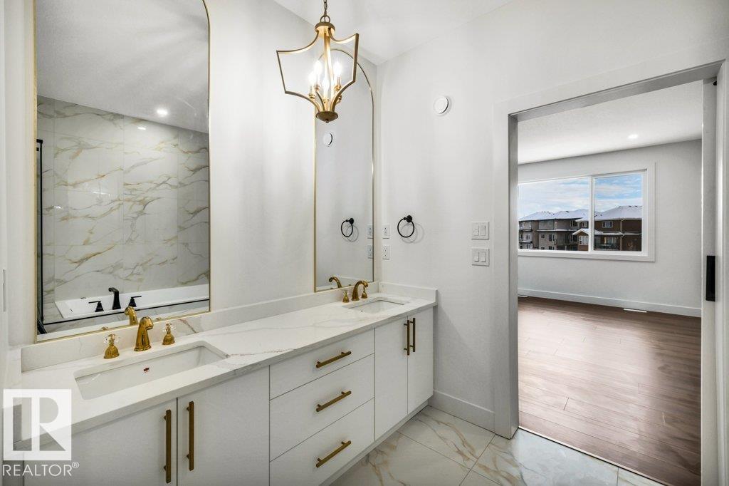 Welcome to Klarvatten! This well-built new home offers over 2,915 sq. ft. of finished living space, designed to impress with 5 spacious bedrooms and 4.5 bathrooms! The grand foyer offers soaring 18-foot ceilings, flowing seamlessly into the open-concept main floor. The living room, also enhanced by 18-foot ceilings, features a contemporary mantel fireplace for warmth & elegance. The chef’s gourmet kitchen is a true showstopper, offers a breakfast island & nook, modern cabinetry, quartz countertops & backsplash & modern copper-finished faucet fixtures. A full SPICE KITCHEN offers extra cabinetry, counter space & cooking convenience. The dining area opens directly to the deck & fully fenced backyard. Upstairs, you’ll find four generously sized bedrooms and three full bathrooms. The primary suite features a spa-inspired 5-piece ensuite w/ dual vanities, glass shower, & jet soaker tub. The undeveloped lower level provides outstanding potential for creating your extra living space! Close to all amenities.