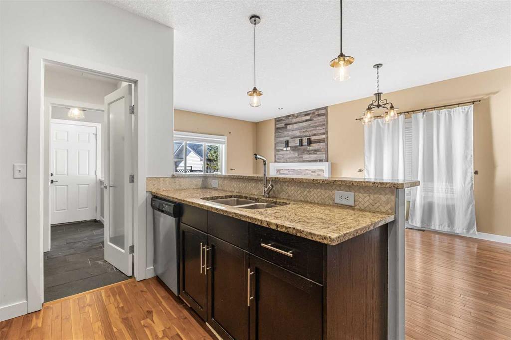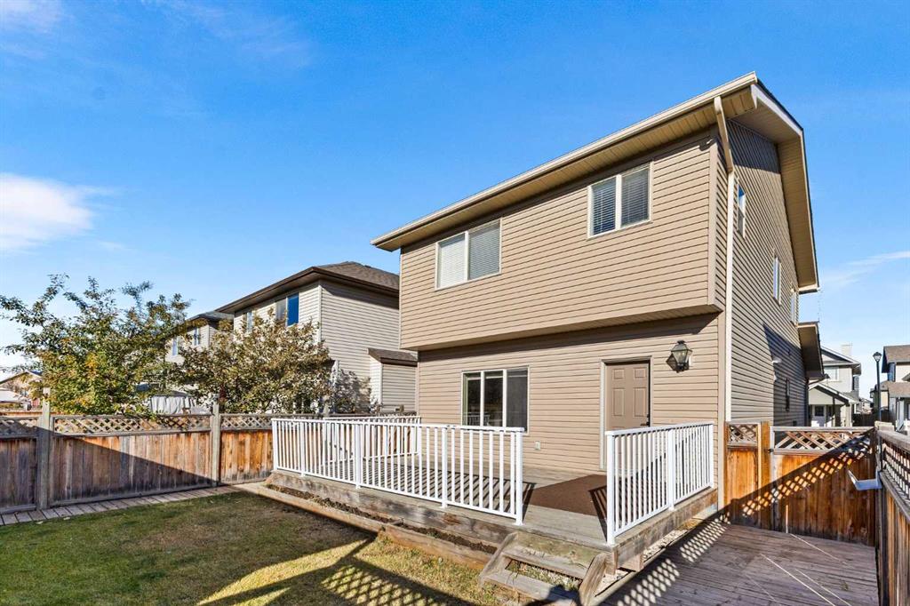 Nestled in the heart of Airdrie’s vibrant Bayside community, this home offers over 1900 sq ft of living space and 4 bedrooms above grade that blend comfort, functionality, and charm. The addition of a self contained illegal 2 bedroom basement suite provides an ideal space for guests, or as a potential mortgage helper. From the moment you arrive, the inviting front porch sets the tone for a property designed with both family living and entertaining in mind. Step inside and you are greeted by a warm, open floor plan where natural light pours across hardwood and slate floors. The main level offers a seamless flow between the living spaces, including a welcoming family room anchored by a cozy gas fireplace, a bright dining area perfect for gathering, and a thoughtfully designed kitchen with granite countertops, a breakfast bar, ample cabinetry plus a convenient walk-in pantry. A formal living room at the front of the home provides an elegant space for entertaining guests or enjoying quiet moments away from the bustle of daily life. Subtle rustic touches, including the character of sliding barn doors, add a sense of warmth and personality that makes the home feel both stylish and timeless. For added convenience, the main floor also features its own laundry area and a 2 piece powder room, making day to day living that much easier. Upstairs, the home continues to impress with four generously sized bedrooms, including a primary retreat complete with a walk in closet and a private 4 piece ensuite with relaxing freestanding soaker tub & separate shower. The additional bedrooms provide flexibility for children, guests, or even a home office, while a full bathroom ensures convenience for the entire family. The lower level is a standout feature, offering a self contained illegal two bedroom suite with its own kitchen, living and dining area, full bathroom, and private laundry. This space provides excellent potential for extended family, long term guests, or additional income opportunities, all while maintaining privacy and independence from the main living areas. Outdoors, the property is equally appealing. A landscaped yard with both a front porch and rear deck invites you to enjoy morning coffee or evening barbecues, while the fenced backyard provides privacy and space for children or pets to play. The double detached garage, complemented by RV parking, ensures there is room for every vehicle and toy. With central air conditioning, 2 furnaces, recessed lighting and closet organizers, the home is filled with modern comforts while maintaining its rustic charm. Its location within walking distance to parks, playgrounds, schools, and shopping makes it as convenient as it is welcoming. Vacant and ready for quick possession, this charming residence is more than just a house—it is a place where new stories are ready to be written.