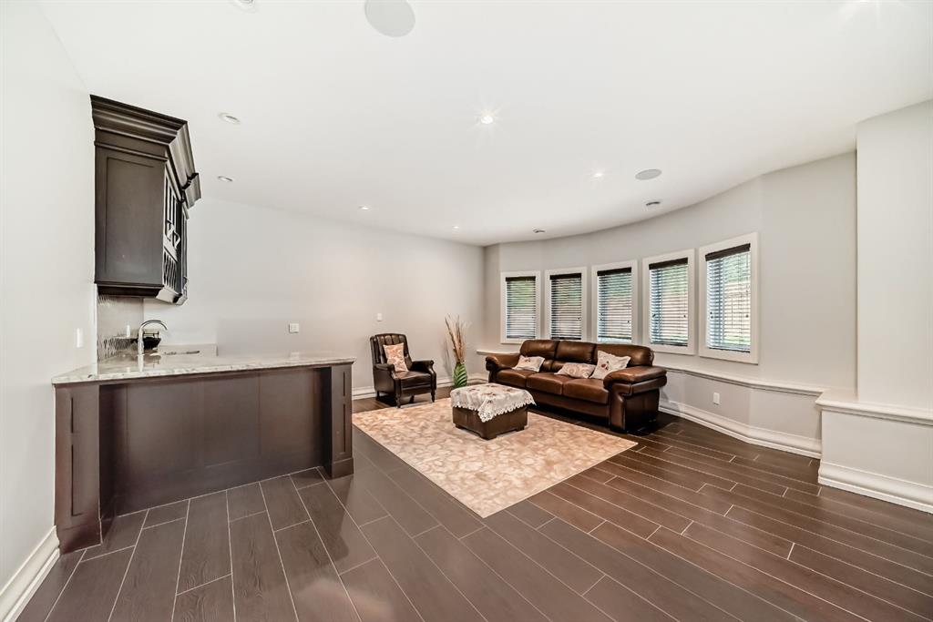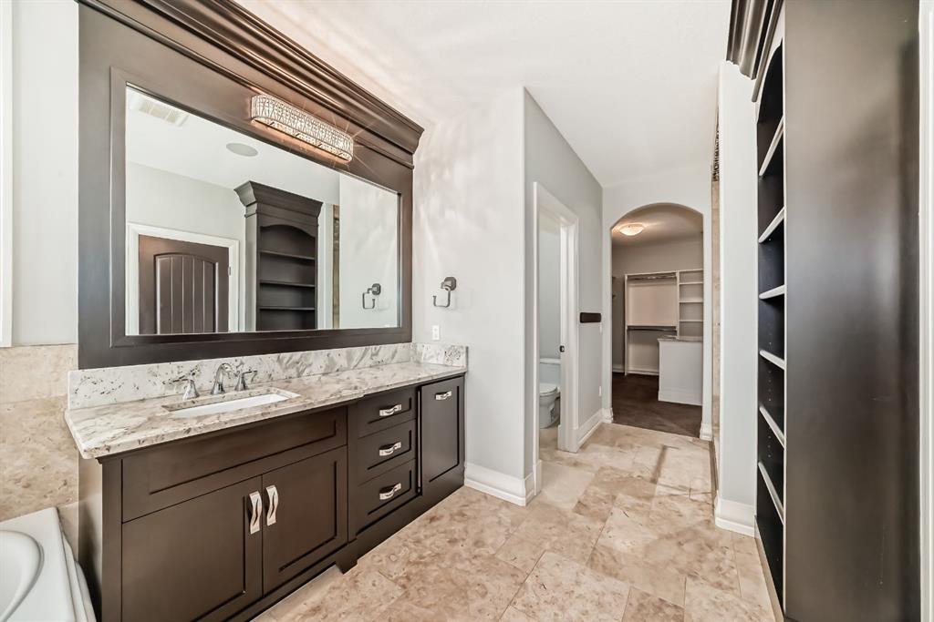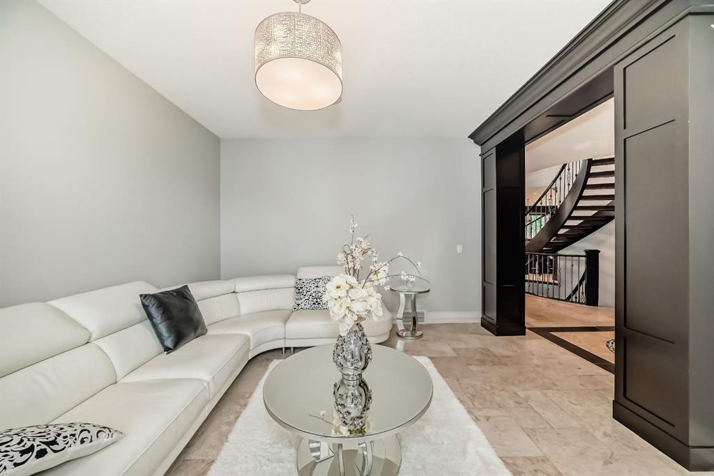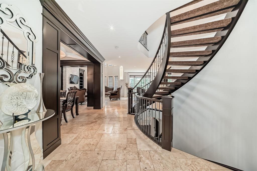 ELEGANT EXECUTIVE RESIDENCE IN ASPEN RIDGE HEATH Discover unparalleled luxury at 19 Aspen Ridge Heath, SW, where this magnificent 2016-built executive home redefines sophisticated living. From its striking curb appeal to the breathtaking interior, every detail reflects exceptional craftsmanship and design excellence. Enter through an impressive open-to-below foyer into a seamless open-concept layout that flows effortlessly throughout the main level. The space encompasses two elegant living areas, a formal dining room perfect for entertaining, and a private office for professional needs. The gourmet kitchen stands as the centerpiece with rich brown maple cabinetry, premium appliances including an oversized refrigerator-freezer and professional oven stove, quartz countertops with electric flat stove, and a substantial center island complemented by a spacious walk-in pantry. Upstairs houses four bedrooms, a bonus room and the laundry room. The Primary bedroom with a double door entry, boasts of a 6 piece ensuite and a massive walk in closet with a big island of more storage with quartz countertop. The three other bedrooms include one with a private ensuite while the other two share a common but spacious bathroom. A second spiral staircase takes you to a walk out basement with an open concept living area with a wet bar and a stainless steel bar fridge. Also included in this lovely basement is a private movie theatre and two additional bedrooms, one of which can serve as a recreation room if not required for sleeping. A back door from the walk out basement leads you to a very spacious, professional landscaped fenced yard with Sprinkler system . Additional amenities in this home includes AC units x 2, for those hot summer days. Located in Aspen Ridge, you are just minutes away from top private and public schools, great boutique shopping on 17th ave, Sw and Natural stone travertine flooring graces the entire main level, and all five bathrooms, enhanced by exquisite maple crown mouldings and baseboards that add warmth and character. Dramatic open riser staircases connect to both upper and lower levels with architectural flair. The professionally finished basement offers an entertainment haven with an open hallway leading to a generous family room, two additional bedrooms, and a private home theatre with large screen. Rich dark brown maple wood elements throughout create a cohesive design of refined elegance. This exceptional property represents the pinnacle of executive living, offering both functional excellence and aesthetic magnificence in the prestigious Aspen Ridge Heath community. Experience this remarkable residence firsthand by contacting us to arrange your private viewing at 19 Aspen Ridge Heath, SW.