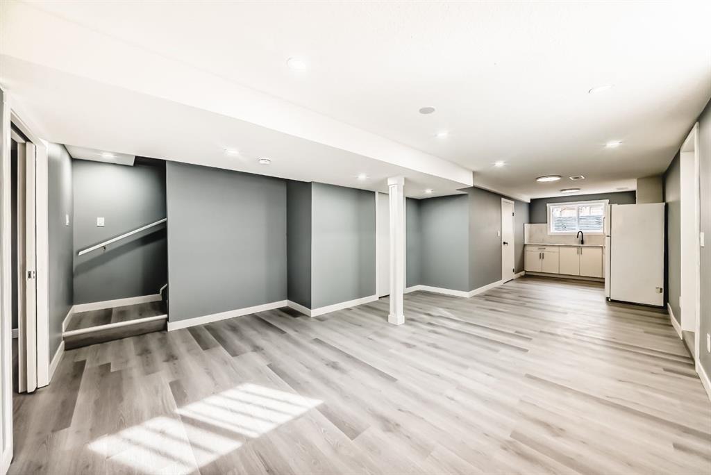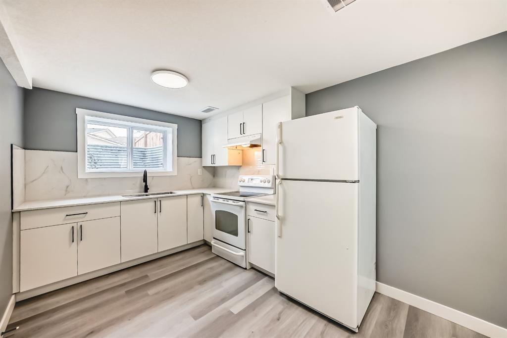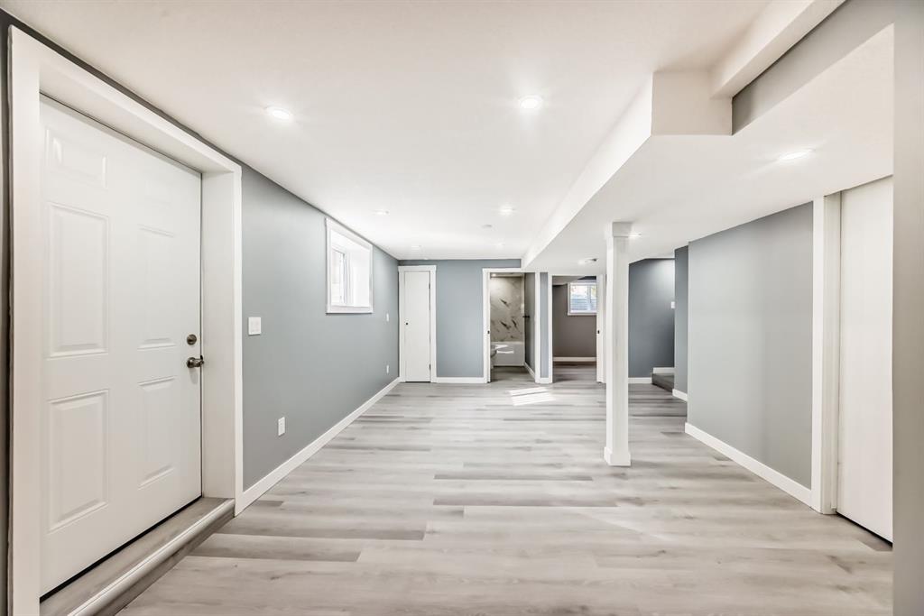 Welcome to this beautifully renovated 5-bedroom, 2-bathroom semi-detached bungalow nestled on a quiet cul-de-sac in the highly desirable community of Rundle. Offering over 1,558.6 sq. ft. of total living space with an illegal basement suite, this home perfectly combines comfort, functionality, and modern upgrades. The main floor showcases three generously sized bedrooms, a bright and inviting living room, a full bathroom, and separate laundry for added convenience. The brand-new kitchen features modern cabinetry, quartz countertops, and ample storage, creating a stylish and functional space for everyday living. The fully finished basement (illegal suite) with a separate side entrance offers excellent potential for rental income or extended family accommodation. It includes two bedrooms, a full bath, its own laundry area, and a newly updated kitchen. Extensively renovated throughout, this home boasts new kitchens with quartz countertops, bathrooms, windows, doors, baseboards, light fixtures, vinyl flooring, and closets, along with Water Tank and Furnace replaced a year ago. Step outside to a good-sized backyard with freshly laid grass, perfect for relaxing or entertaining. Ideally located near schools, playgrounds, and major amenities including Peter Lougheed Hospital, Costco, Sunridge Mall, and Village Square Leisure Centre, with easy access to Rundle LRT station just a short bus ride or 15-minute walk away. Don’t miss this incredible opportunity — schedule your private showing with your favourite REALTOR® today!