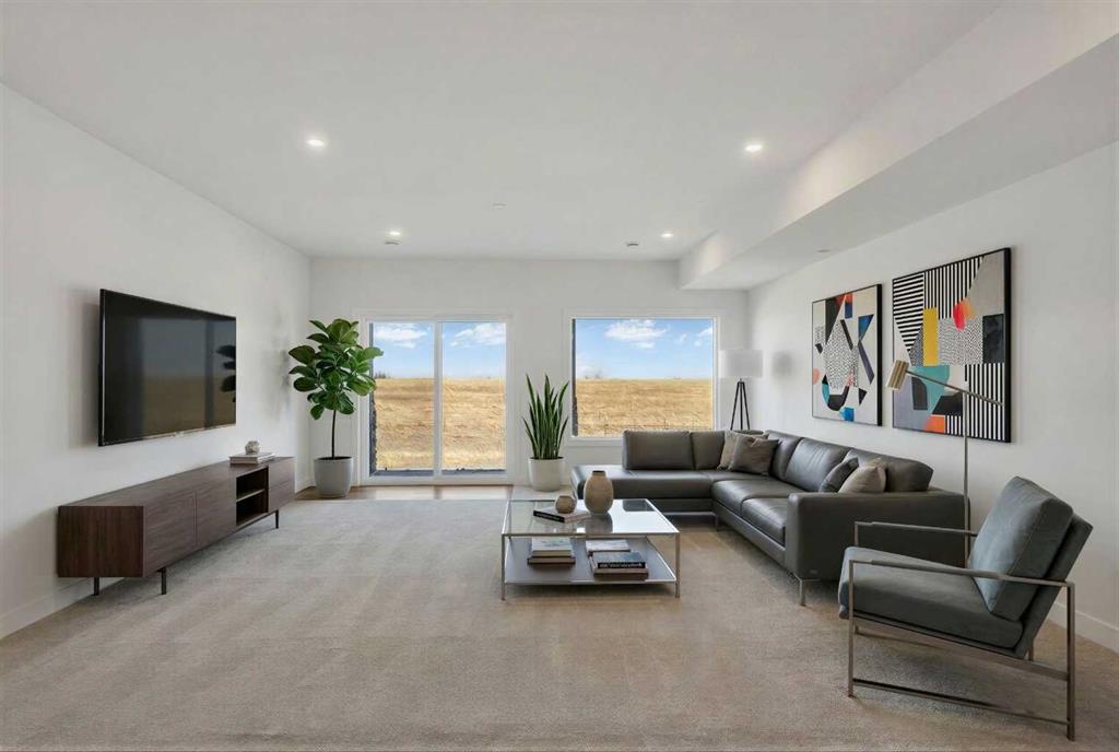 *** OPEN HOUSE SATURDAY MARCH 28, 1 -3 pm *** LARGE TRIPLE CAR GARAGE – BACKING ONTO THE CANAL – WALK-OUT BASEMENT . Welcome to 194 Muirfield Boulevard in the friendly community of the Lakes of Muirfield. This fully finished bungalow offers high end finishes with over 3,200 sq. ft. of living space on a large 53.5 x 129 lot, backing directly onto the canal with no rear neighbors. This same house in other areas can cost upwards of $200,000 to $400,000 more so the value is hard to ignore here. Some images are VIRTUALLY STAGED and may not 100% represent what is there. For this bungalow, the mainfloor and basement both offer 9 feet ceilings, knockdown ceilings and 8 foot doors on the Mainfloor. There are 2 bedrooms on the main floor and an additional third room that can be either an office or a bedroom when you add a closet or a wardrobe. The kitchen offers quartz countertops, a corner pantry, large island, and comes with an appliance allowance to choose your own appliances. The kitchen comes with a GAS COOKTOP or an induction cooktop. Adjacent to the kitchen is a bright dining area and a living room with an electric fireplace, all opening onto an extra-wide (FULL HOME WIDTH) private balcony with beautiful fairway views, perfect for relaxing or entertaining. The primary bedroom features a 5-piece ensuite with double sinks, soaker tub, separate glass upgraded shower (10 mm glass, seating area + massive tiles to the ceiling), and a walk-in closet. The finished basement includes 2 large bedrooms, a 5-piece bathroom, a huge rec room, a wet bar, and lots of storage/utility space—perfect for entertaining or extended family. The triple front-attached garage (nearly 29' 1" x 26' 5") is drywalled and insulated, with lots of room for vehicles, even your large trucks and tools. The wide driveway provides even more parking. The exterior is high quality stucco, exposed aggregate concrete driveway and steps. All premium features that are usually big upgrades in other communities. The other nice thing about this location is that you’re not going to be surrounded by more construction and can enjoy your home more peacefully. A rare chance to own a new, move-in-ready bungalow surrounded by the golf course in a quiet, secure community. Book your showing today!
