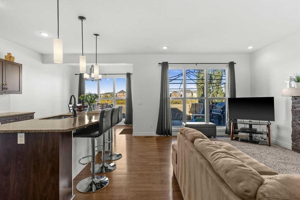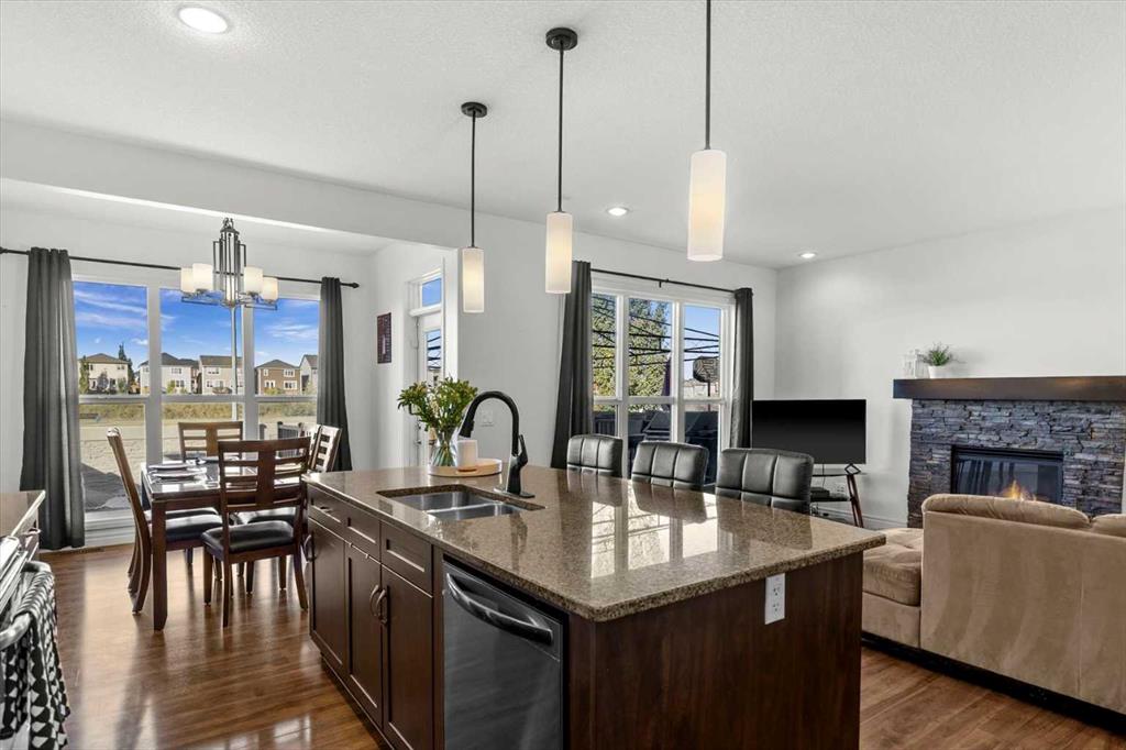 Welcome to 195 Hillcrest Circle SW — a custom-built Trico home offering 3 Bed, 2.5 Bath and nearly 2,000 sq ft of refined living space in Airdrie’s desirable Hillcrest community. The "Huntington" a distinguished executive home, blends thoughtful design, quality craftsmanship, and a lifestyle made for both quiet family moments and elegant entertaining. Step into an open-concept main floor where natural light pours in, highlighting the chef-inspired kitchen with rich cabinetry, granite countertops, a central island & eating bar with pendant lighting, has a seamless flow to the dining and living areas. A striking stone-surround fireplace creates a cozy anchor for evening gatherings, while expansive windows frame views of the west-facing backyard. Host unforgettable dinner parties, then unwind on your private deck under the setting sun with a glass of wine. Laugh with friends around the firepit while the kids play freely in the spacious, fenced yard — a perfect setting for memory-making. Upstairs, retreat to your primary suite sanctuary featuring a spa-inspired 5-piece ensuite with soaker tub, walk-in shower, and dual sinks. Two additional bedrooms, an upper laundry room, and full bath complete the second level. The undeveloped basement with rough-in plumbing awaits your personal touch; and a large over-sized garage. Enjoy an active lifestyle with nearby walking trails, off-leash dog areas, and the Hillcrest Green playground just steps away. With excellent schools, shopping, dining, and commuter routes close by, this is more than a home — it’s a distinguished lifestyle in one of Airdrie’s most walkable and connected communities.