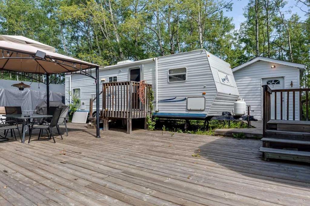 If you’ve been dreaming of an easy getaway or a quiet family retreat, this property at 2 Ridge Drive might be just what you’ve been waiting for. Located only 35 minutes from Red Deer, about 2 hours from Calgary and 1.5 hours to Edmonton, it offers an ideal escape from the city without the long drive. Set on a .47-acre corner lot just across the street from the Gull Lake Golf Course, and within walking or short driving distance to Gull Lake itself, the location provides the perfect balance of peace, recreation, and convenience. Currently set up with two serviced RV sites (allowing ease for your company), the property also features a well-appointed bathhouse complete with sink, toilet, shower, and washer/dryer—making extended stays comfortable and practical. A private well and septic holding tank are already in place. Treed on two sides for added privacy, the lot is ready for both quiet relaxation and summer fun. Included in the sale is a 2002 Jayco 30-foot RV, along with a deck, canvas garage, riding mower, and storage shed, offering everything you need to start enjoying the space right away. With quick access to the communities of Rimbey, Bentley, and Sylvan Lake, this property is well situated for both weekend getaways and longer stays. Whether you’re looking to spend your days golfing, heading to the lake, or simply unwinding in your own private space, this property offers a ready-made opportunity to enjoy lake life in Central Alberta.