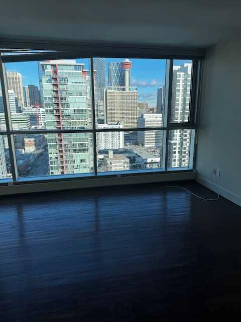 Perched high above the city, this two-storey penthouse delivers breathtaking urban views, including a front-row seat to the Calgary Tower. With over 1,200 square feet of thoughtfully designed space, this home blends architectural drama with everyday livability. The main level is anchored by polished concrete floors and an open-concept layout that offers flexibility for how you live — whether that’s a dedicated home office, a secondary living area, or a creative flex space. A double-height dining area steals the show, framed by expansive windows that stretch upward and flood the space with natural light. The kitchen is both sleek and functional, featuring stainless steel appliances, stone countertops, and clean, modern lines. A two-piece powder room completes this level. Upstairs, wake up — and fall asleep — to wide-open city views. The primary retreat features a spa-inspired ensuite with steam shower, soaker tub, and in-floor heating, creating a true urban sanctuary. This level also offers a built-in desk nook, a generous walk-in closet, and an impressively sized laundry room. Additional storage is cleverly tucked away beneath the stairs. A rare and highly valued feature: tandem parking, making downtown living that much easier. Location is where this home truly shines. Set in the heart of Victoria Park, within the iconic CHOCOLATE condo building, this one bedroom plus den residence is surrounded by floor-to-ceiling windows that let sunlight pour in while you work, relax, or entertain. On warm Calgary days, central air conditioning keeps things perfectly comfortable. With a Walk Score of 92, you’re steps from downtown, the entertainment district, the Red Mile, and major commuter routes — giving you the freedom to live exactly how you want. The Calgary condo market is offering exceptional value, making this not only a stylish place to live, but a smart long-term investment to hold onto.