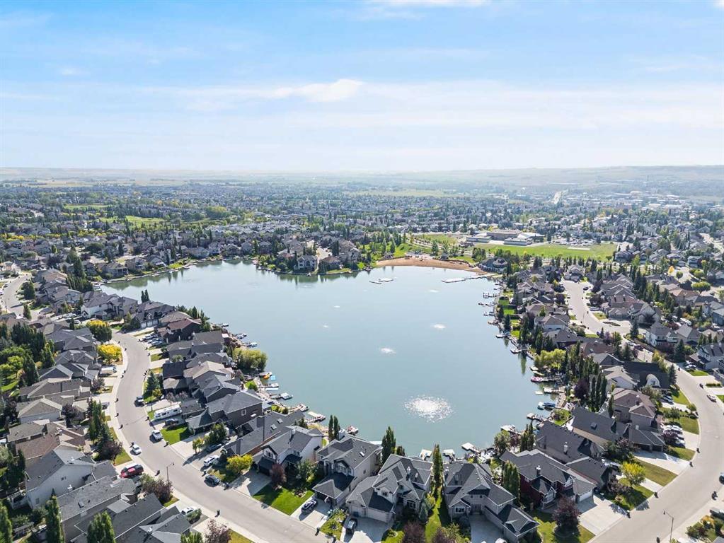 This beautifully maintained 3-bedroom home offers over 2,200 sqft of finished living space with an incredibly functional floor plan and a fully developed basement. Recent updates include FRESH PAINT THROUGHOUT, NEW CARPET, AIR CONDITIONING, and ENGINEERED HARDWOOD FLOORING, creating a clean, move-in-ready home that stands out from the crowd. Located near the entrance of the community in a QUIET POCKET WITH NO THROUGH TRAFFIC, the home BACKS ONTO GREEN SPACE & WALKING TRAILS—offering rare privacy and sought-after LAKE PRIVILEGES in a well-connected, amenity-rich area. The main level features an open-concept design with a bright and spacious kitchen offering NEWER APPLIANCES, island seating, and a large pantry. The dining and living areas flow naturally and include a GAS FIREPLACE and updated lighting. As a corner unit, the home is filled with natural light. Upstairs, you’ll find 3 bedrooms, including the primary suite with a 4-piece ensuite and room for a king-sized bed. A large bonus room offers flexibility for a media room or office. The developed basement includes a 2-piece bathroom, additional living space, and generous storage. Outdoor features include a two-tier deck with a privacy wall and enclosed storage below it. The landscaped yard is designed for low maintenance and features underground sprinklers, as well as direct access to the adjacent green space. Additional upgrades: new roof with drip edge (2017), newer hot water tank, newer washer and dryer, Hunter Douglas blinds, heated flooring in the 1/2 bath, and pre-wired for a future hot tub.