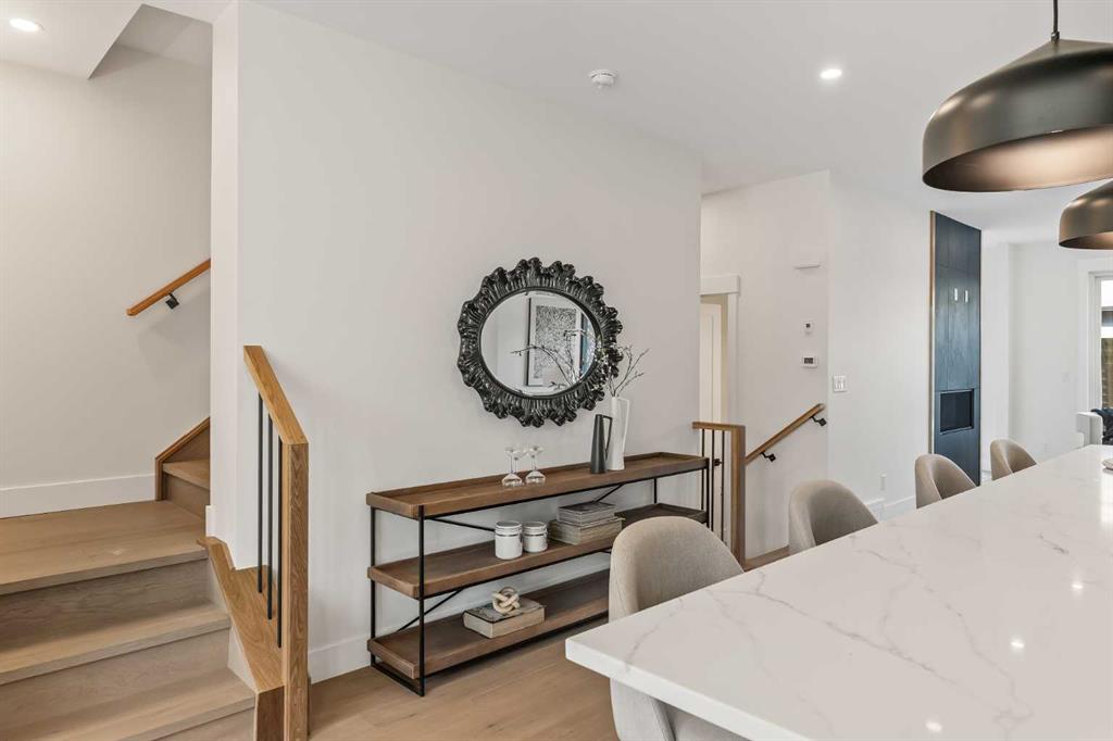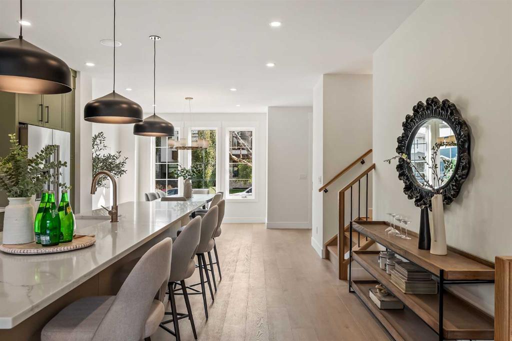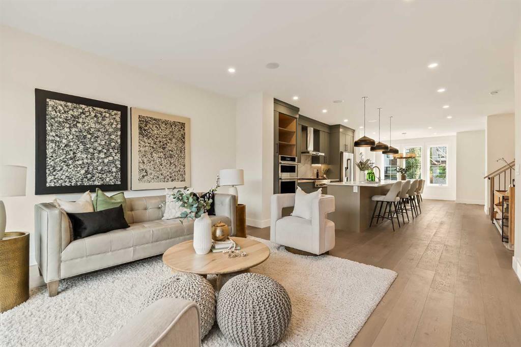 New Pricing! Proudly presenting a stunning urban-inspired masterpiece in coveted Killarney. Thoughtfully designed & impeccably crafted, this three-story residence offers nearly 3650 SF of refined living space. The main floor showcases striking architectural details, including white oak hardwood floors, custom-milled cabinetry, oak & metal railings, & expansive windows that bathe the interior in natural light. The kitchen stands as a true showpiece featuring bespoke cabinetry with undermount lighting, exquisite quartz slab countertops & backsplash, premium JennAir appliances, Silgranit sink, & a impressive 12-foot island with seating for five. In the living area, a handsome floor-to-ceiling fireplace surround, & 8-foot garden doors make a bold yet sophisticated statement while white oak hardwood, mullioned windows, & an inviting dining area further elevate the curated, light-filled main floor. Completing the level is a convenient mudroom with built-ins & a pretty powder room. The gorgeous oak hardwood continues to the second level where the centrally situated bonus room is flanked by two distinguished bedrooms, each boasting its own ensuite with custom vanities, quartz counters, & beautifully tiled showers with glass doors while spacious walk-in closets with built-ins & large windows enhance the comfort & appeal of these inviting retreats. The third level is a sanctuary of elegance and comfort. The airy primary suite is flooded with natural light & features expansive sliding doors to a private balcony perfect for enjoying quiet morning coffee from the convenient beverage centre. The stunning ensuite exudes spa-like luxury with double custom oak vanities & refined quartz countertops, a dramatic steam shower, in-floor heating, & an opulent stand-alone waterfall tub. Completing this exceptional level is a considerable walk-in closet with extensive custom millwork. The professionally developed lower level delivers 900 SF of living space built with the same attention to detail. Providing a spacious family room, wet bar, fitness area, 4th bedroom with walk-in closet, & 5th bathroom this additional level makes an ideal area for entertaining or accommodating family members & guests. Equally impressive is the extraordinary curb appeal displaying genuine brick accents, James Hardie board cladding, acrylic stucco, mullioned windows, & an aggregate patio. The quiet West-facing backyard offers a tranquil setting perfect for children at play, summer barbecues, or simply unwinding at the end of the day. Other notable highlights of this remarkable residence include a double insulated & drywalled garage, Ply Gem windows with 2-year warranty, Delta fixtures, & 200-amp electrical panel. Situated close to parks, shopping, schools, transit, & the vibrant amenities of 17th Ave, this extraordinary property delivers a beautiful lifestyle in an excellent Killarney location. Welcome home to 2013–34 St SW where exceptional design meets timeless luxury.