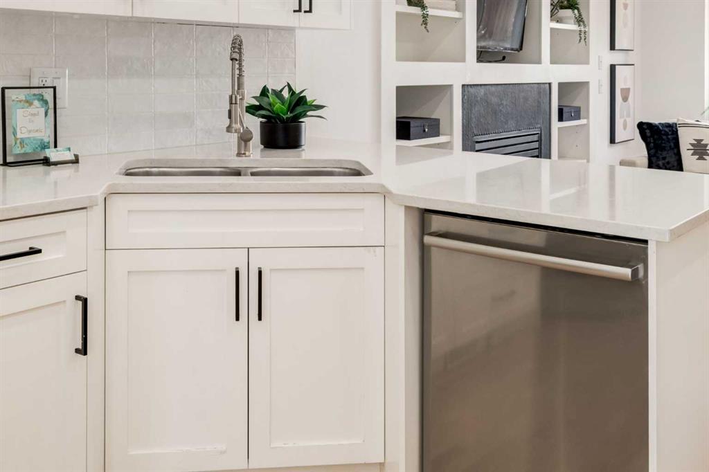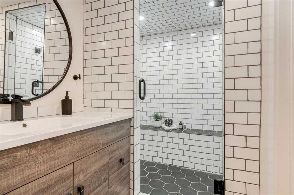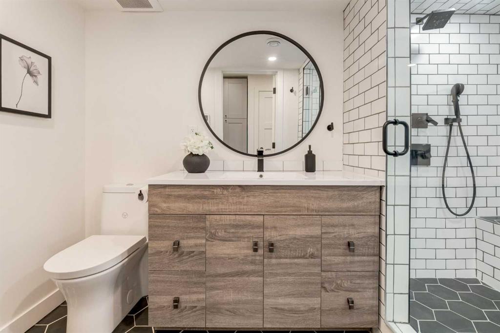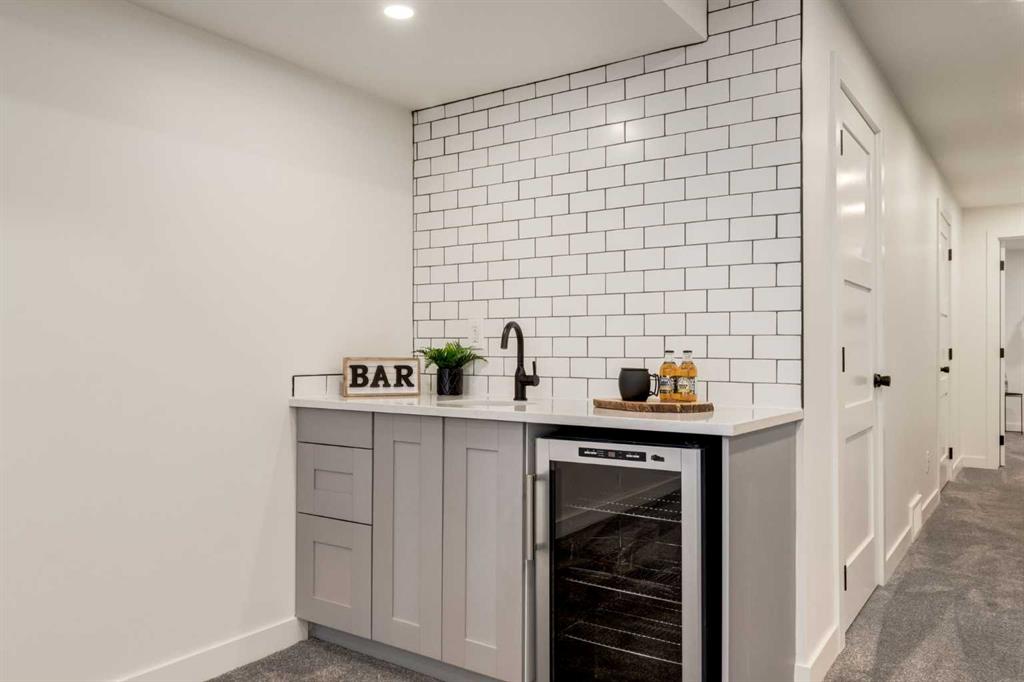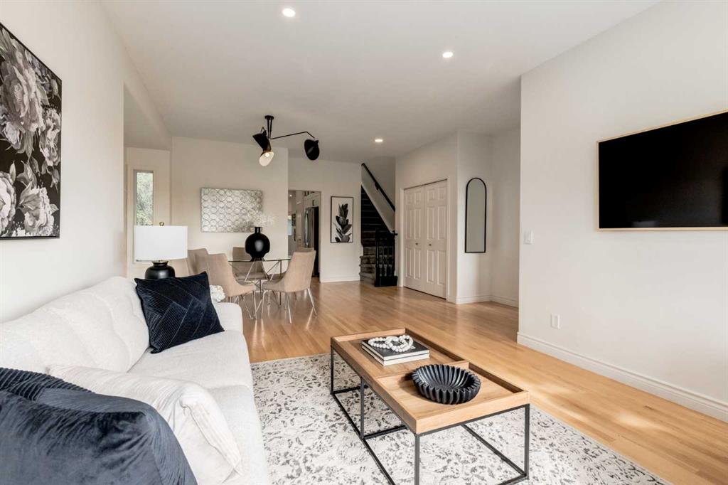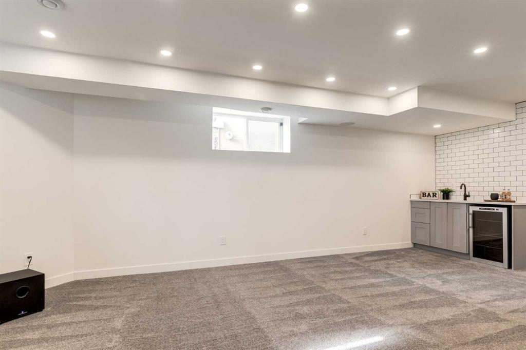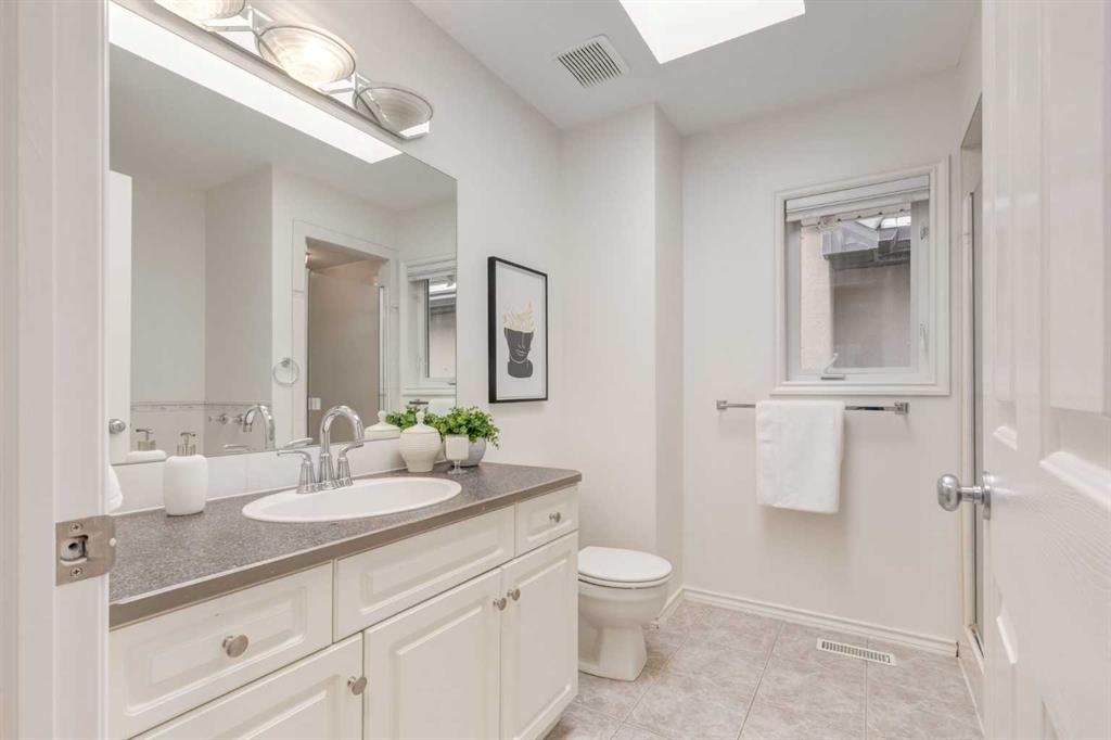 Front-row views across from a sprawling soccer field with sweeping vistas of the Bow River and Calgary’s West End skyline. This detached home offers exceptional curb appeal and meticulous landscaping front and back — featuring synthetic grass, natural boulders, and a sunny south-facing front patio with gas fire pit. Inside, you’ll find a bright and spacious layout that shows like new. The front living and dining rooms are bathed in natural light and finished with onsite hardwood, fresh white paint, and stylish lighting. The renovated kitchen boasts quartz counters, quality cabinetry, and an upgraded appliance package. A cozy rear family room with gas fireplace and built-ins opens to the backyard and double garage. The newly finished lower level impresses with high ceilings, large above-grade windows, a sprawling rec room, with a corner gas fireplace and wet bar. There is an elegant full bath, and a spacious bedroom. With a total of 4 bedrooms and 3.5 baths, the upper level showcases a primary suite with skyline views, dual closets, and a sitting nook. Fresh paint, new carpet, upper laundry, skylight, and built-in speakers complete this standout home — steps to Kensington, parks, cafes, and the river pathways.