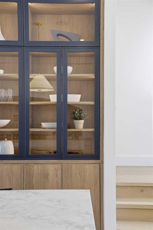 This three-storey home feels like it was pulled from the streets of Paris and planted in the heart of Calgary, just steps to Marda Loop, skyline views from the top floor, and every detail designed to make you never want to leave. The exterior sets the tone: French transitional style with timeless mouldings, arched windows, and proportions that just feel right. Inside, it's all soft curves, high ceilings, and French-inspired finishes that manage to be both romantic and livable. The kitchen is where you'll spend your most of your time. A 14-foot quartz island with dual-sided storage anchors the room; functional, surrounded by premium oversized appliances that make you want to cook. On the other side, custom built-in display with glass windows and LEDs to show off your fancy dinnerware. Pot filler, spice racks, open shelving, quartz backsplash. The custom arched hood fan is finished in Venetian plaster, adding texture and depth you don't see in most new builds. The butler's pantry with sink and cabinetry keeps the mess out of sight, while the mudroom with built-ins handles daily life seamlessly. Warm cabinetry gives the whole space personality and warmth. The arched window floods the home with natural light into the dinning area. A living room with a Venetian plaster fireplace surround. Step outside to a turfed backyard and composite deck that is beautiful, low-maintenance, ready for summer dinners, morning coffee, or quiet evenings under the stars. Upstairs, the primary suite is your private retreat. Wake up to soft light and city views, then step into a spa-like ensuite with dual vanities, arched mirror details, custom plaster finishes, in-floor heat, and tilework that was thoughtfully designed. The shower is a showstopper with multi-integrated tiles and quartz jamb, straight out of a design magazine. Sit on the bench and enjoy the steam shower. The secondary bedrooms are generously sized with walk-in closets, and the shared bathroom with in-floor heat blends French-inspired design with everyday practicality, dual vanities. The third floor is where this home earns its reputation. A rooftop lounge with another beautiful gas fireplace, opening onto a patio with sweeping downtown views. The kind of space you'll use constantly, not just on special occasions. The custom wet bar features brass tipping rails, glass shelving with LED lighting, and finishes that feel refined but never stuffy. The basement expands the living space even further: a huge guest bedroom/rec room or gym, full bathroom, extra storage, heated floor and heated driveway rough-ins for future comfort. Epoxy-finished heated garage with built-in speakers. Central A/C. Full security system. Integrated sound. Front and back landscaping designed so you're not spending weekends on yard work. Minutes from cafés, shops, and downtown Calgary, but it feels like its own world. European charm, thoughtful craftsmanship, and design that doesn't age. Elegant, functional, effortlessly beautiful. This is the one!