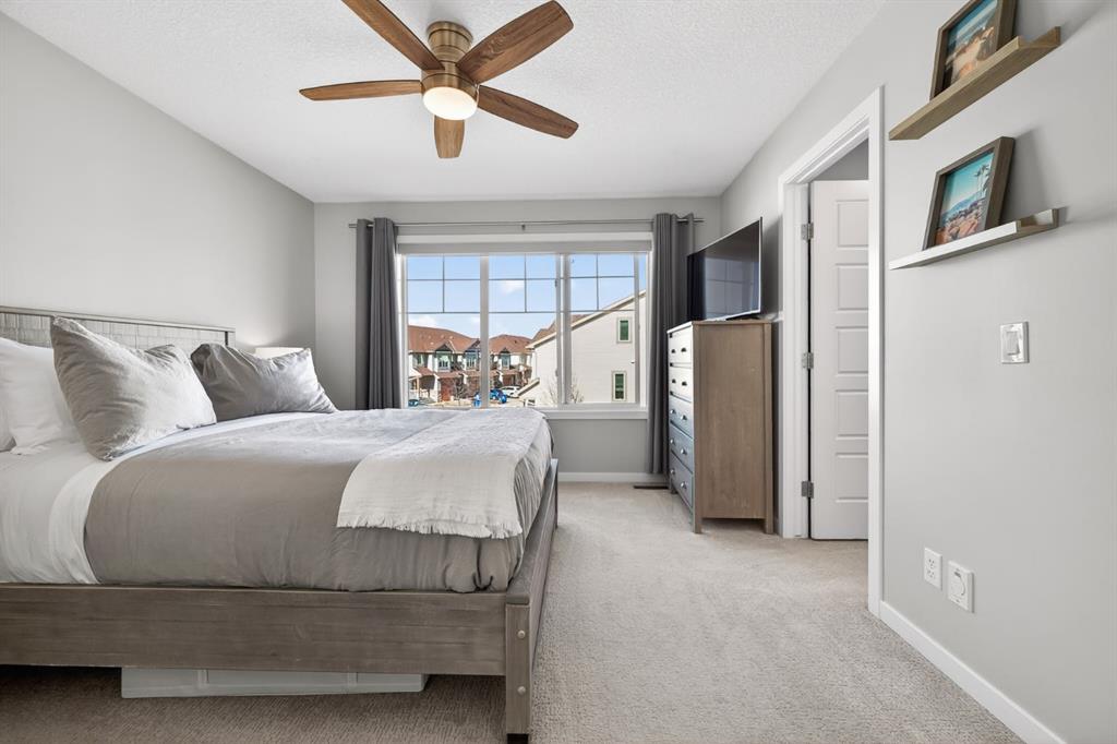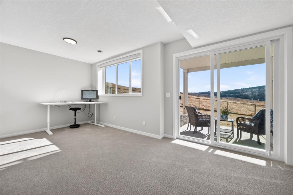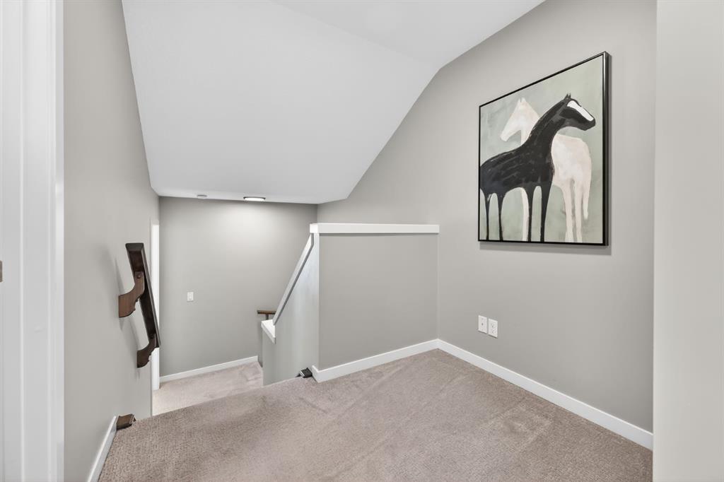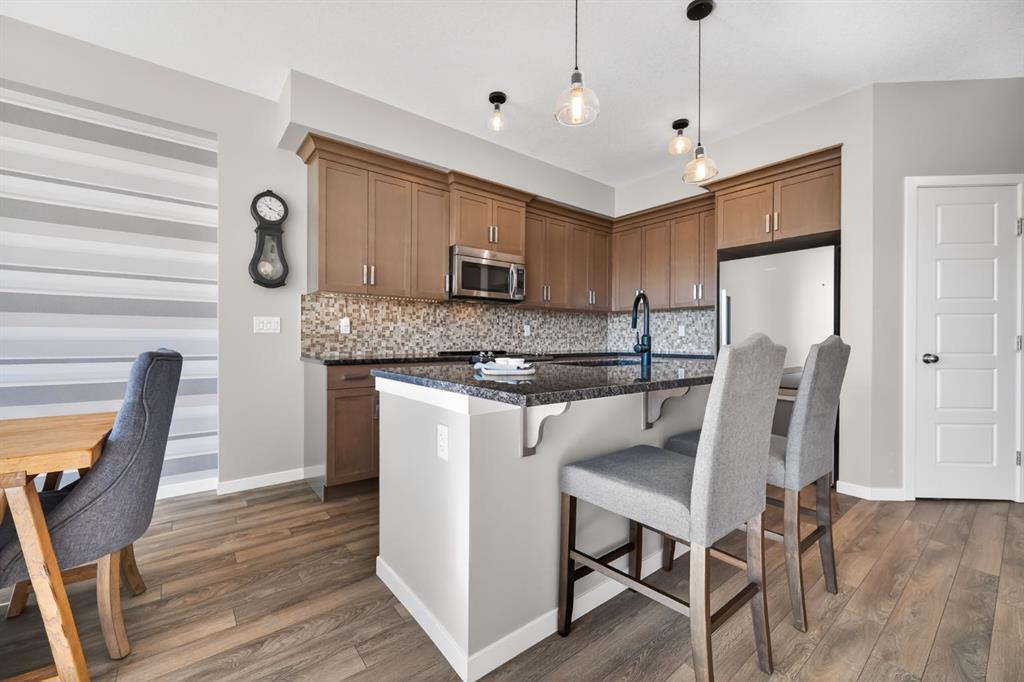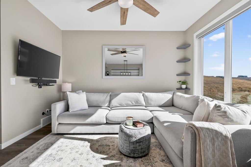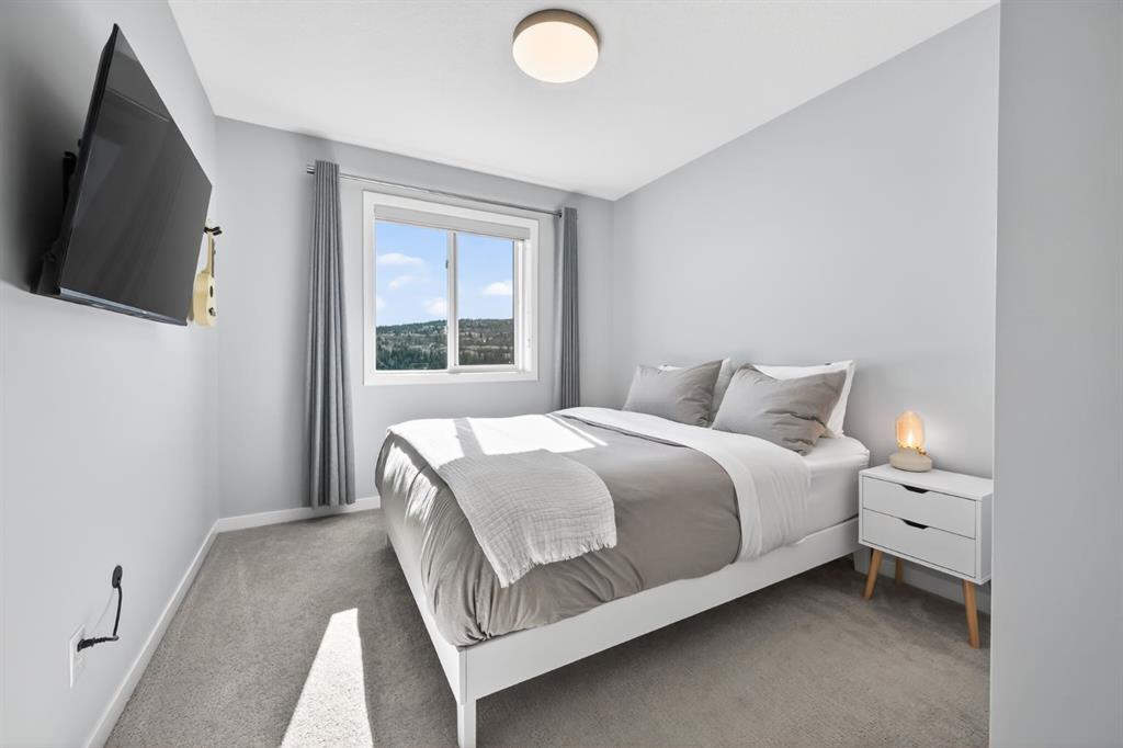 Welcome to 205 Sunset Point in beautiful Cochrane, Alberta. This is hands-down one of the best locations in the complex—tucked at the end of a quiet cul-de-sac with no through traffic, backing directly onto a stunning ravine with forest, rolling hills, and wildlife, plus private gated access to walking trails right out your door. Built by Calbridge and meticulously maintained, this 3 bed, 3.5 bath townhouse is move-in ready with the added confidence of an extended structural warranty until Feb 2027. Inside, you’ll find a bright, open feel with 9’ ceilings, large windows, neutral tones, and a spacious layout. The kitchen is a standout—featuring granite countertops, full-height cabinets with crown moulding, mosaic backsplash, Silgranite sink, pantry, island with breakfast bar, and newer stainless steel appliances (including a new fridge). The dining nook opens to your upper deck with Duradeck, glass railing, and privacy wall—perfect for taking in those unobstructed views. Upstairs offers three generous bedrooms, with 2 overlooking the ravine, plus a full bath and convenient laundry (with newer dryer). The primary suite sits on its own level for added privacy, complete with partial mountain views, a large walk-in closet with window, and a 4-piece ensuite with granite and tile finishes. The newly developed walkout basement (2025) adds incredible value—featuring a spacious rec room, 4-piece bath with heated floors, and direct access to a relaxing lower patio, all with continued views of the natural surroundings. You’ll also appreciate the new high-efficiency furnace and hot water tank. Additional highlights: Low condo fees, Single attached garage, Built-in vac rough-in, Extremely clean, pride of ownership throughout. This home offers a rare mix of privacy, views, upgrades, and location—all in a well-managed complex. Opportunities like this are few and far between. Don’t miss your chance to own one of the best units here.