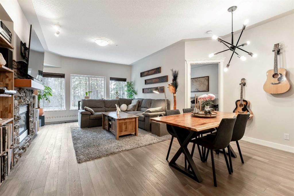 Aaaahhhh… Waking up slowly this morning… the fresh breeze & unmistakable scent of the forest as a young whitetail strolls by with her fawns… sparrows singing in the background… camping is bliss… Wait a minute… you just realized you aren’t camping… you just woke up in bed at home, the window is open, & this is your new reality ;) **WELCOME HOME!** This Updated & Beautifully maintained unit is all about LOCATION LOCATION LOCATION & WOW... THE VIEW!! Nestled in the PERFECT SPOT backing directly onto GRIFFITH WOODS with Unbelievable FOREST VIEWS, this lovely home boasts nearly 1050ft of Rustic appeal & thoughtfully designed living space, offering a bright, open concept floor plan with 9’ ceilings, Large WINDOWS & recently NEW ENGINEERED HARDWOOD Flooring! The stylish & functional layout flows seamlessly from the CHEF’S Kitchen with eat-up breakfast bar, open to the inviting dining area & living room with cozy STONE GAS FIREPLACE feature & a front row seat to the natural scenic surroundings of GRIFFITH WOODS PARK! A Spacious Master Retreat complete with PRIVATE ENSUITE, 2nd Bedroom, additional 2nd Full Bath & In-Suite laundry with built-in STORAGE complete the interior of this TURN-KEY GEM! Step outside onto your private balcony, where the forest is your backdrop & the wildlife are your closest neighbors - an ideal space for BBQs, entertaining friends & family, or simply unwinding & reconnecting with nature! Located in a well-managed, pet-friendly complex (with board approval), enjoy Peaceful Pathways with the River & Ravine directly behind the complex. This unit also includes titled underground heated parking & access to fantastic amenities including a fitness room, social events, & access to the Discovery Ridge Community Association, offering tennis courts, soccer fields, skating rink, & more! Discovery Ridge is loved for its peaceful atmosphere, stunning natural surroundings, & strong sense of community—perfectly blending nature-focused living & outdoor adventure with modern conveniences, all just a short scenic drive to the mountains. Enjoy endless outdoor activities right outside your front door including hiking, biking, birdwatching, or take a leisurely stroll along the Elbow River! Simply move in & enjoy everything that living at The Wedgewoods in Discovery Ridge has to offer!