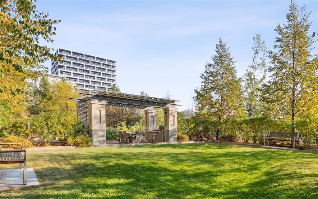 Tired of the Concrete Jungle? Experience urban living at its finest in this exceptional courtyard-level condo with direct access to a stunning garden sanctuary. This inviting 2 bedroom, 2 bathroom home offers the perfect blend of city convenience and serene tranquility. Imagine hosting al fresco dinners with friends, tending to your favourite plants, or simply unwinding with a good book in your peaceful outdoor oasis. Inside, you'll discover a thoughtfully designed open-concept layout featuring soaring 9-foot ceilings, elegant quartz countertops, and a gourmet kitchen equipped with top-of-the-line appliances, including a gas cooktop and built-in oven. Retreat to your primary bedroom – a spacious sanctuary with ample room for a king-sized bed, a well-appointed 4-piece ensuite, and an abundance of closet space. The generously sized second bedroom offers versatility as a guest suite or comfortable home office. Rest easy knowing your vehicle is secure in the titled underground parking stall, protected from the elements year-round. Plus, enjoy the convenience of a separate storage unit to keep your belongings organized and easily accessible. This pet-friendly building offers fantastic amenities including a fitness room, party room, bike storage, and community gardens. Immerse yourself in Bridgeland's vibrant cultural scene with easy access to shops, cafes, and restaurants. And when you need a dose of nature, escape to nearby parks, the Bow River pathway, or your own private courtyard patio. More than just a condo, this is an urban sanctuary where you can embrace the best of both worlds. Live effortlessly, work efficiently, and recharge in nature – all from this exceptional Bridgeland address. Be sure to check out the virtual tour!