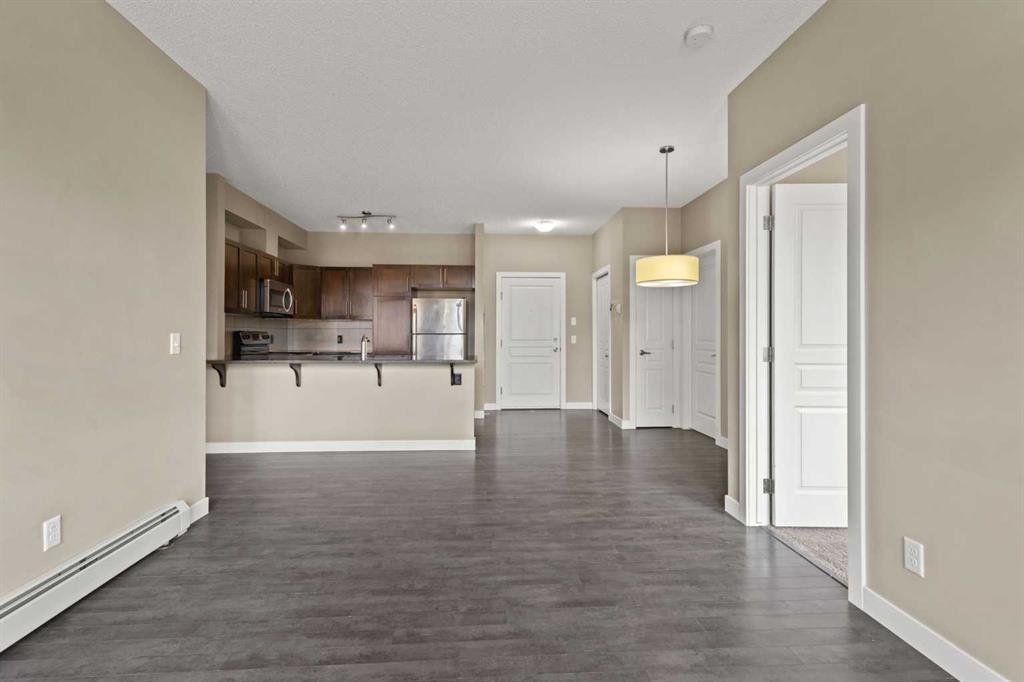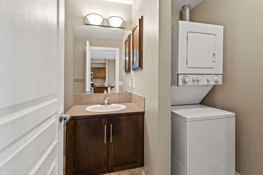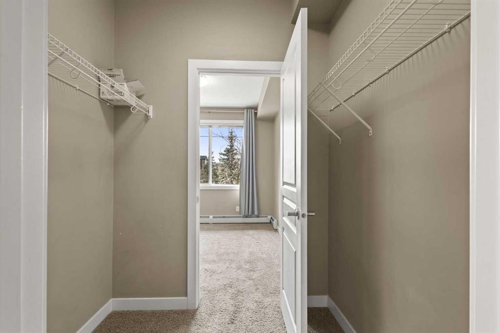 Discover the beautiful Milano complex in the sought-after NW community of Panorama Hills. This well-maintained unit offers over 750 sq ft of living space, featuring 2 bedrooms, 2 full bathrooms, and a secure underground parking stall. Step inside to an inviting open-concept layout highlighted by stylish laminate flooring. Large west-facing windows fill the space with natural light, creating a warm and welcoming atmosphere. The modern kitchen showcases dark wood cabinetry, granite countertops, a convenient island with breakfast bar, and stainless-steel appliances, perfect for both everyday living and entertaining. The spacious living room opens onto a private balcony, ideal for enjoying your morning coffee or unwinding in the evening. Both bedrooms are generously sized with large windows, including the primary suite, which features a walk-through closet with organizers and a 4-piece ensuite. A second full bathroom and in-suite laundry add to the home’s functionality and comfort. This unit also includes titled, secure underground parking and an assigned storage locker. Ideally located close to shopping, restaurants, schools, parks, playgrounds, and public transit, this home offers both convenience and lifestyle. Whether you're looking for a place to call home or a smart investment opportunity, this property delivers. Book your private showing today!