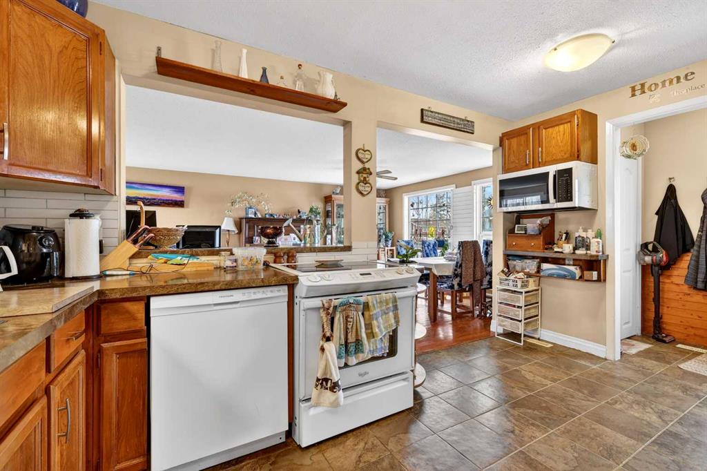 So much opportunity in this charming 5 bedroom home with good bones situated on an impressive .28 acres in desirable Langdon. Built in 1947 this home is ready for your design ideas and a little sweat equity to create your unique character dream home or maybe a house flip. The main floor is open and bright with a generous living room room & dining area that are open to the kitchen. There are 2 bedrooms located on this level including a nice sized primary with a walk -in closet. Both rooms have large windows for an abundance of natural light and they share the main bathroom. Upstairs you’ll find two more bedrooms. The sloped ceilings in these rooms are so charming making these rooms feel cozy and full of potential. There is hardwood flooring throughout this level and each bedroom has its own closet. You can access the huge upper deck from here. This is the perfect blank canvas to create a dreamy outdoor oasis where you can enjoy your peaceful surroundings. There is still more room in the finished basement where you’ll find a 5th bedroom, 3 pc ensuite bath, spacious recreation area and plenty of storage. This home is on a well so you won’t need to worry about paying for a monthly water bill. The shingles are 2 years old and there are newer appliances in the kitchen. This prime property offers endless opportunities for development - build your dream garage or shop, park your RV and other toys. You’ll also enjoy a large front deck, a second one off the back of the home and the shed is included. Don’t miss the opportunity to build equity and turn your vision into a reality with this great property.