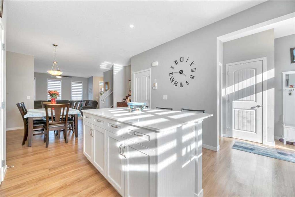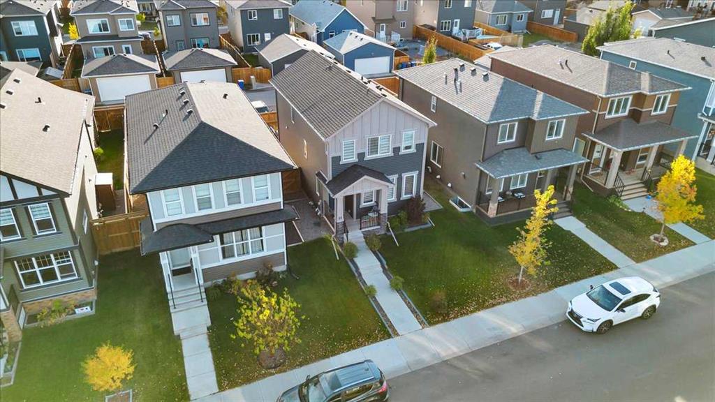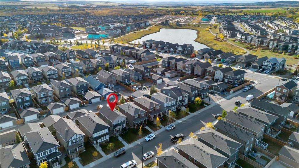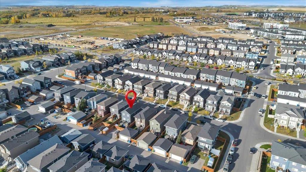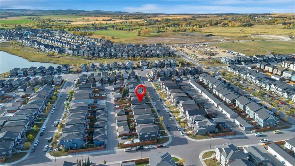 ** Open House - SAT, Oct 11 1:00-4:00 ** This is a warm and bright home at the doorstep of the Rockies in the sought-after D’arcy Ranch community. The open but sectioned layout allows you to maximize and personalize the space. Situated on a wide lot with breathtaking mountain views from the two bedrooms. The south-facing backyard and large windows provide all-day sun and natural light throughout. You are invited in by the cozy, covered porch and foyer, to the big and open main floor with 9-foot ceilings, living space, dining room, kitchen with a pantry, front and back closets, and tucked-away half-bath and mudroom. Sparkling quartz countertops, modern cabinets, and high-end stainless steel appliances create a clean and attractive kitchen space with a central oversized island. Upstairs is a large primary bedroom with a double-vanity ensuite and walk-in closet. Separating the primary from well-sized second and third bedrooms is a 4-piece bath and convenient upstairs laundry space. The basement features 9-foot ceilings, bathroom rough-in, egress window, and dedicated utility corner. At the back, you will find a nice-sized deck, private yard, and large double parking space accessed from a paved alley. Upgrades include kitchen appliances, window coverings (blackout in bedrooms), luxury vinyl flooring, and fencing. D'arcy Ranch offers more than a better lifestyle. This community is the first to have a safe-route network separating pedestrian travel from main roads. Nearby are multiple highly rated schools, including a private school now taking applications, and a high school with well-recognised French, arts, and trades programs. There is direct access to HWY 2A to beat the rush to Calgary. The new and expansive shopping district is within walking distance. The scenic walking trail around the pond, free seasonal ice rink, multiple playgrounds, fitness parks, and new pickle-ball courts are sure to keep you busy. Not to mention the 18-hole D'acry Ranch Golf Club out your back door.