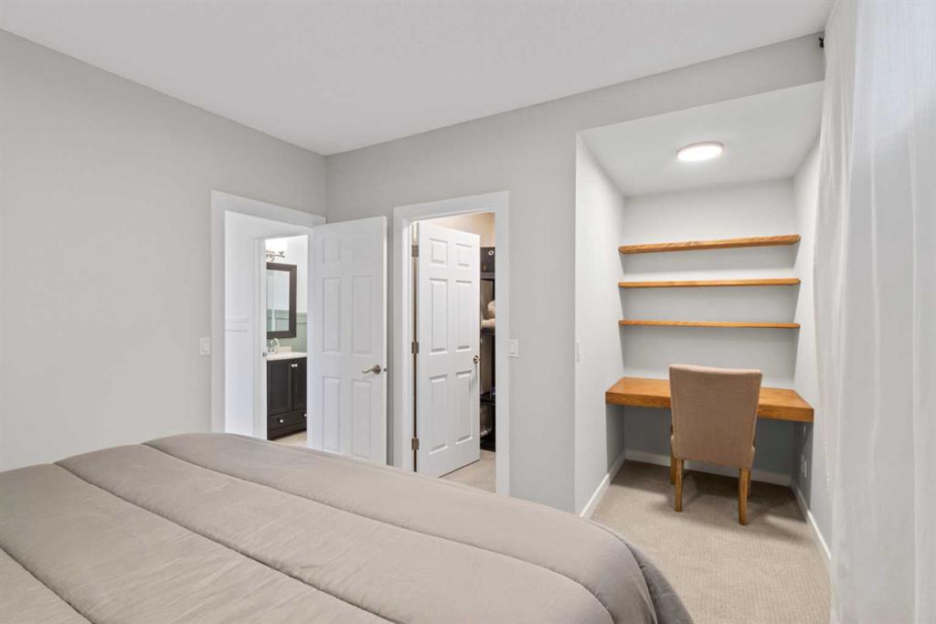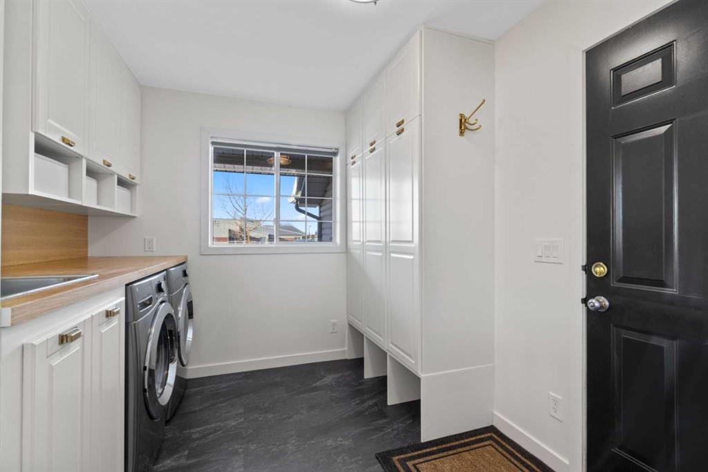 Located on a quarter acre lot in the heart of Langdon, this beautifully crafted bungalow offers space, comfort, and timeless character in a walkable, family-friendly setting close to schools and everyday shopping. A charming wrap-around porch welcomes you home and sets the tone for the quality and warmth found throughout. The main floor features a very open and inviting floorplan, ideal for both daily living and entertaining. The spacious living room is anchored by a cozy gas fireplace and enhanced by a large bay window that overlooks the expansive backyard. The kitchen is thoughtfully designed with abundant dark cabinetry, ample counter space, stainless steel appliances, a built-in pantry, and a central island with a raised breakfast bar. Adjacent to the kitchen is a sunny dining nook with another bay window, filling the space with natural light and offering lovely backyard views. Three well-appointed bedrooms are located on the main level, including a large primary suite complete with a walk-in closet and a private three-piece ensuite bath. While the other 2 bedrooms are steps away from the 4 piece bathroom and a dedicated laundry room offers excellent storage and a convenient utility sink. Rich wood flooring, custom built-ins, and detailed woodwork throughout the main level add warmth and character to the home. The lower level offers endless possibility and is developed with a large family room, two additional bedrooms, a den / play area and a three-piece bathroom. Outside, the oversized lot truly shines. The extra-long driveway easily accommodates multiple vehicles or an RV. The backyard is expansive and well equipped with a deck, pergola, two storage sheds, and plenty of room for kids, pets, or future landscaping ideas. This is a rare opportunity to own a spacious bungalow with classic craftsmanship, incredible outdoor space, and a prime Langdon location.