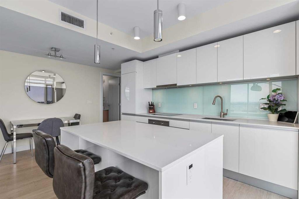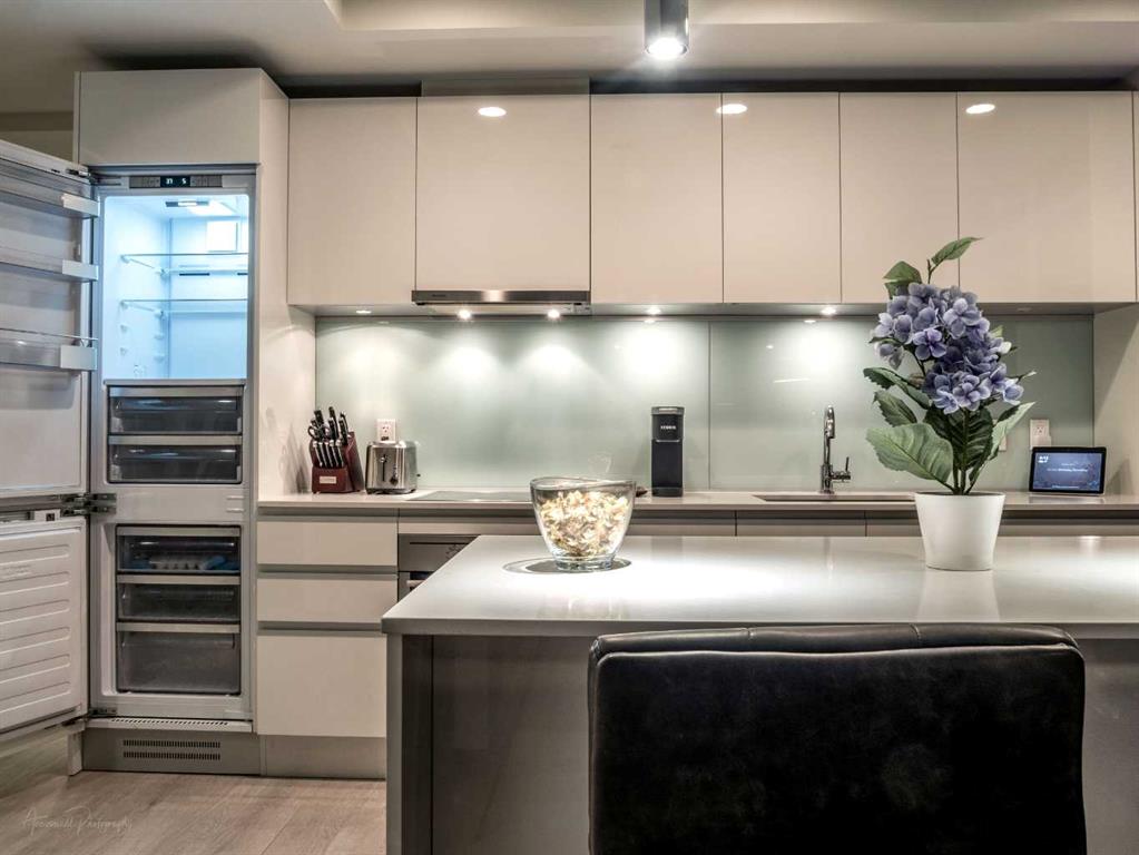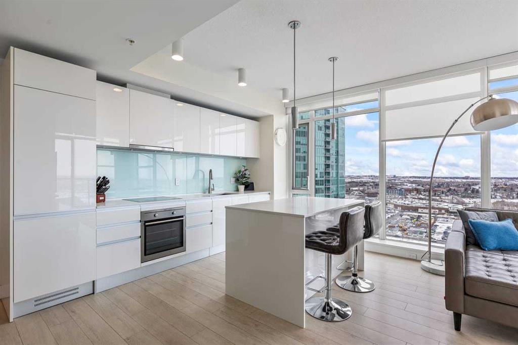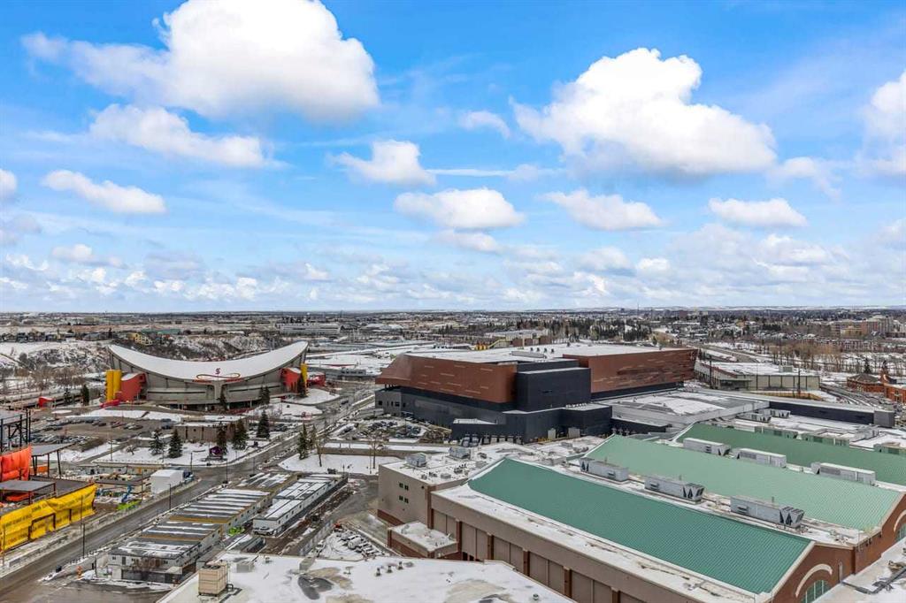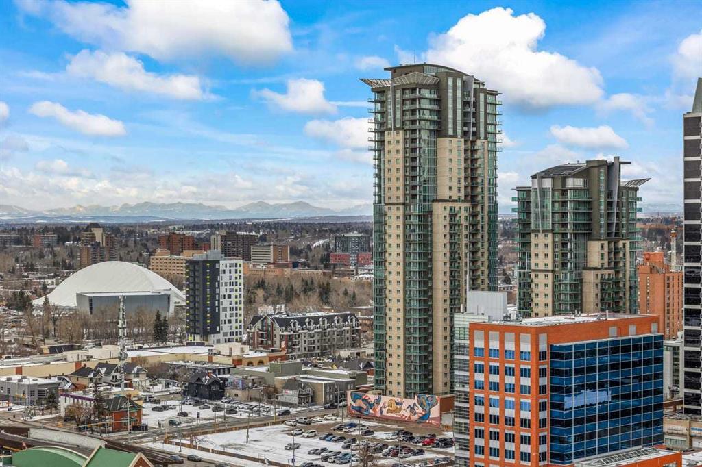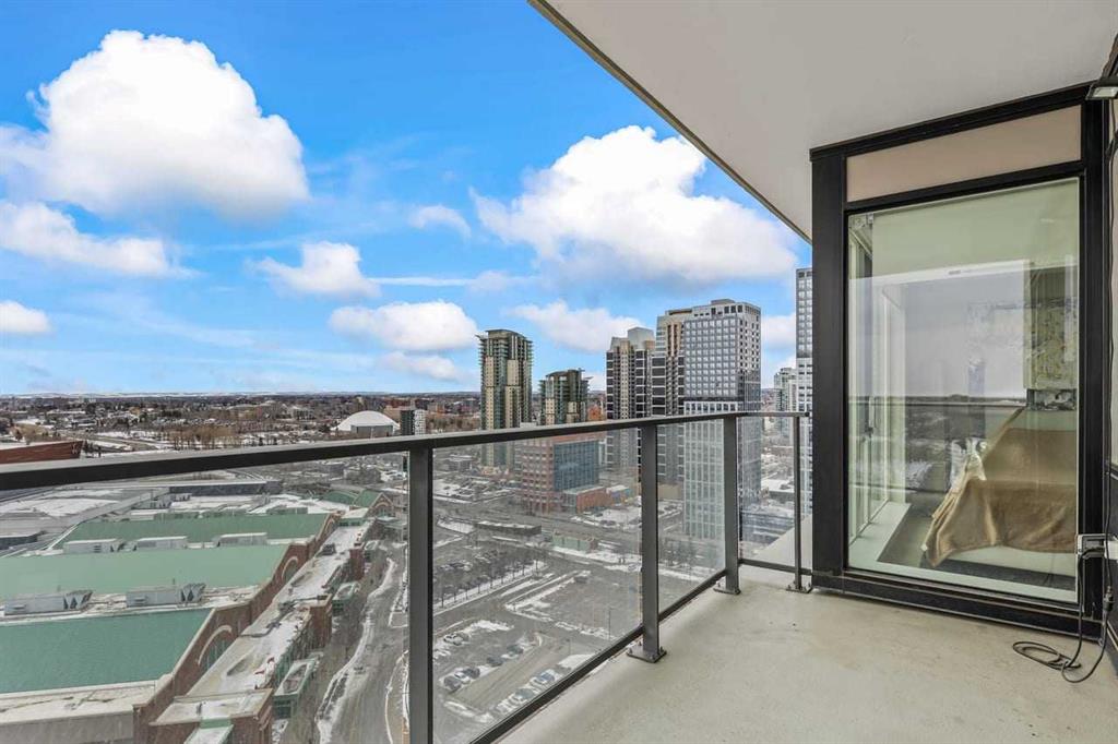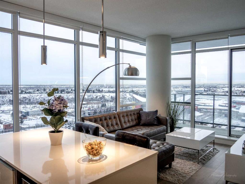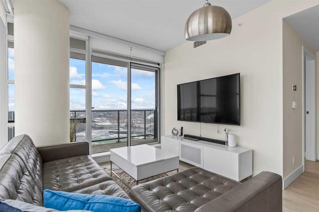 Experience LIMITLESS SKY-HIGH VIEWS in this SUN-DRENCHED CORNER 2 BEDROOM, 2 BATHROOM residence perched on the 21st floor of The GUARDIAN SOUTH. This sophisticated home is defined by its PRIME ELEVATION and a private balcony that offers a front-row seat to the city below. The well-proportioned open-concept living area showcases two full walls of floor-to-ceiling windows, framing breathtaking sunsets over the Rocky Mountains, the glittering Calgary skyline, and incredible views of the Stampede fireworks. The modern interior features a sleek kitchen with high-end integrated appliances and premium finishes, complemented by the convenience of a newer washer and dryer. Both bedrooms are generously sized and supported by two full bathrooms, titled underground parking, and a dedicated storage unit. Residents benefit from an exceptional suite of building amenities, including a state-of-the-art fitness centre, a creative workshop, a social lounge with a garden terrace, and 24-hour concierge services. Ideally situated in the heart of Calgary’s vibrant Beltline, this property is steps away from Downtown, the Stampede grounds, the Central Library, and the scenic Riverwalk. Every urban convenience is at your doorstep, with a popular brunch and coffee spot located in the building, a brand-new dog park and Tesla Supercharger across the street, and a supermarket just one block away. With its premium upgrades and prime location in one of the city’s fastest-growing communities, this home represents an exceptional lifestyle and investment opportunity.