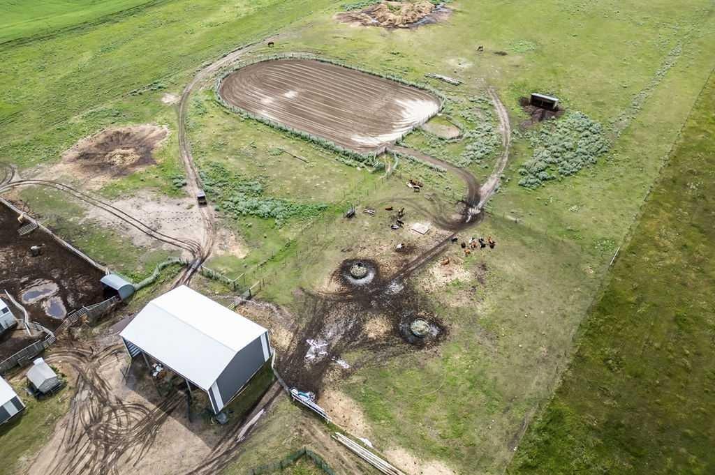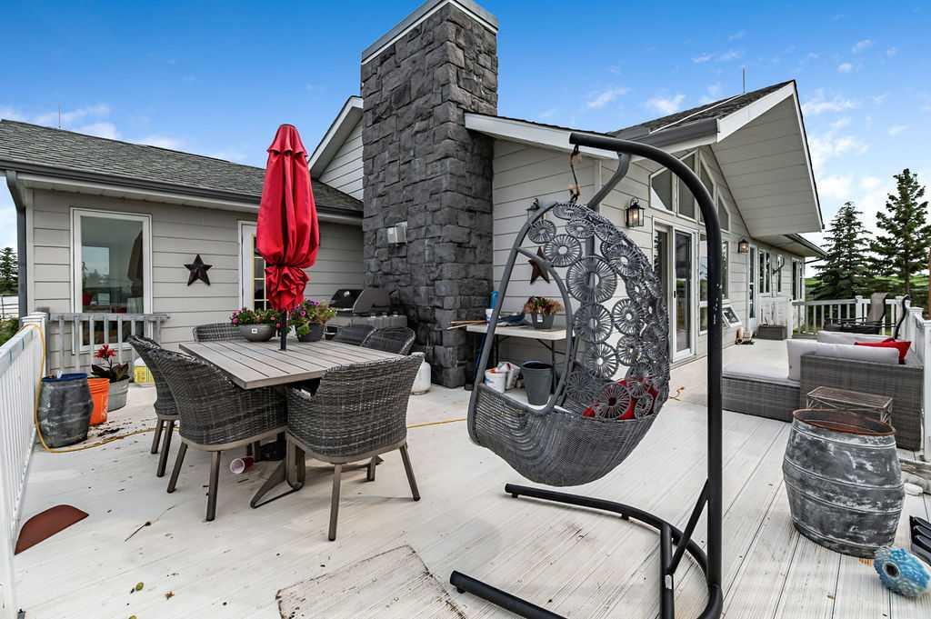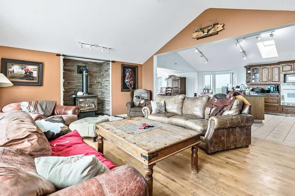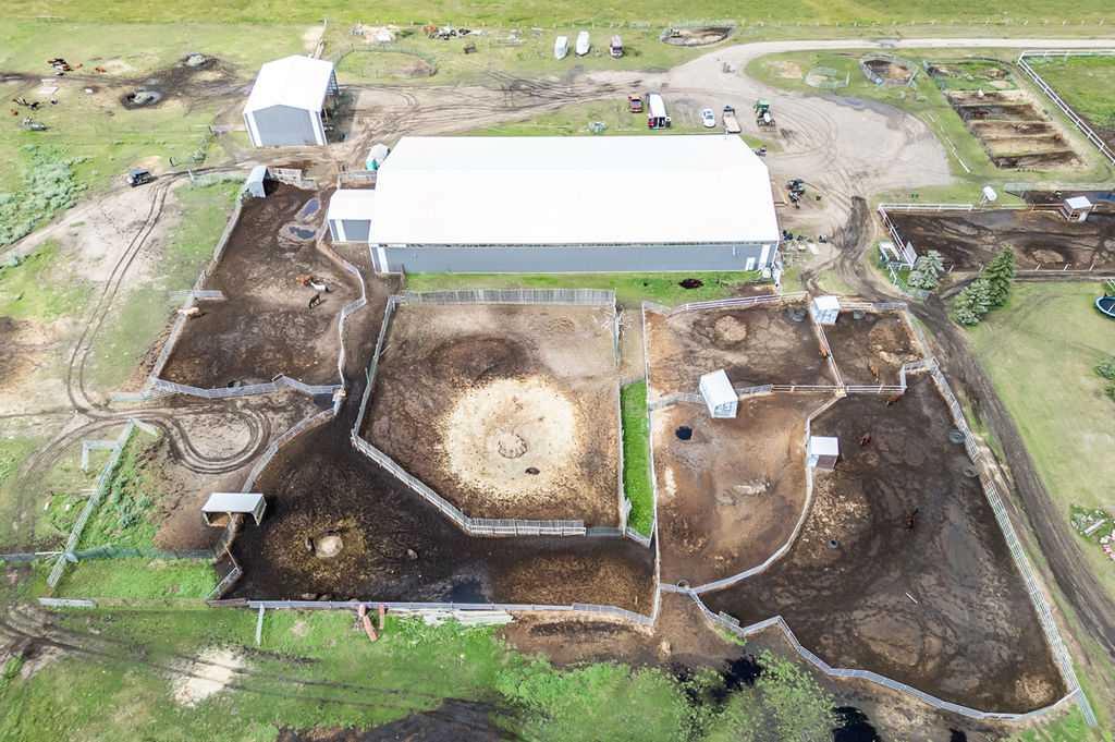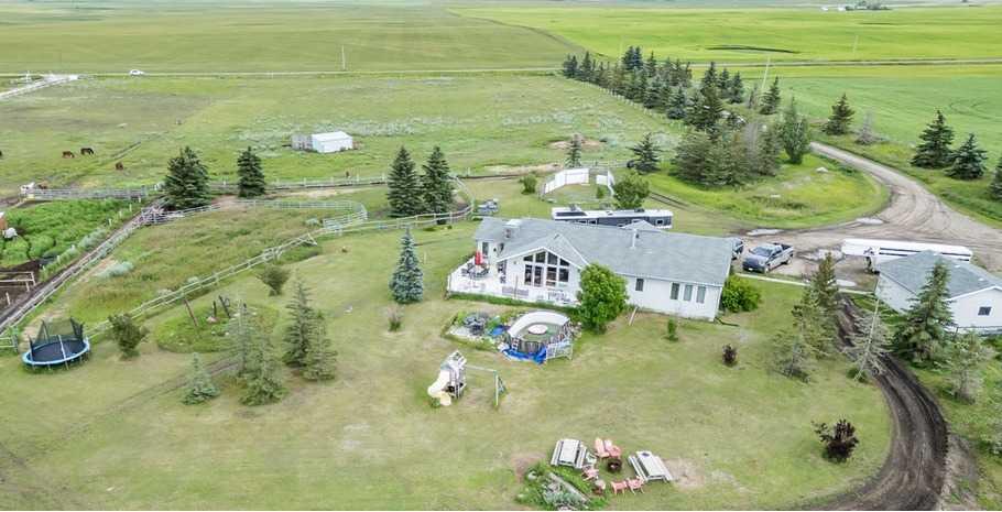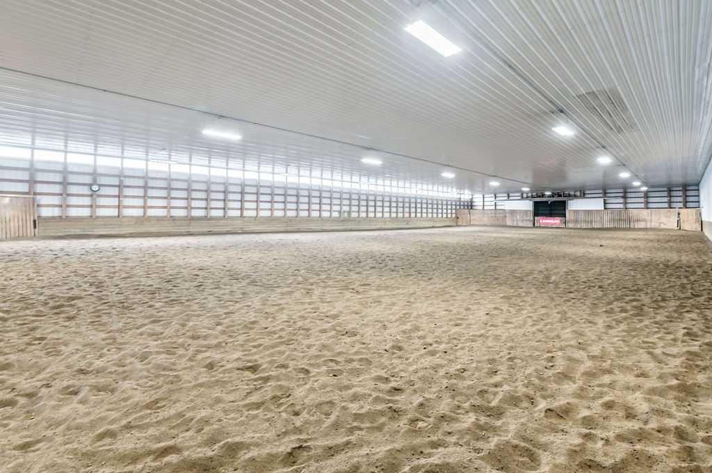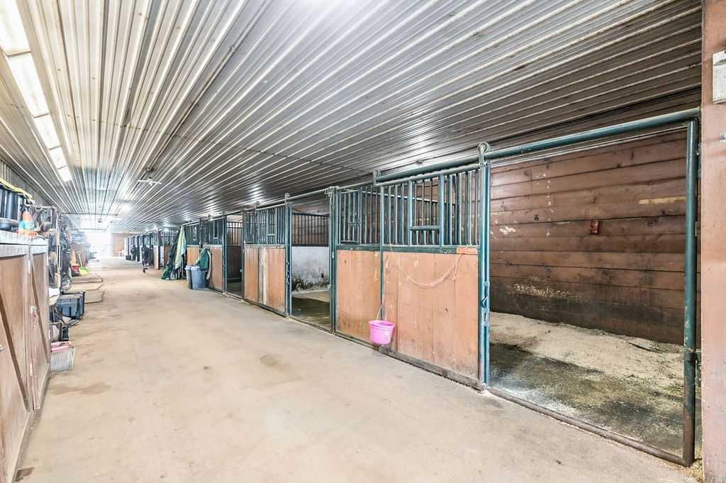 PRICE REDUCTION!! This property ticks all of the boxes for the serious HORSEPERSON! On this level 40 ACRE parcel you and your horses will find your own retreat from rain,wind, snow, misquitoes,heat and can ride 24 hours a day in the 180'x80' bright,heated INDOOR RIDING ARENA! Saddle up next door in the ATTACHED 12 STALL BARN ( 24'x80'- 9 with auto waterers) with a wash rack and separate tack room! For boarders there are 14 double wide individual tack lockers. On the nicer days enjoy the large OUTDOOR panelled ARENA ( 130'X240') or just turn your horse out to graze on the 30 + acres of pasture. Several individual turn out pens with shelters and shared waterers(5) and a 48'x60' HAY SHED ( built in 2015)complete this nicely located EQUINE FACILITY just 30 minutes from Okotoks! Other nice additions to this property are a 32' x48' quonset with concrete floor to park the RV or horse trailer and a 24'x26' double detached fully drywalled garage. The 1845ft2 4 BEDROOM,3 BATHROOM BUNGALOW is nicely laid out and is bright and flooded with SUNLIGHT form skylights and large west facing windows in the living room and is very accomodating for entertaining or a large family. The lower level is fully developed with a huge 4th bedroom,3 piece bath and a large recreation room with tons of storage! This property is a good opportunity for anyone interested in aquiring a full training facility at an affordable price and is willing to make their own further improvements to build equity and enjoy their passion for horses!