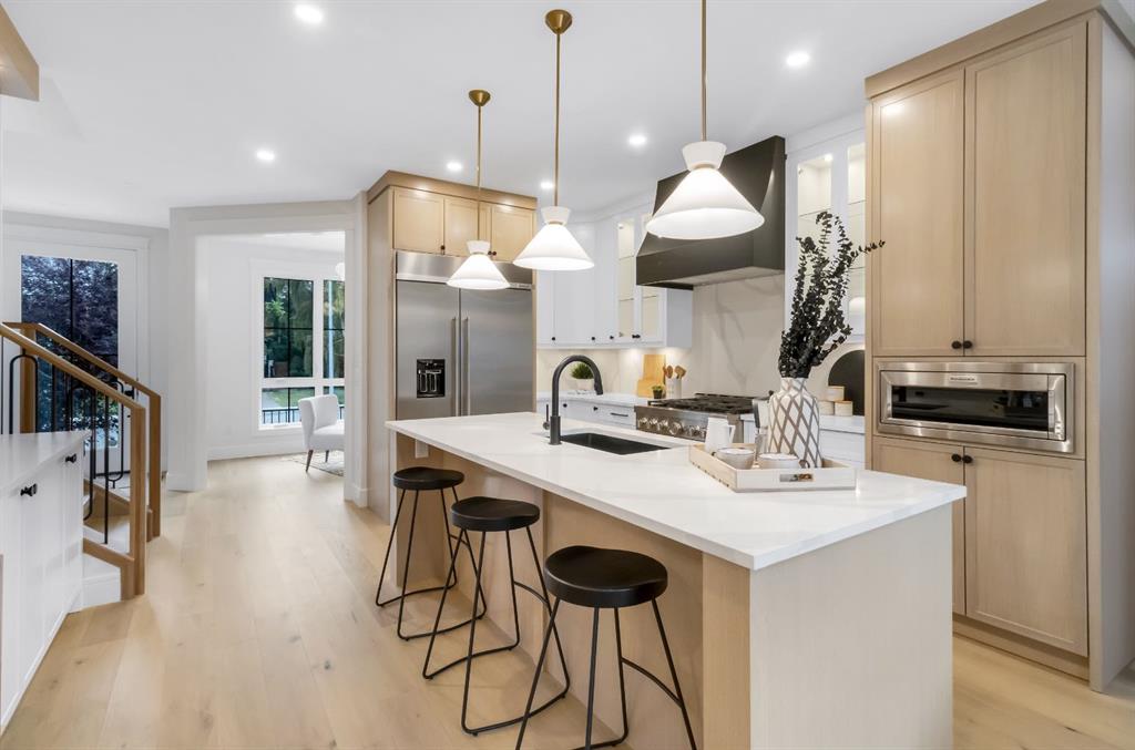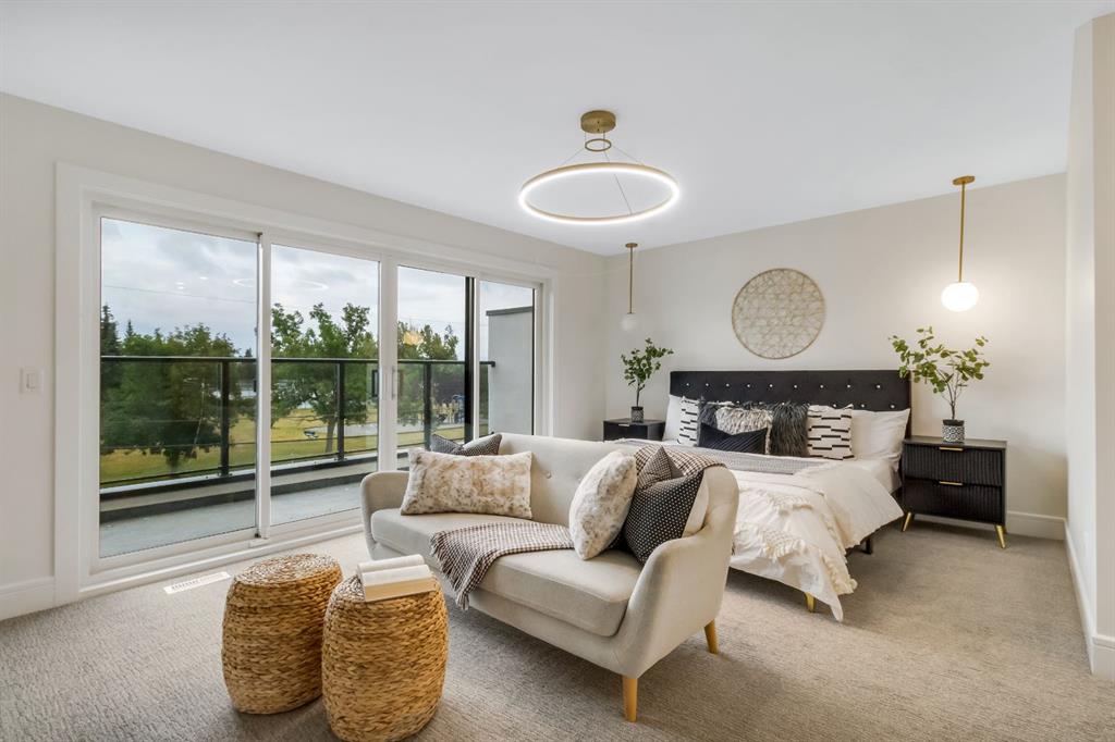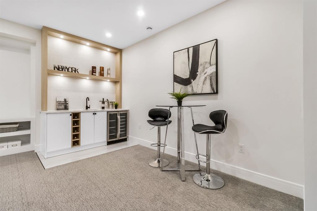 Welcome to this exceptional modern home nestled on a quiet, mature street in the heart of desirable Banff Trail, with a charming park right at your doorstep. Boasting over 3,800 square feet of thoughtfully designed living space across four levels—and serviced by a private elevator—this home seamlessly blends contemporary luxury with everyday comfort. Step into the elegant front den, where custom lighting and a statement feature wall offer a stylish first impression. The main level showcases wide-plank hardwood flooring and a soaring open-to-above layout that brings a dramatic sense of space to the living area. The gourmet kitchen is a true showstopper, equipped with premium appliances, including a 6-burner gas range, and framed by sleek finishes that will delight any culinary enthusiast. A chic powder room, complete with a standout vanity and playful designer lighting, adds personality, while the rear mudroom provides functional storage and access to the backyard. The second level is thoughtfully laid out with two large bedrooms, each featuring a built-in closet, and connected by a spacious Jack-and-Jill bathroom—perfect for family or guests. This floor also includes a cozy bonus room with a built-in bar and a large laundry area with everything you need for convenience. Ascend to the third floor to discover a private primary retreat spanning the entire level. This sanctuary features a generous bedroom, a coffee/wet bar, and a sunny balcony with peaceful views over the backyard and adjacent park. The custom walk-in closet is outfitted with high-end built-ins, and the spa-inspired ensuite is a true retreat, showcasing a dramatic black soaker tub, a double vanity, a stunning tile-clad steam shower, and floor-to-ceiling tile details. Downstairs, the fully finished basement continues to impress with a fourth bedroom, a stylish full bathroom with bold black tile accents, a dedicated home gym, and a spacious media room complete with a wet bar—ideal for movie nights or entertaining friends. Outside, the striking architectural is complemented by a welcoming front patio. With quick access to major routes, top schools, and nearby amenities, this home is a rare combination of style, functionality, and unbeatable location. Schedule your private tour today and experience the ultimate in modern inner-city living.