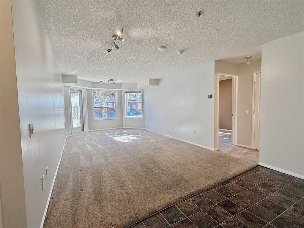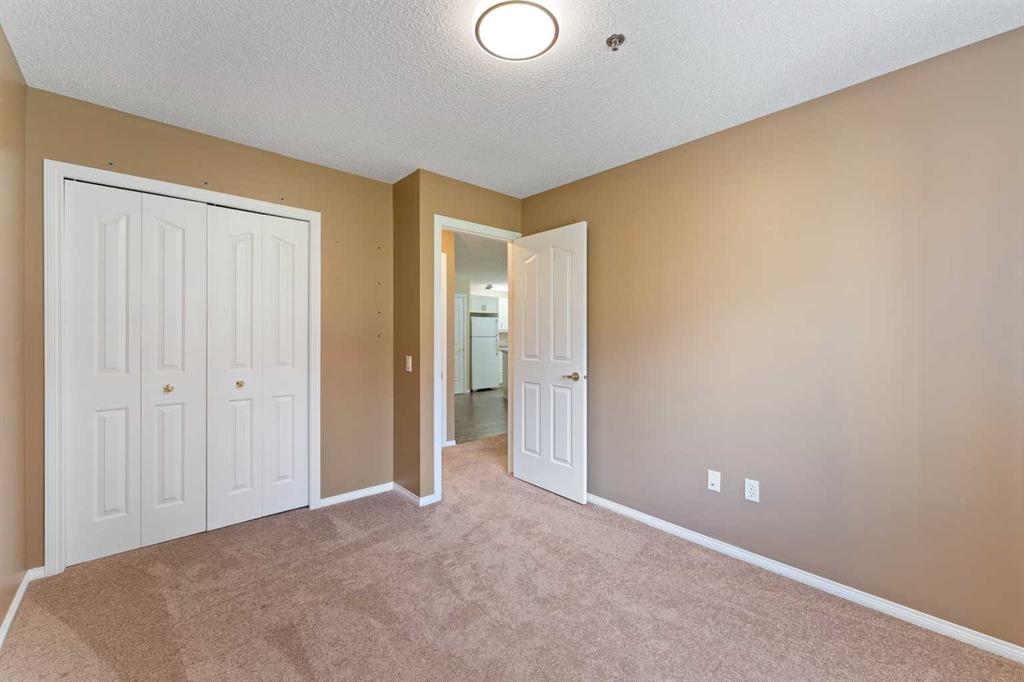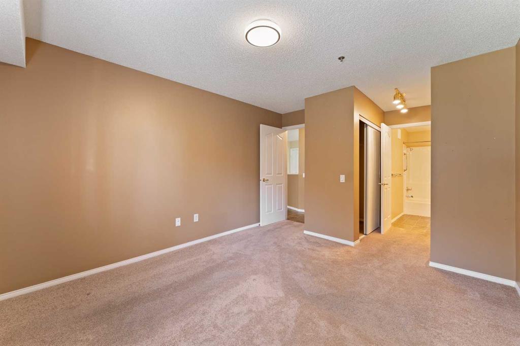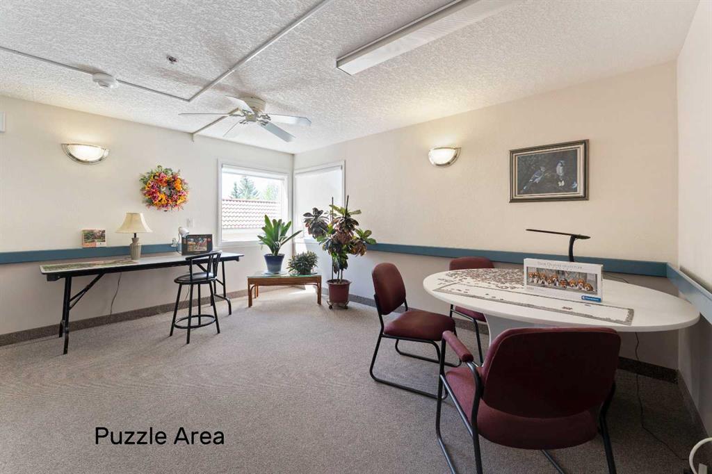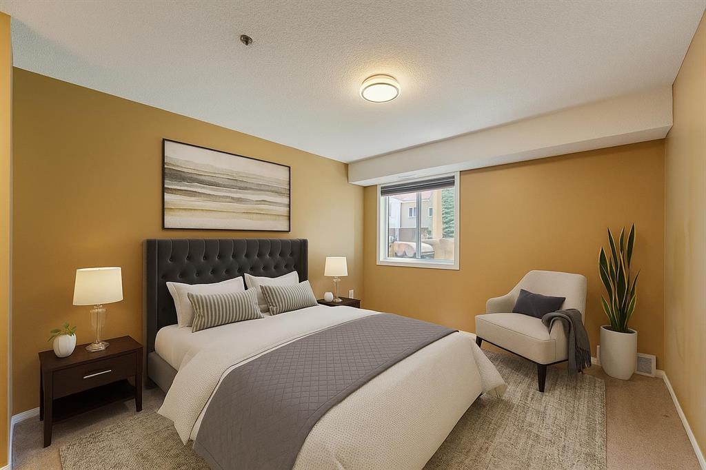 This freshly painted, well maintained ground-floor unit offers 991 sqft of bright, functional living space in the highly sought-after Dana Village, a 55+ community that is well managed to support an active and fulfilling lifestyle. This ground-floor unit faces the quiet interior courtyard, offering a stunning view and allowing you peaceful enjoyment from your private patio. Your move-in-ready home has freshly shampooed carpets throughout, top-down blinds that provide privacy while still allowing plenty of natural light, and central A/C to keep things comfortable year round. Step into the open-concept kitchen and discover, laminate countertops, generous cupboard space, and a full pantry. The layout is open and flows from the kitchen to the dining and living areas. This unit features two generously sized bedrooms, including a primary suite with a private 4-piece ensuite, with double walk-through closets, as well as a 3-piece guest bathroom and the convenience of in-suite laundry with extra storage. You’ll also appreciate the central vacuum system, an added touch of convenience. This unit boasts one of the largest underground parking stalls in the entire complex; complete with an oversized storage locker and motion-sensor lighting. As a resident of Dana Village, you’ll enjoy access to an array of amenities including a fitness centre, games area with a pool table, woodworking shop, and beautifully landscaped grounds. And you can’t forget about the private car wash—an exclusive perk that keeps your vehicle looking its best year-round. Located on the main floor, this unit is dog- or cat-friendly (one pet permitted per condo bylaws). This welcoming community offers a vibrant calendar of clubs and social events designed to keep you engaged and connected. Ideally located within walking distance to the LRT, scenic walking paths, parks, shopping, and dining—everything you need is right at your doorstep. Don’t miss your opportunity to own this ideally located, pet-friendly unit in one of the best 55+ communities in the area. Check out the 3D tour and book your private showing today!